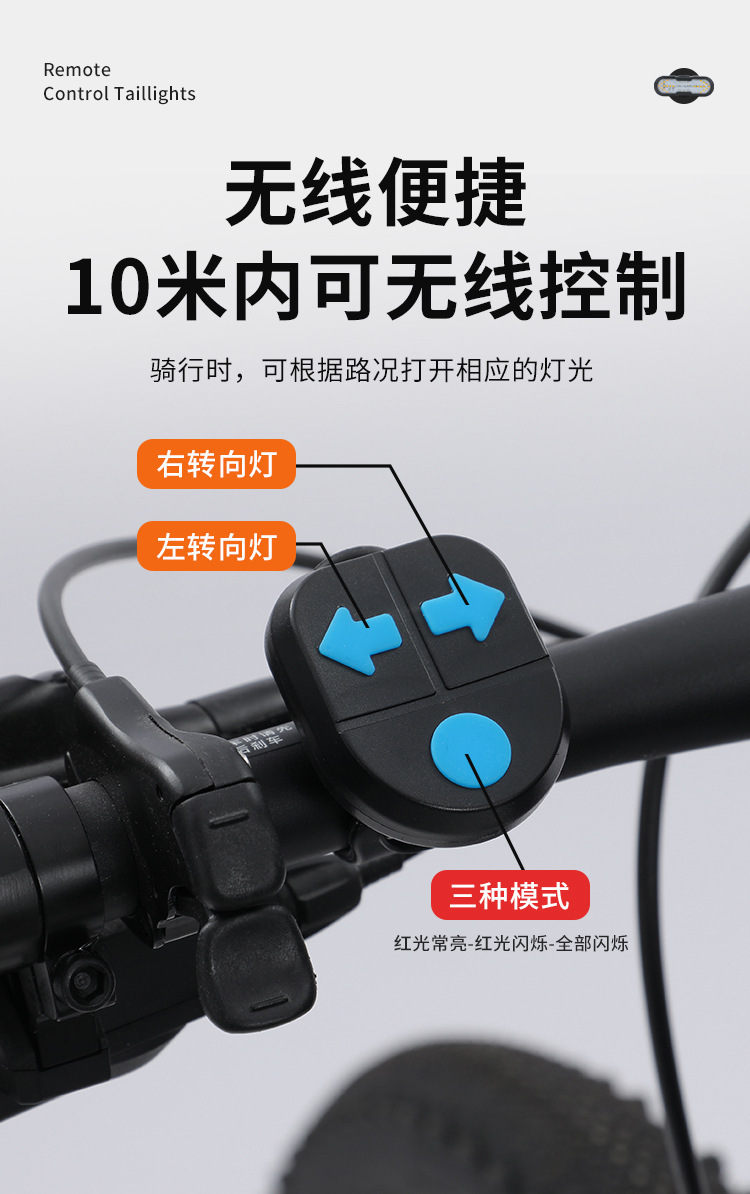 경적 다기능 야간 라이딩 라이트 경고등 USB 충전식 사이클링 장비가있는 자전거 원격 제어 조향 테일 라이트스토어 가기