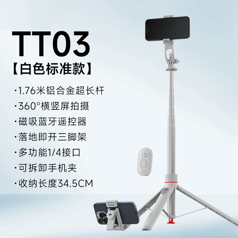 • [TT03 화이트] 버리고 열기 + 1.76m 알루미늄 합금 + 자기 리모콘 + 탈착식 휴대폰 클립