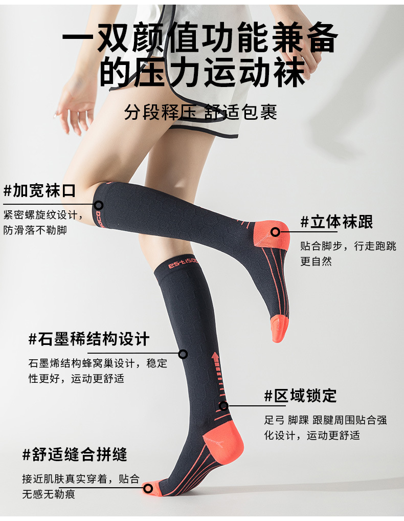 압축 양말 맞춤형 자카드 2차 압축 검정색 압축 양말 땀 흡수 및 탈취제 긴 튜브 스포츠 양말 국경 간 인기 판매스토어 가기