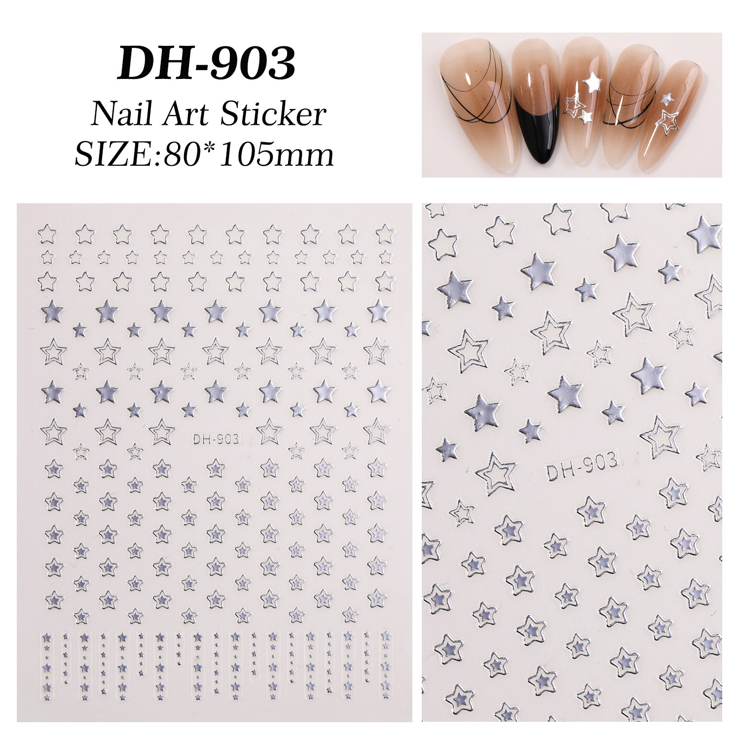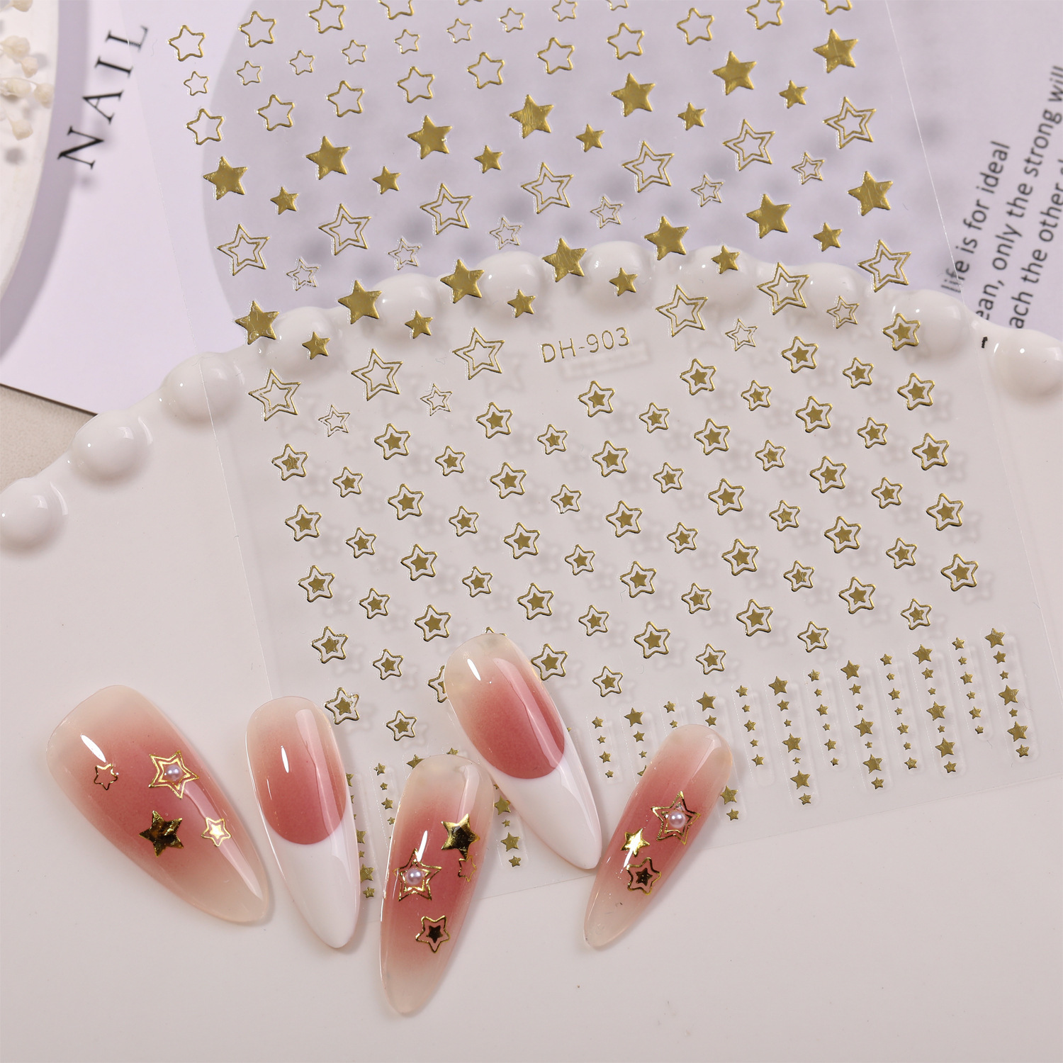 속이 빈 사랑 별 네일 스티커, 플랫, 심플하고 다재다능한 DIY 별 사랑 네일 아트 스티커, 쥬얼리 DH 스타일