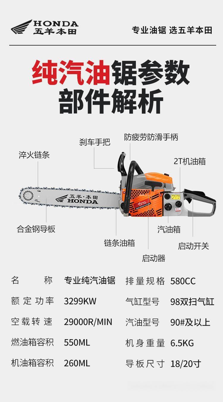 순수 수입 Wuyang Honda 4행정 고출력 전기 톱 가솔린 벌목 톱 순수 가솔린 톱 가정용 나무 벌목 톱
