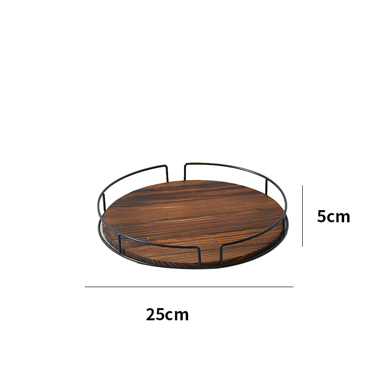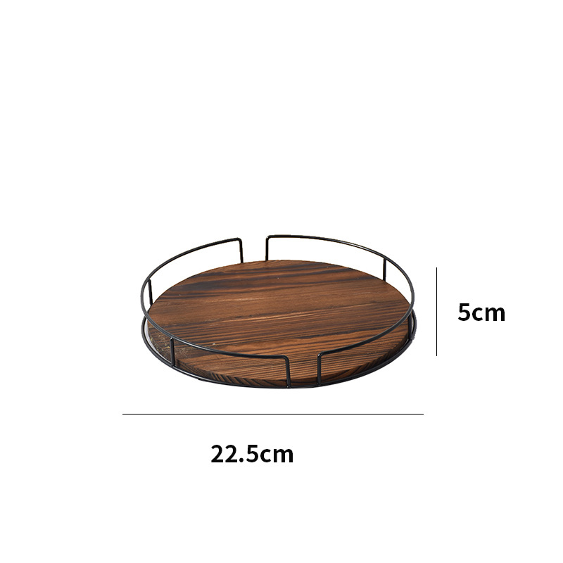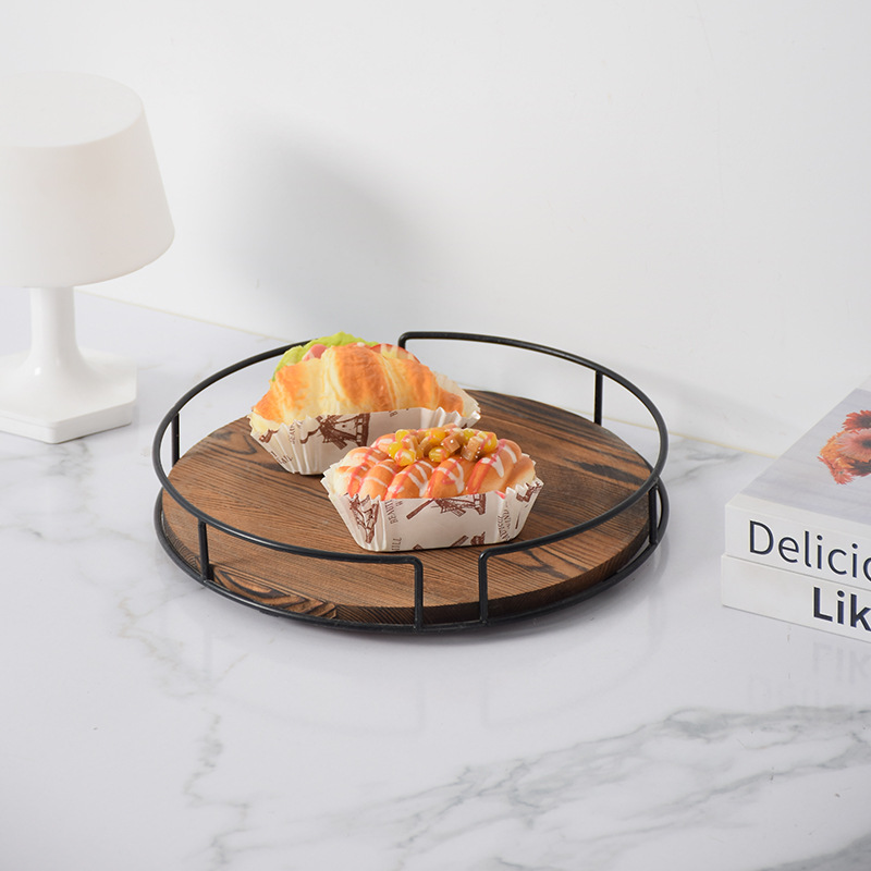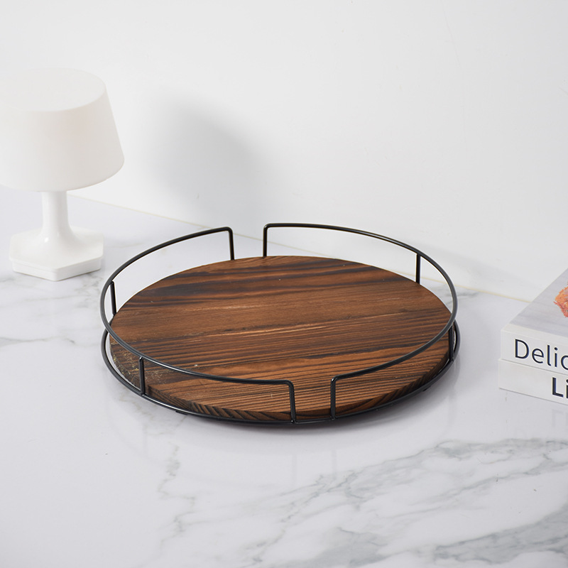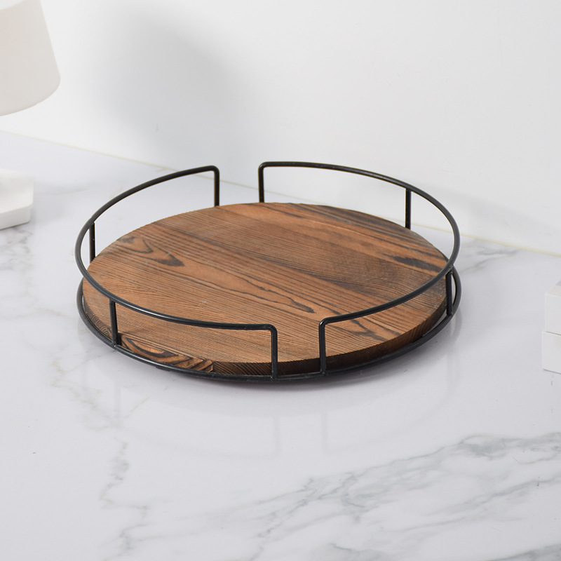 단단한 나무 둥근 과일 접시 회전식 철 주방 조미료 랙 데스크탑 스토리지 트레이 욕실 화장품 베이스