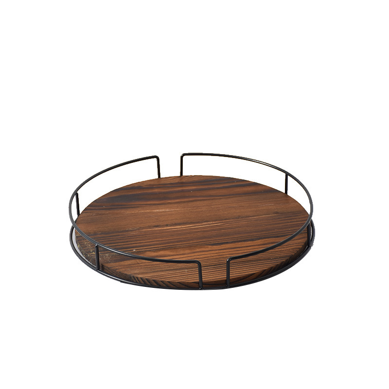 단단한 나무 둥근 과일 접시 회전식 철 주방 조미료 랙 데스크탑 스토리지 트레이 욕실 화장품 베이스스토어 가기