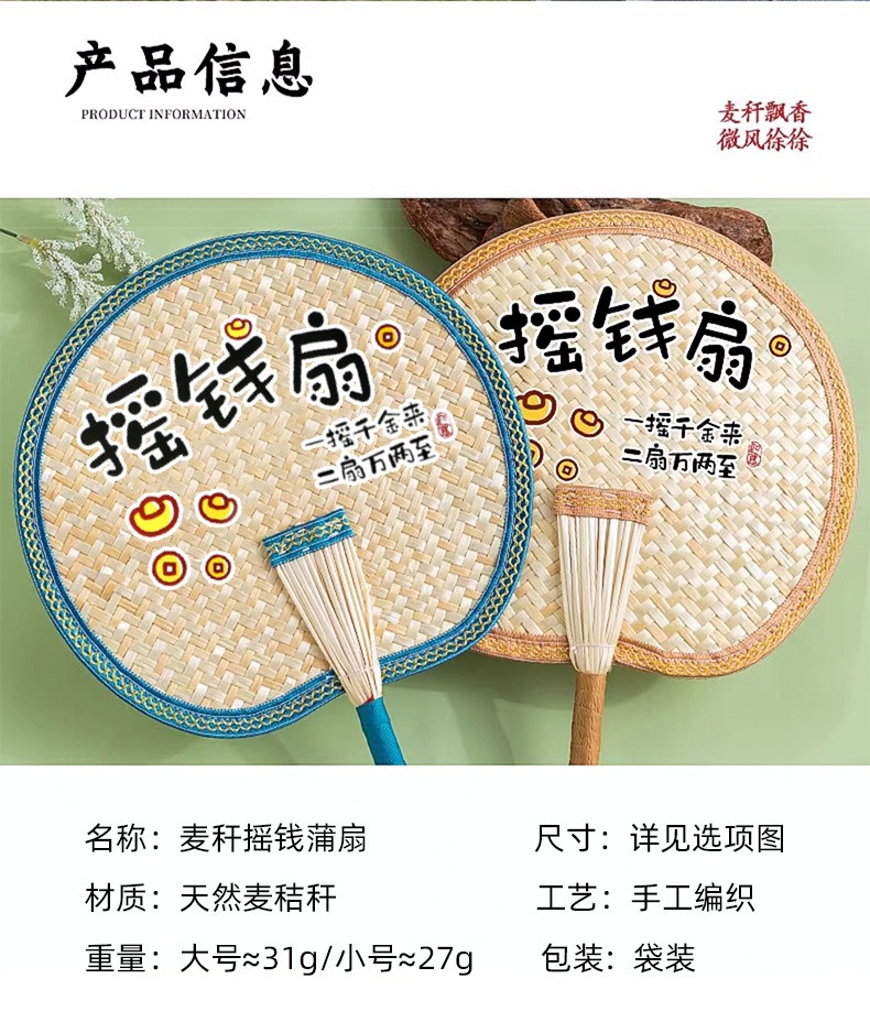 천연 밀짚 손으로 짠 구식 밀짚 부채 복고풍 시원한 민속 스타일 향수 민속 스타일 여름 부채스토어 가기