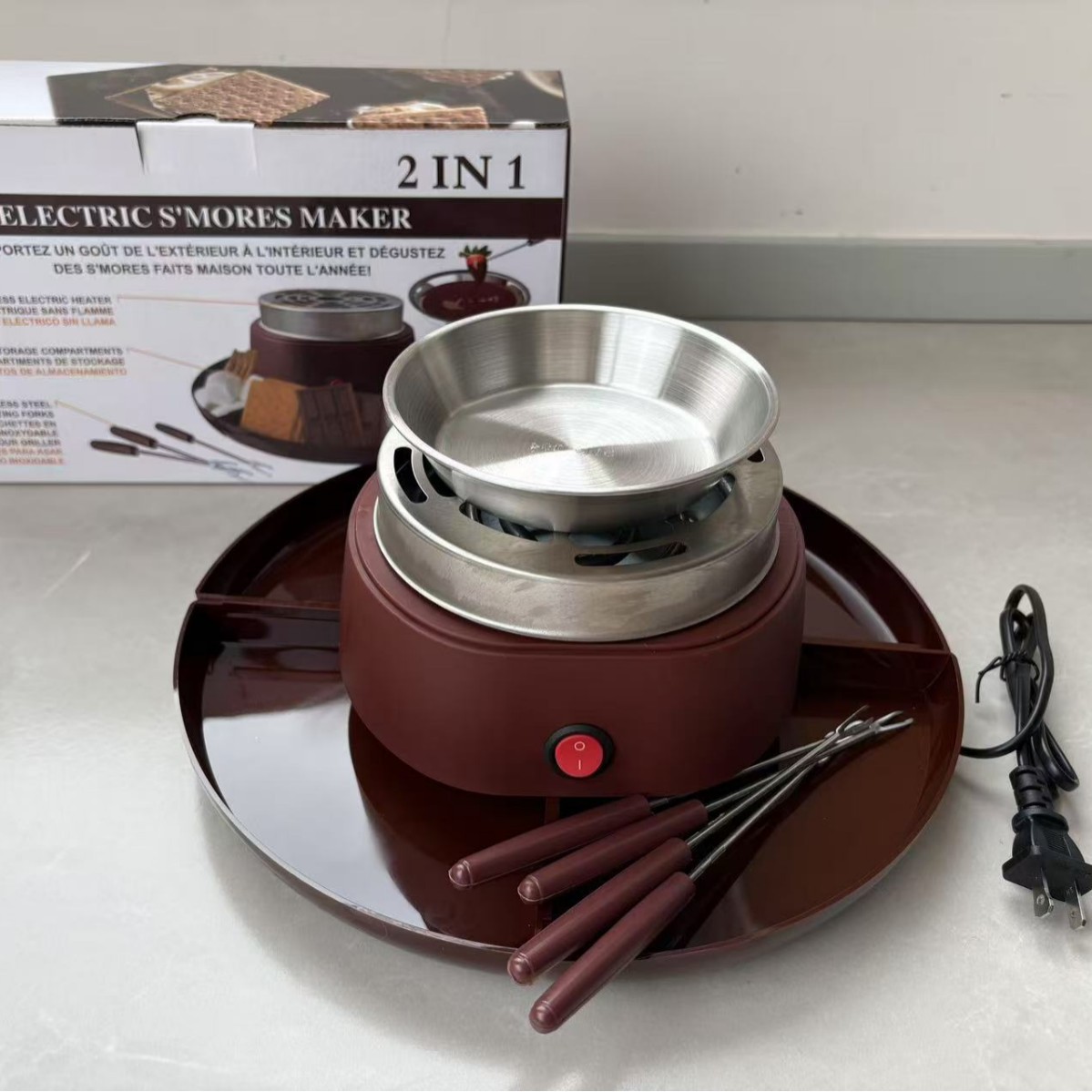 국경을 넘는 새로운 구운 마시멜로 기계 과일 접시 초콜릿 냄비 전기 냄비 치즈 녹는 오븐 투인원 S'MORES