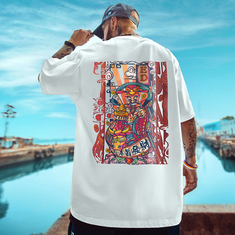 T14 폴리 에스터 프린트 반팔 티셔츠 M-8XL 내셔널 패션 남성 여름 루즈 소년 티셔츠 여름 크로스 보더스토어 가기