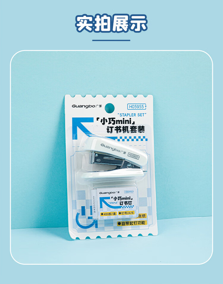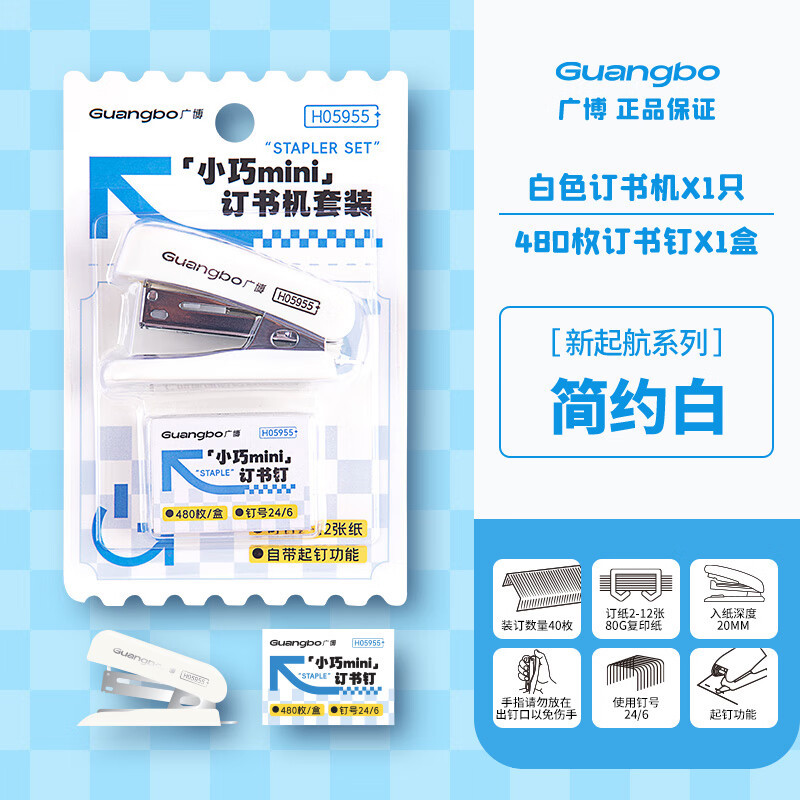Guangbo H05955 미니 스테이플러 작은 스테이플러 스테이플 리무버가있는 크리 에이 티브 휴대용 스테이플러스토어 가기