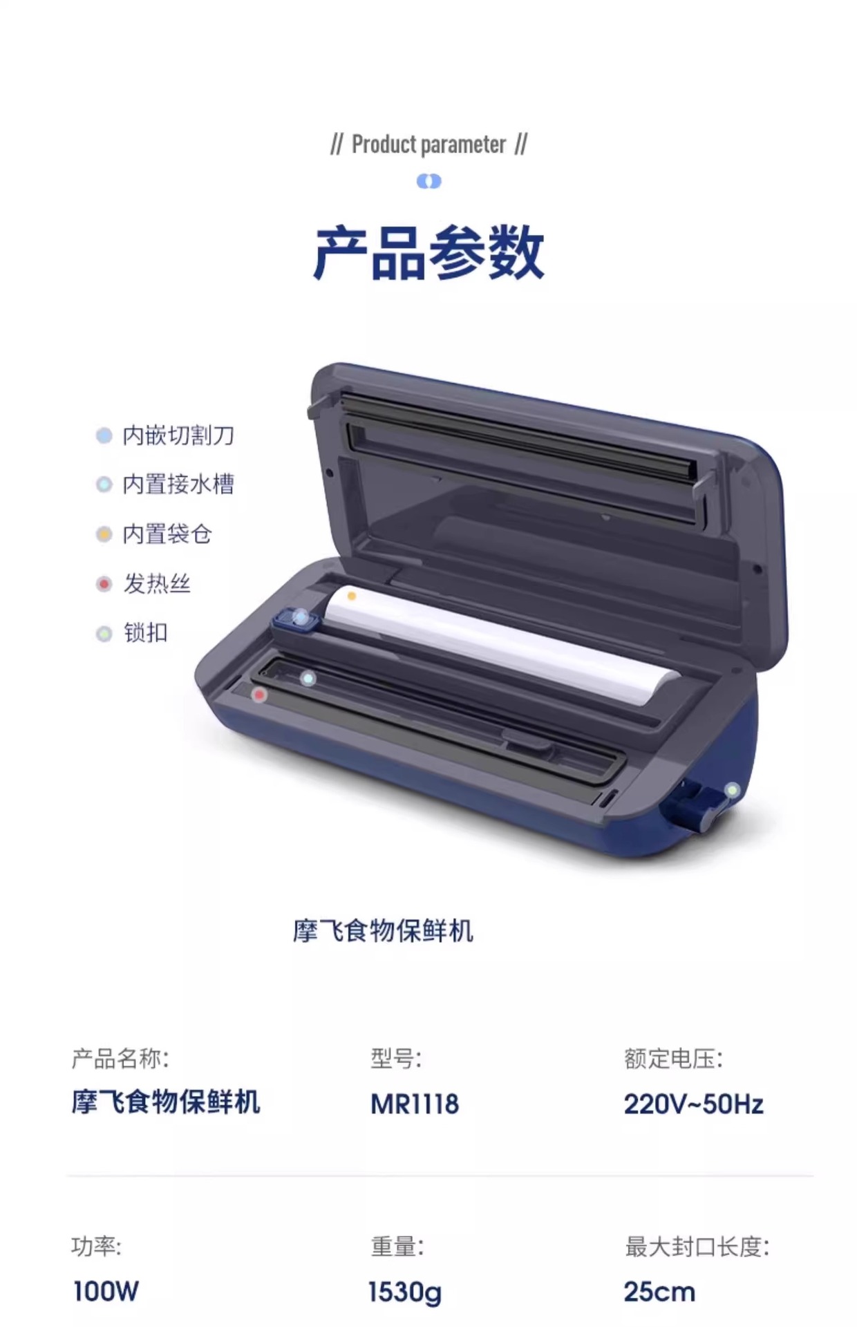 Mofei 진공 밀봉 기계 MR1118 소형 가정용 식품 포장 기계 진공 미니 신선 유지 밀봉 기계스토어 가기