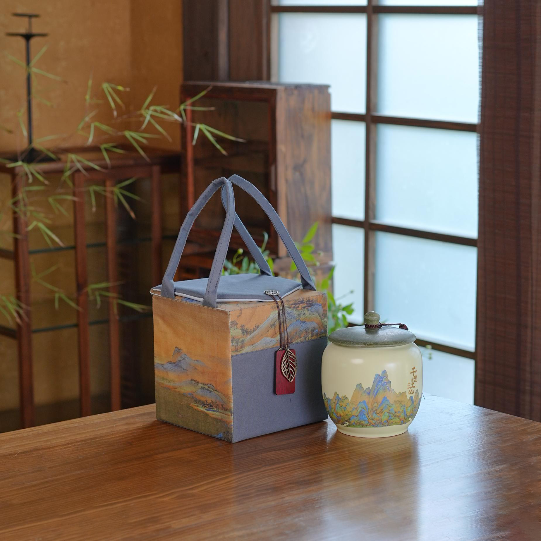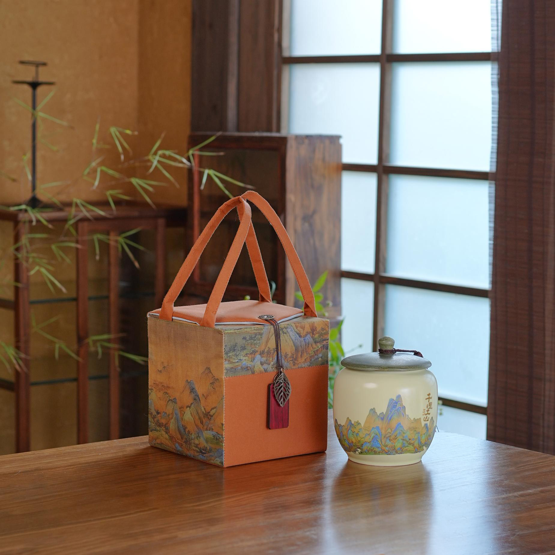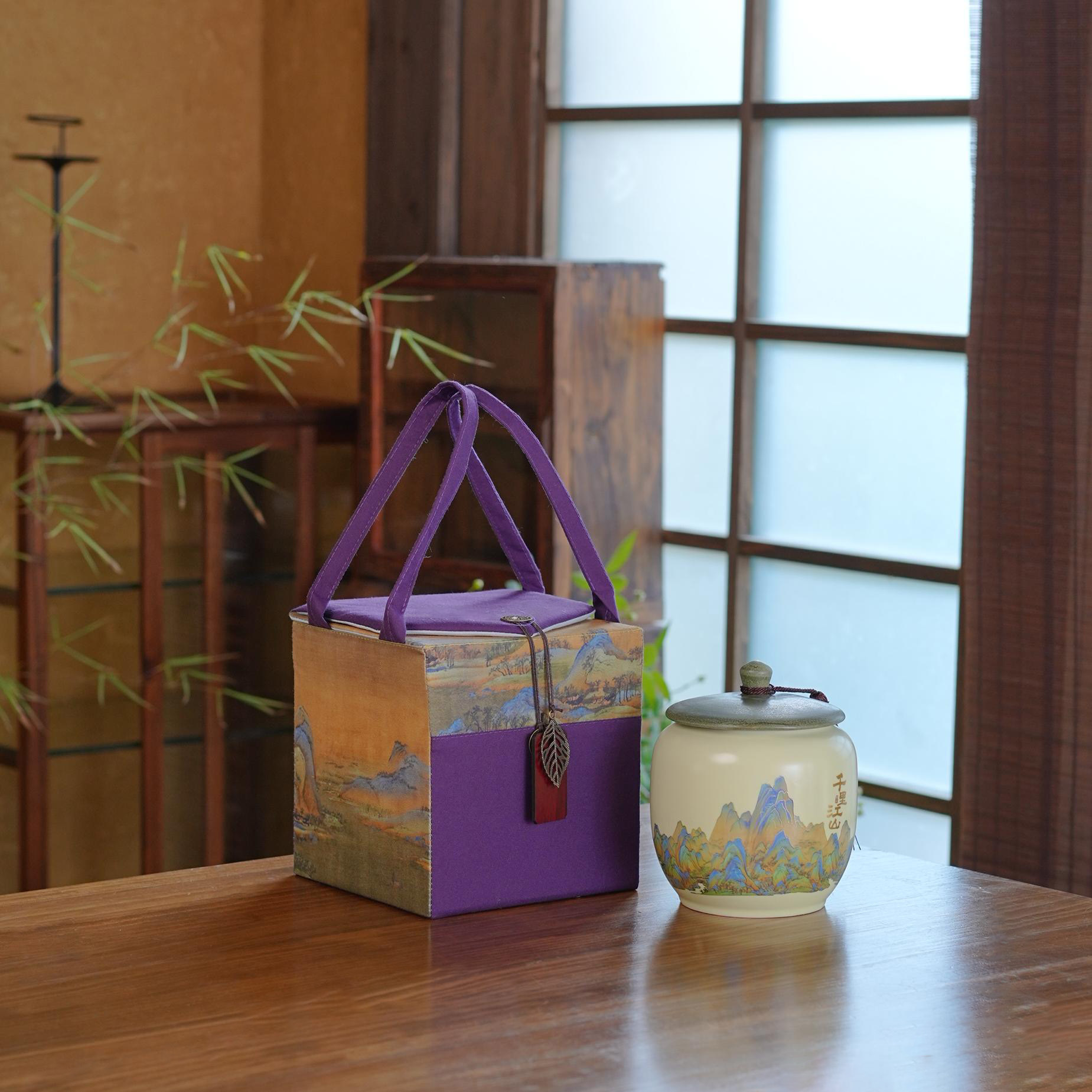 Qianli Jiangshan 세라믹 차 항아리 홍차 백차 밀봉 항아리 가정용 단일 및 이중 항아리 선물 상자 포장 상자 도매 차 항아리스토어 가기