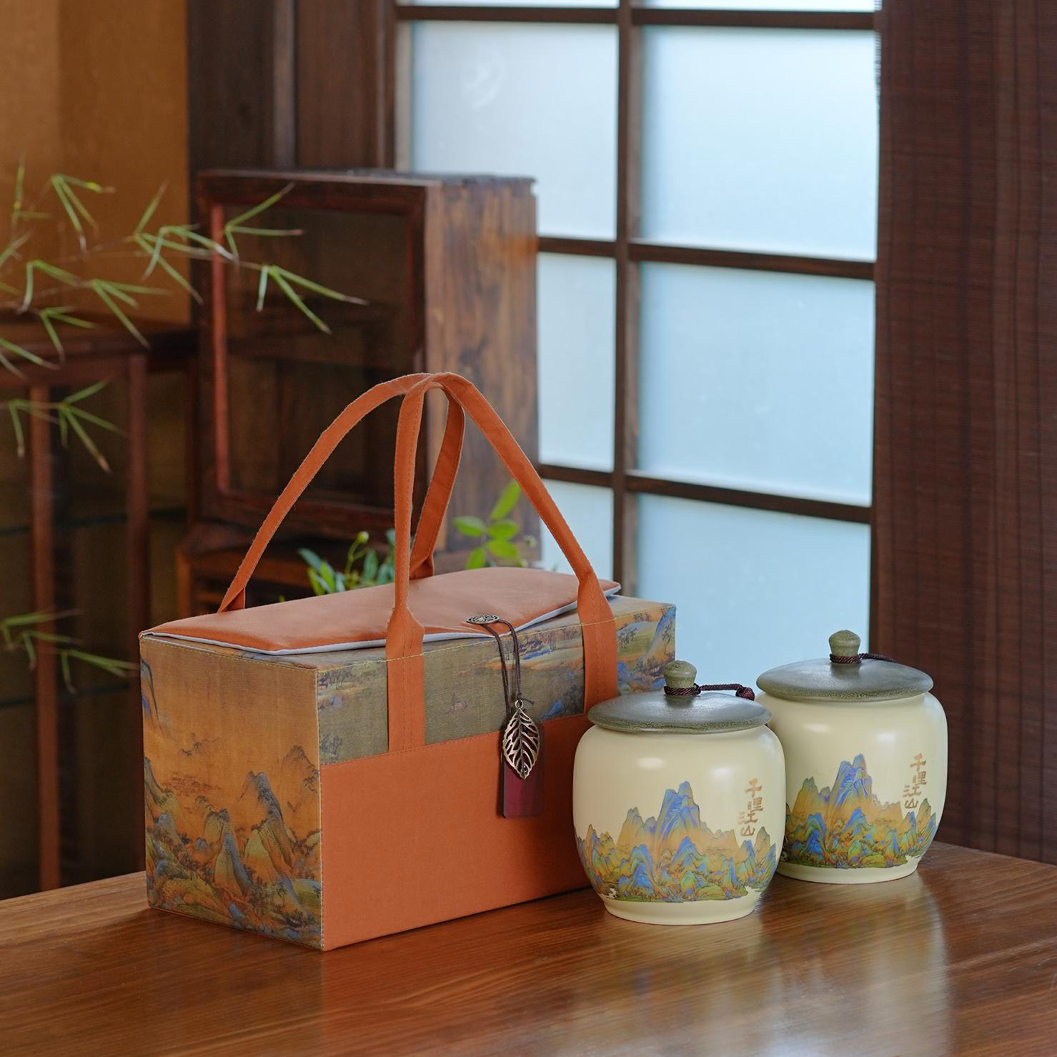 Qianli Jiangshan 세라믹 차 항아리 홍차 백차 밀봉 항아리 가정용 단일 및 이중 항아리 선물 상자 포장 상자 도매 차 항아리