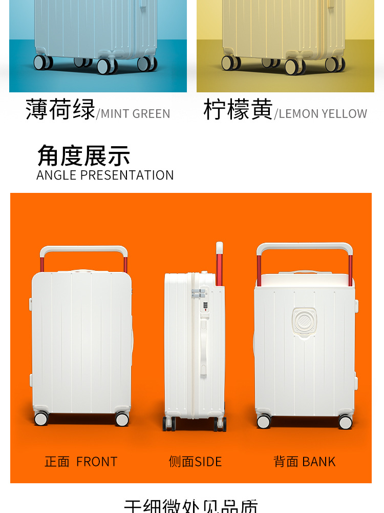 남성용 새로운 와이드 트롤리 가방, 여성용 소형 신선한 가방, 20inch 탑승 케이스, 24inch 비밀번호 상자, 범용 휠