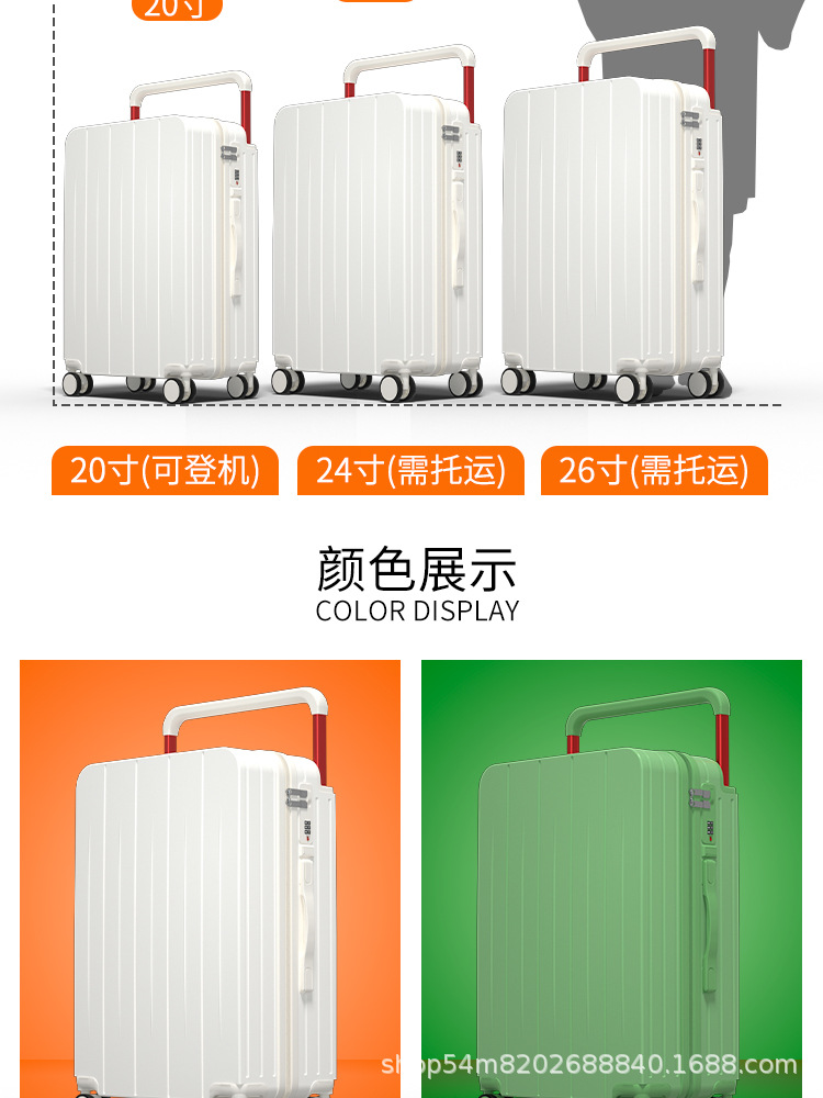 남성용 새로운 와이드 트롤리 가방, 여성용 소형 신선한 가방, 20inch 탑승 케이스, 24inch 비밀번호 상자, 범용 휠스토어 가기