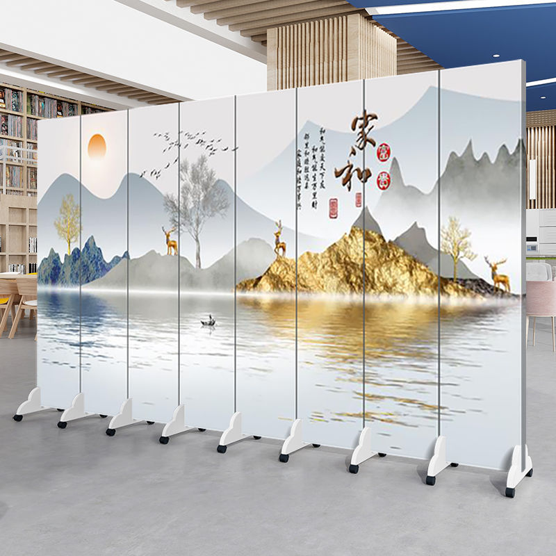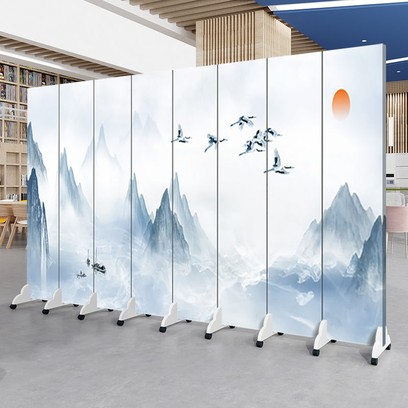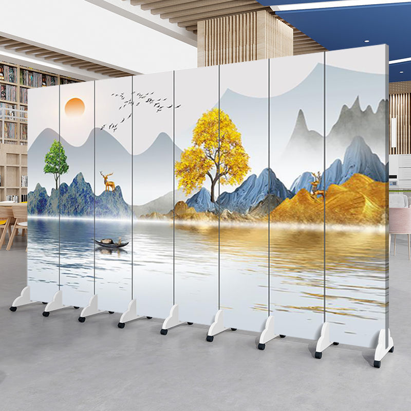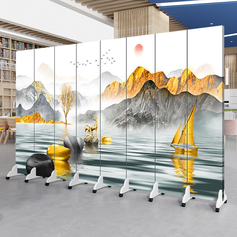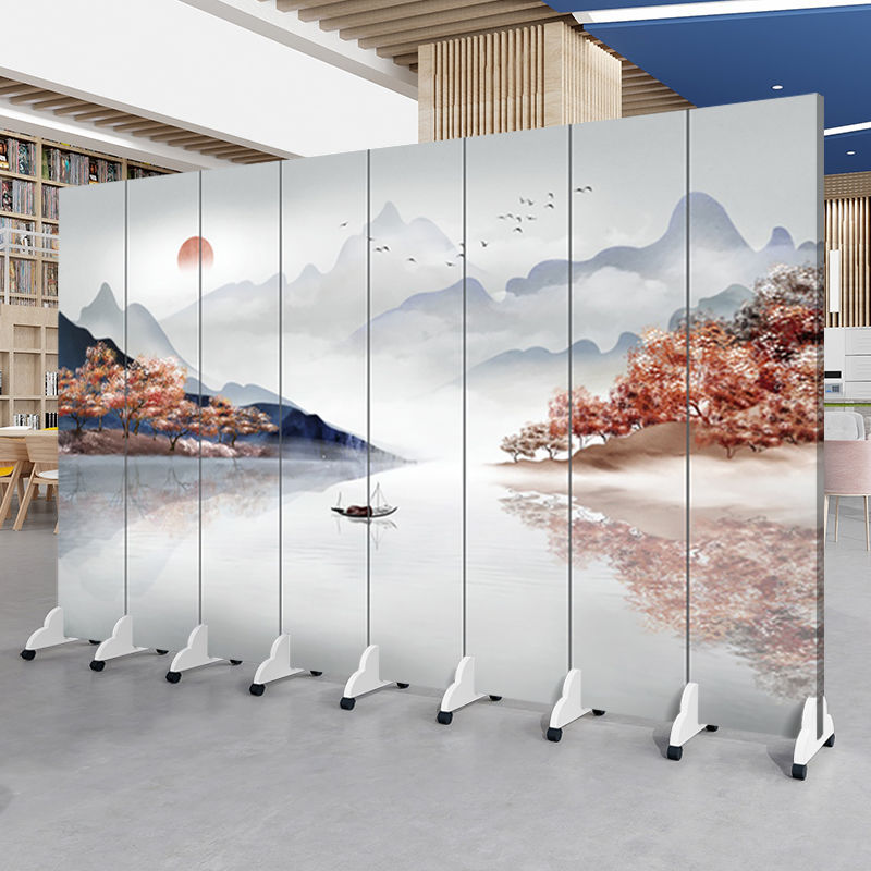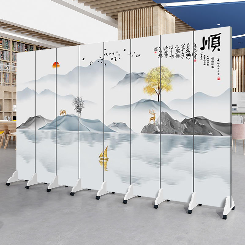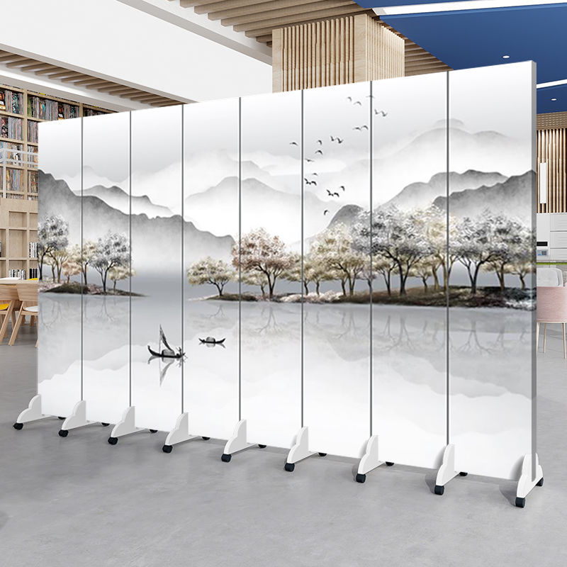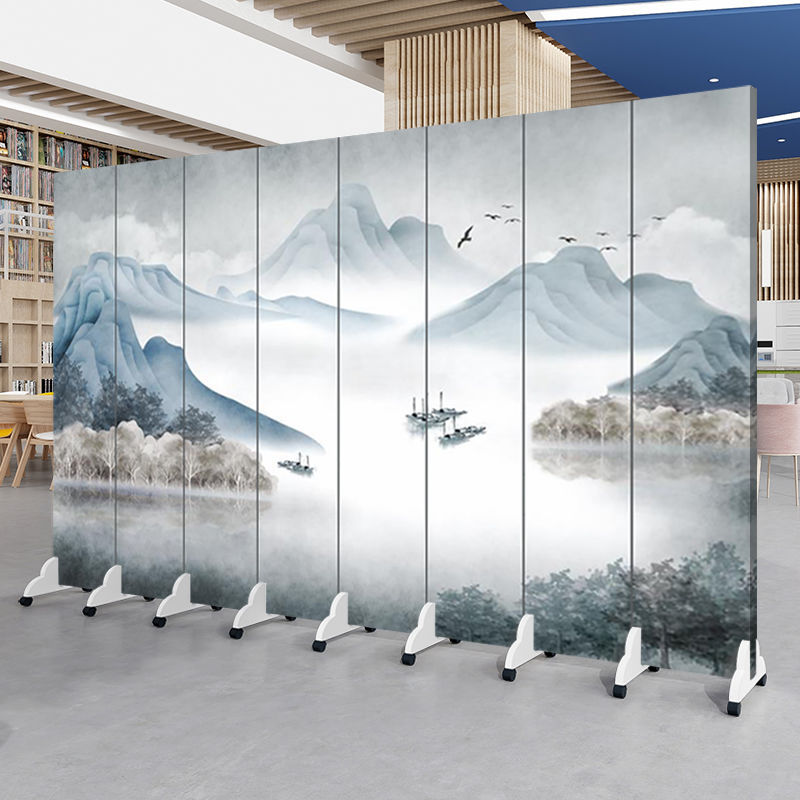 중국 풍경화 스크린 파티션 거실 사무실 입구 침실 접이식 모바일 간단한 현대 찻집 차단