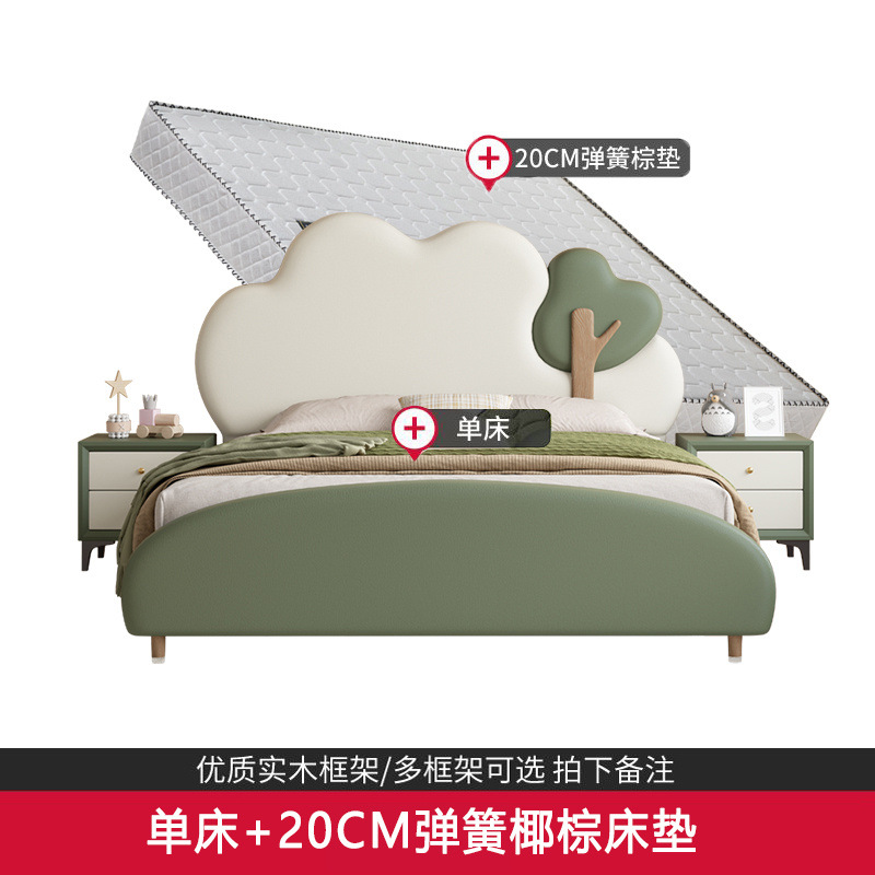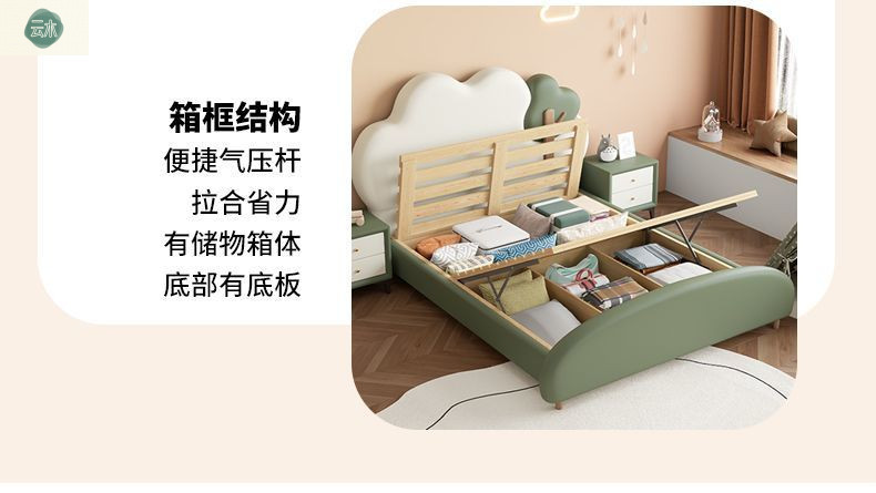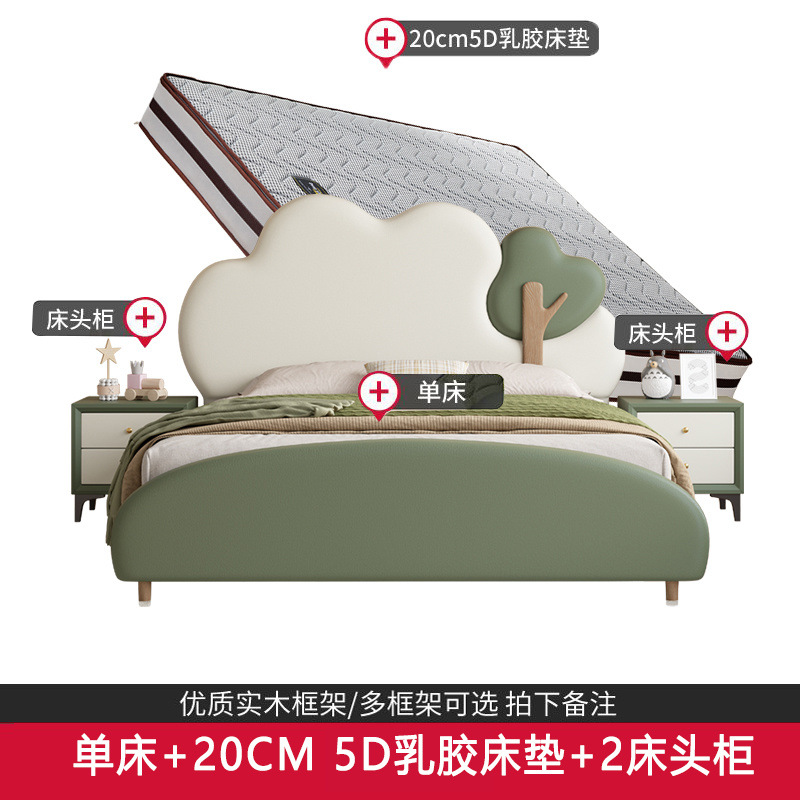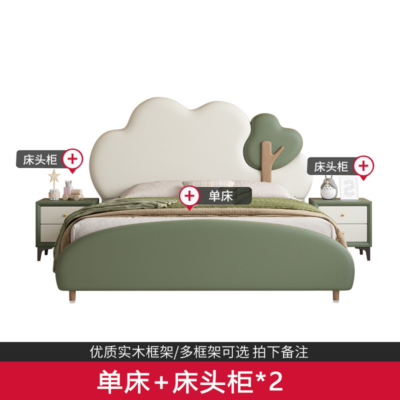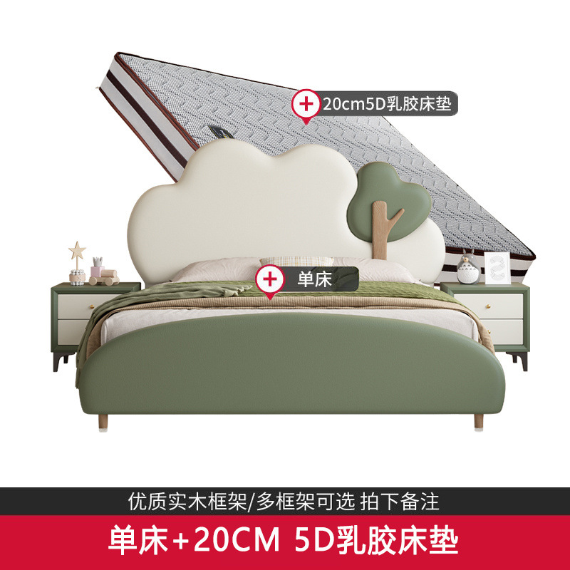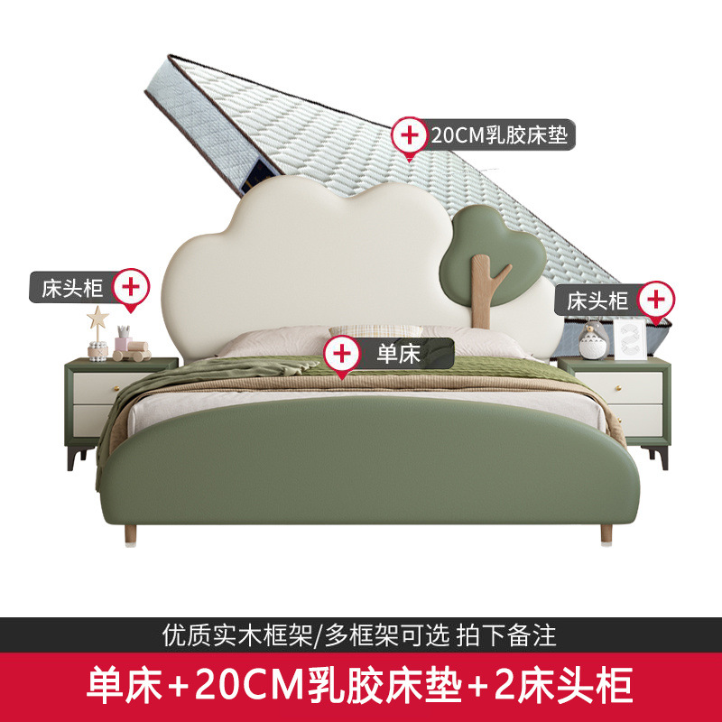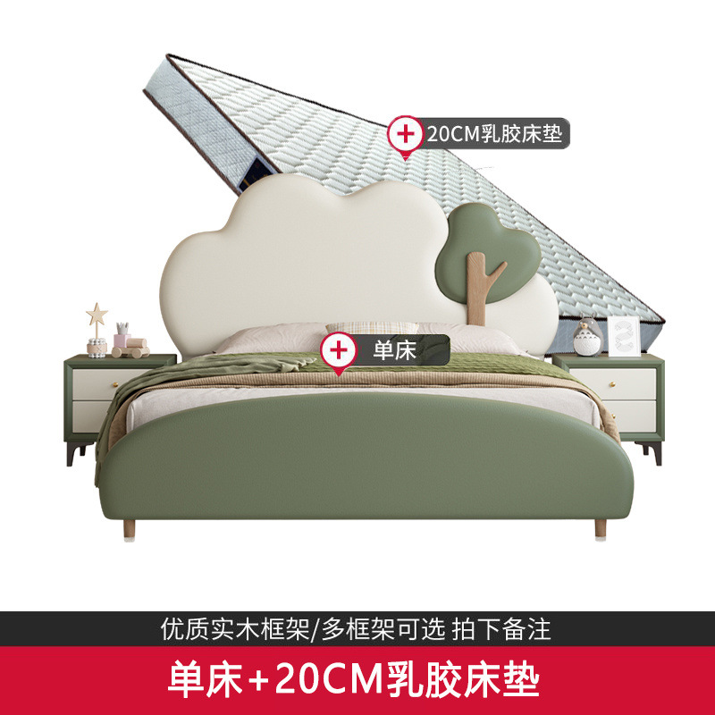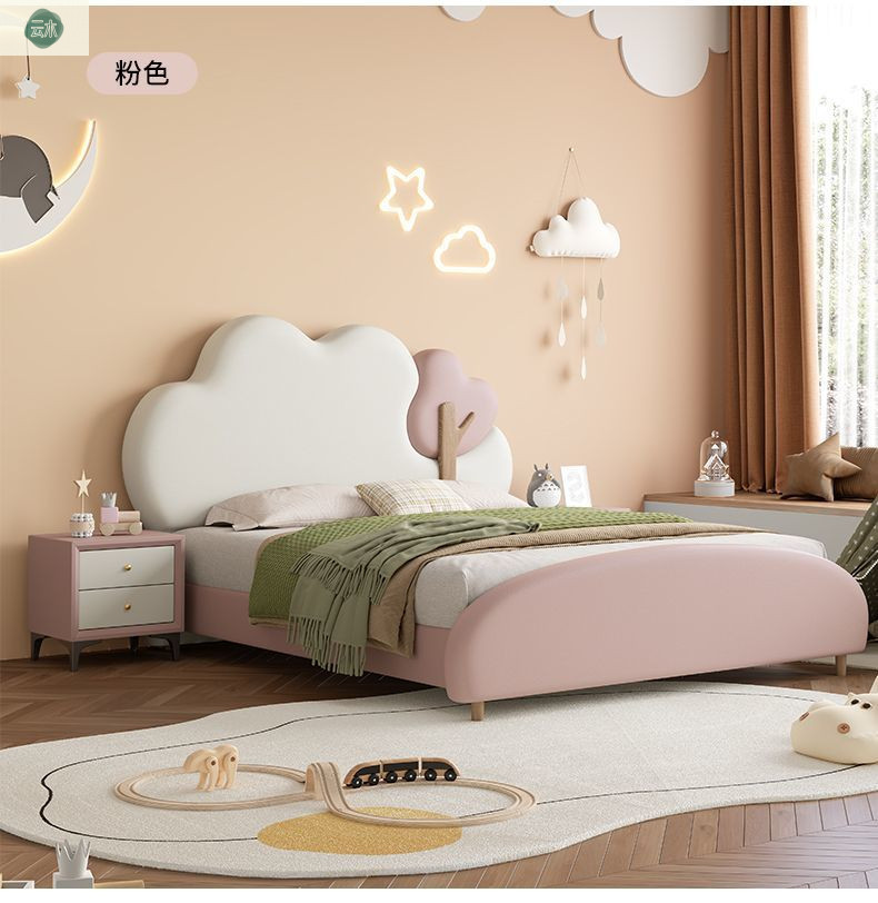 클라우드 프린세스 침대 1.2m 어린이 핑크 소녀 침실 1.5m 소년 녹색 싱글 수납 가죽 침대스토어 가기