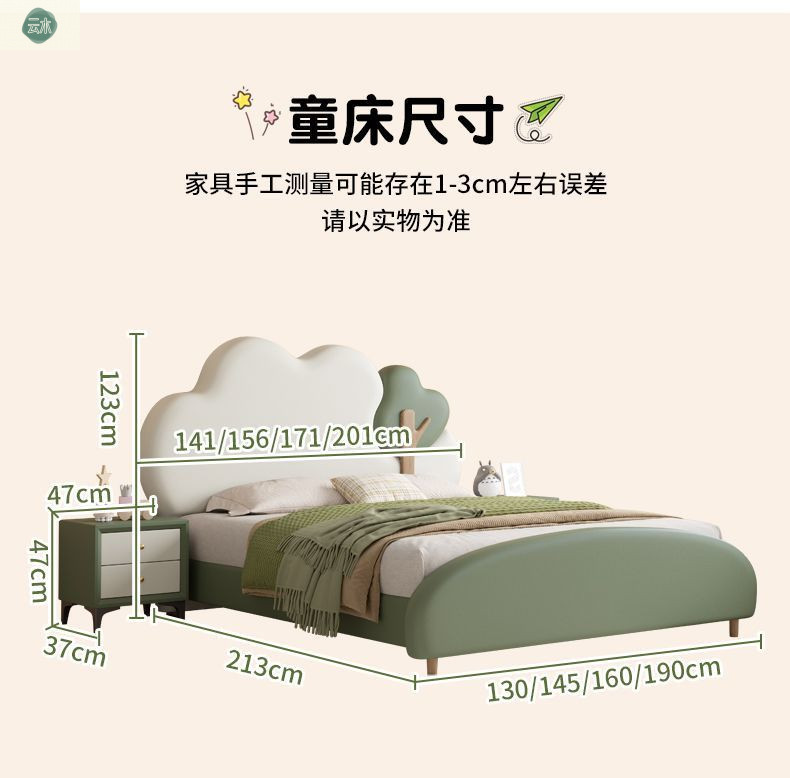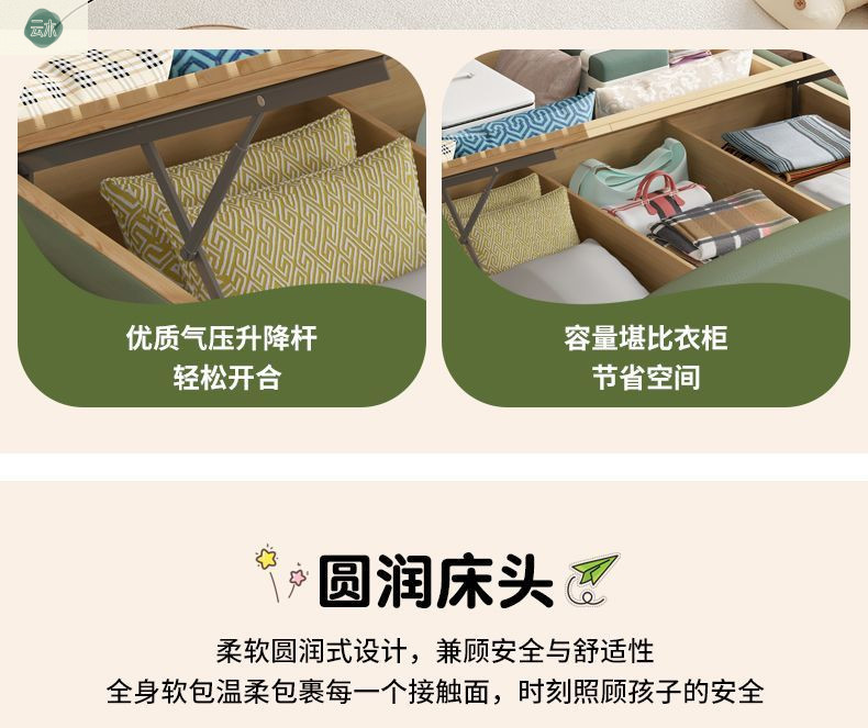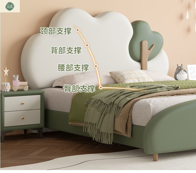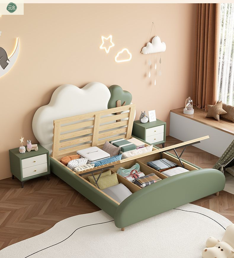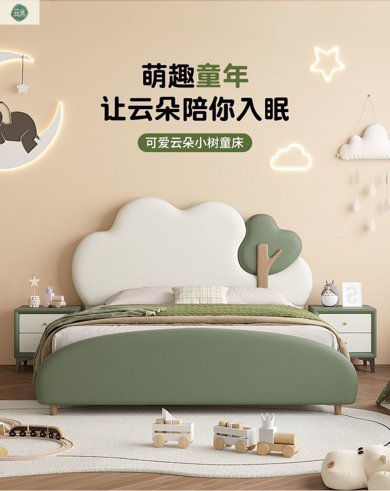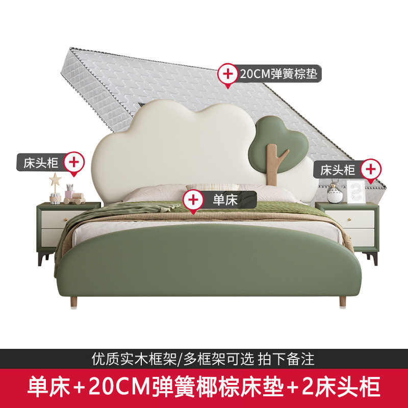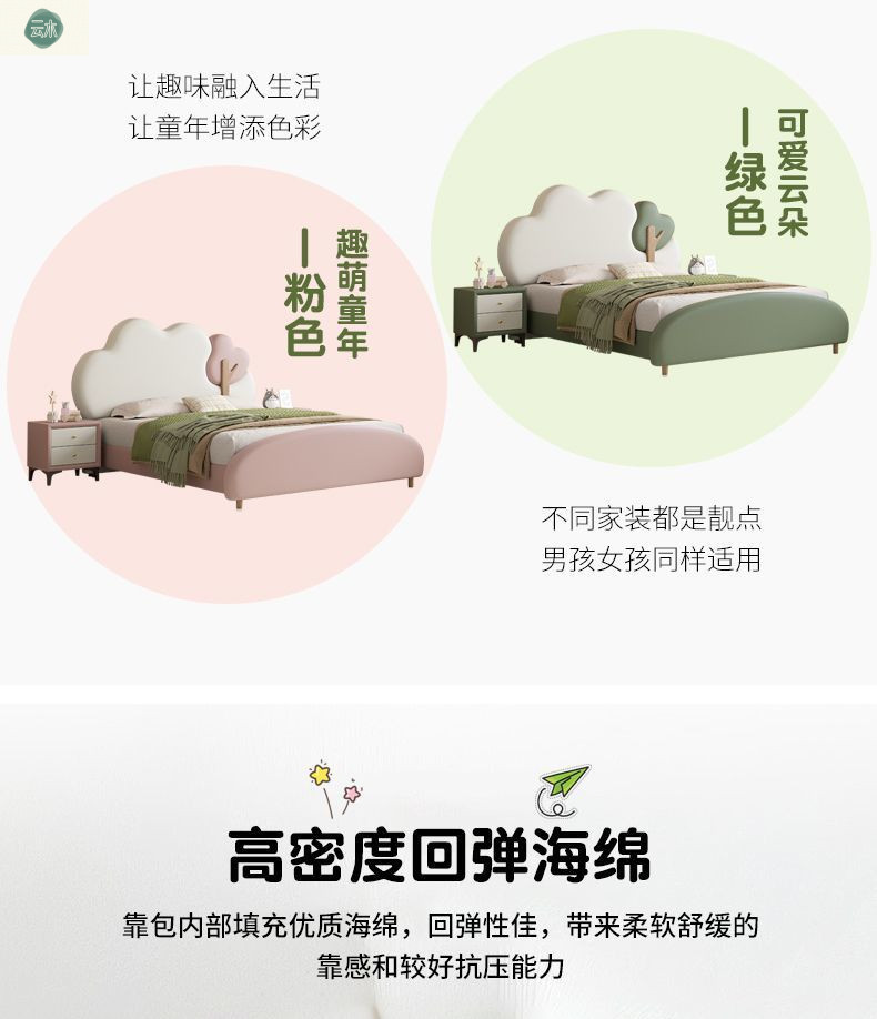 클라우드 프린세스 침대 1.2m 어린이 핑크 소녀 침실 1.5m 소년 녹색 싱글 수납 가죽 침대스토어 가기