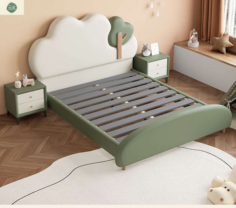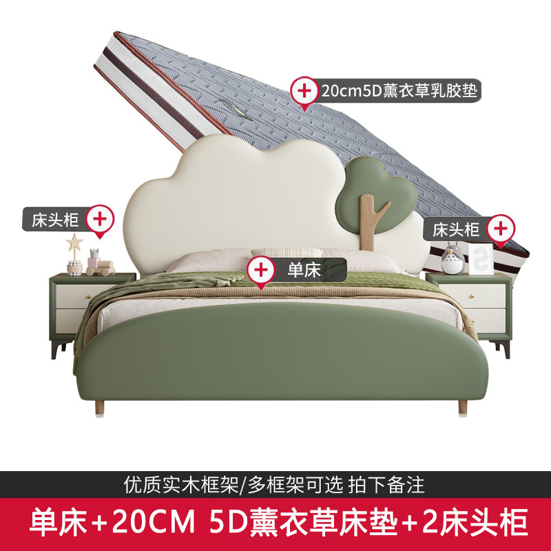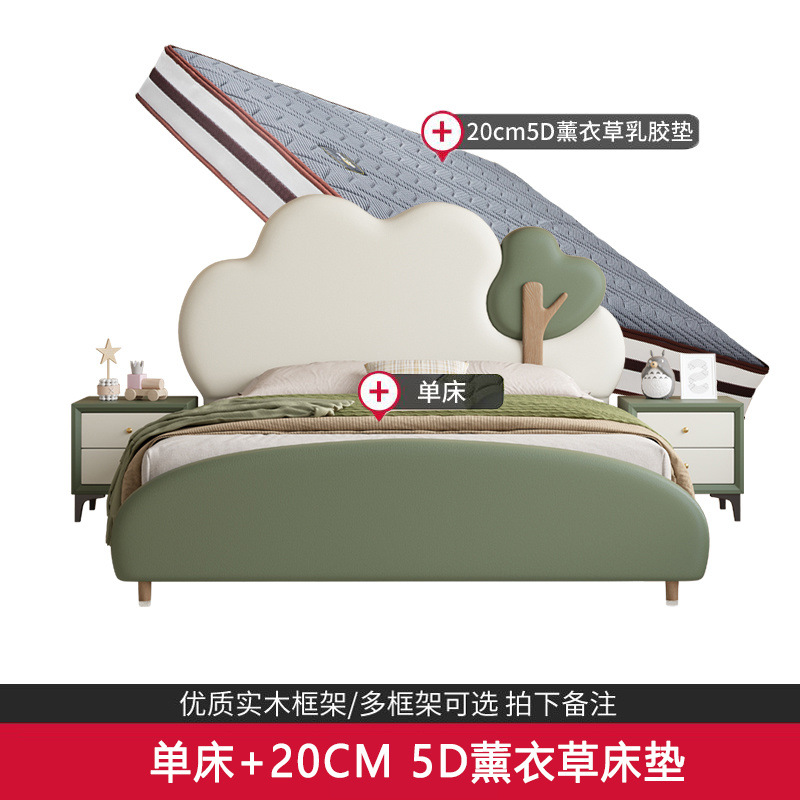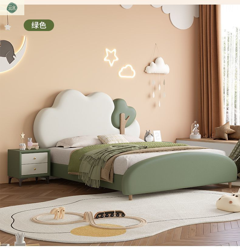 클라우드 프린세스 침대 1.2m 어린이 핑크 소녀 침실 1.5m 소년 녹색 싱글 수납 가죽 침대