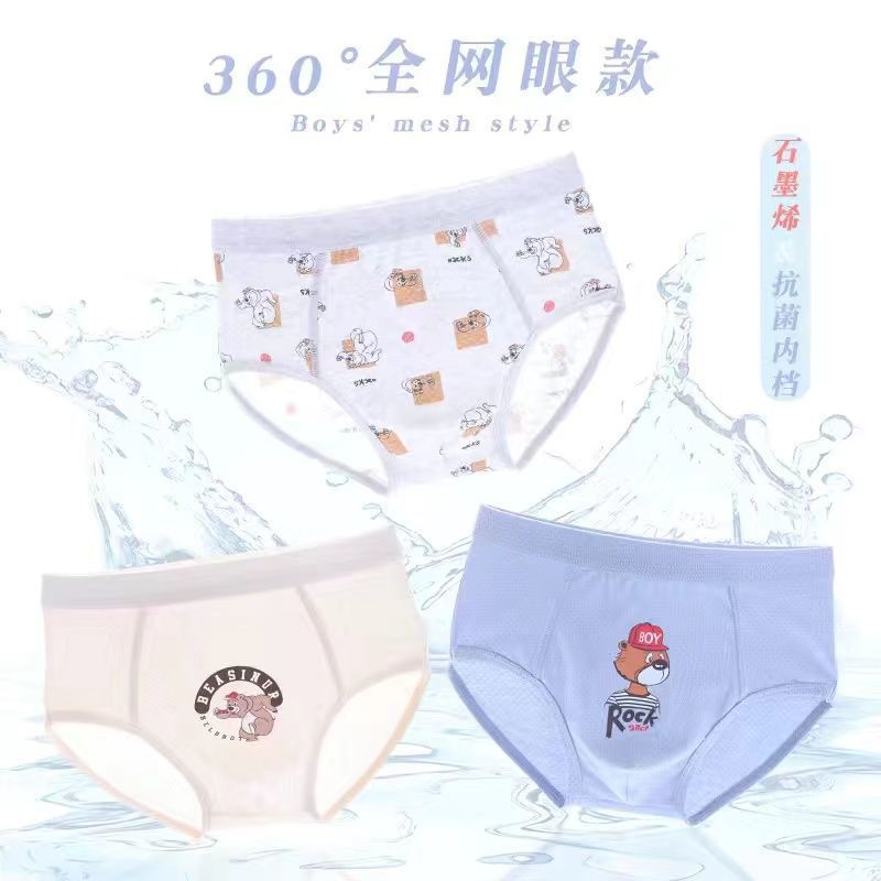 남아용 팬티, 아동용 면 속옷, 중대형 아동용 면 메쉬 통기성 남아용 여름용 얇은 학생용 반바지스토어 가기