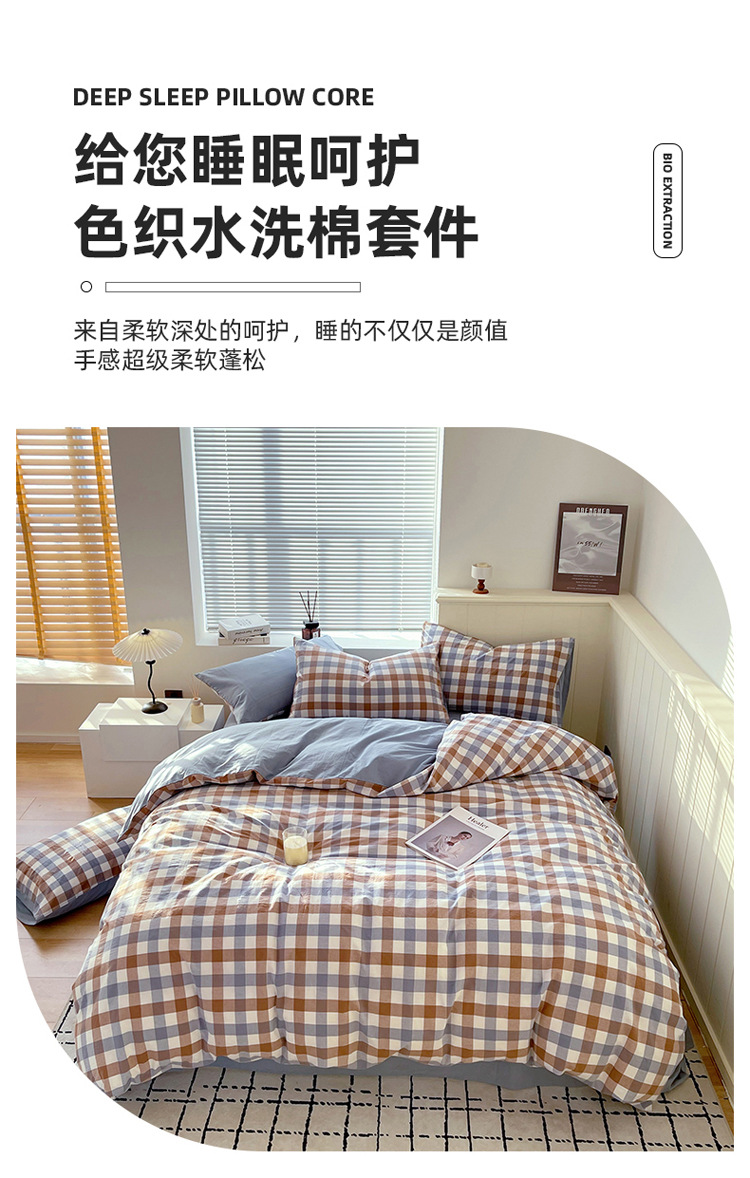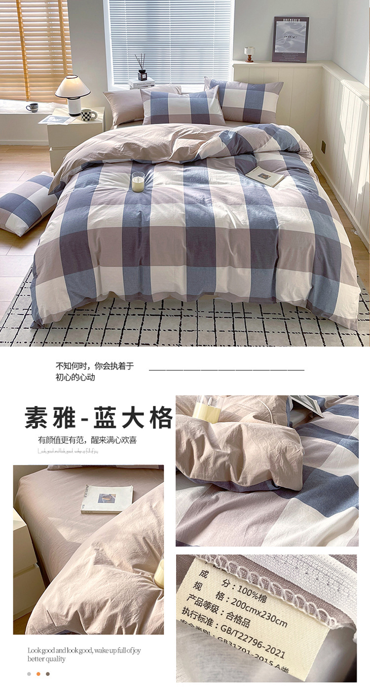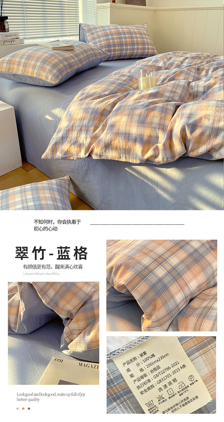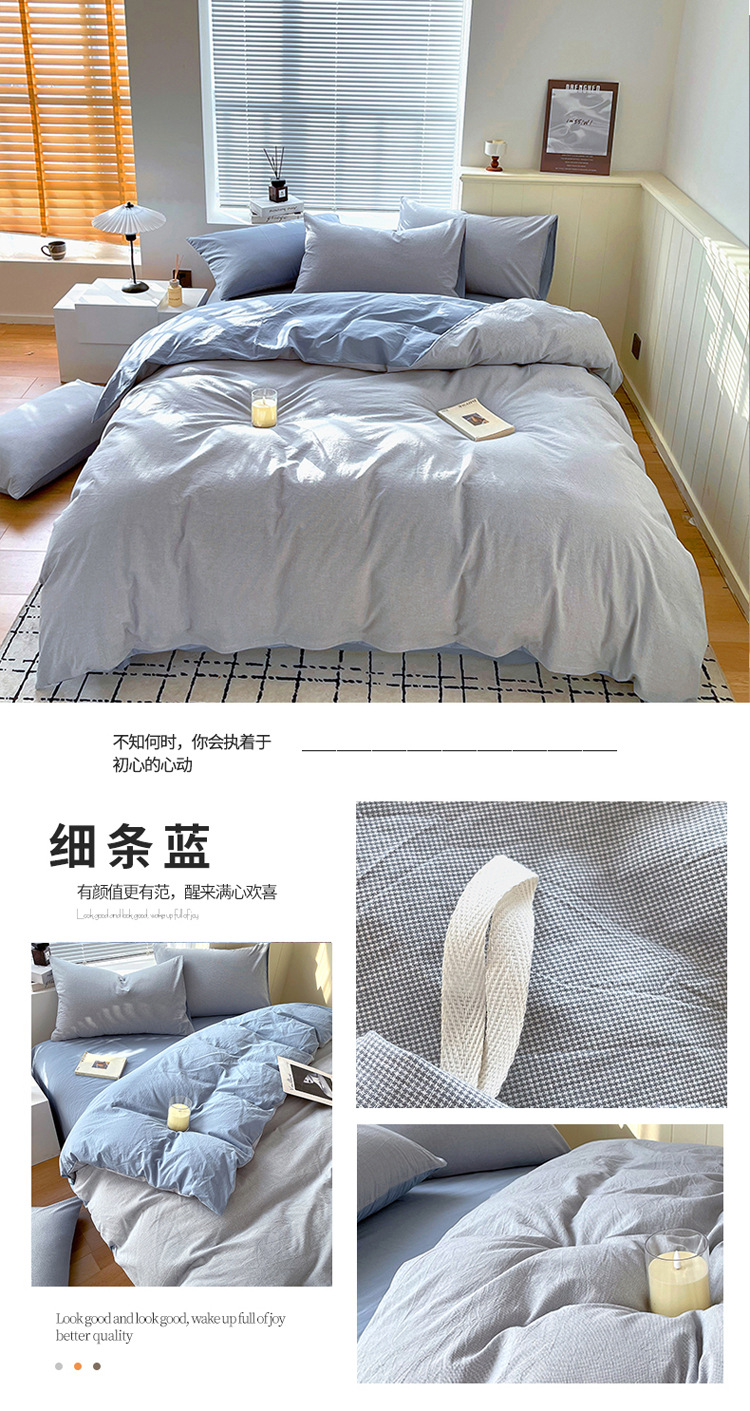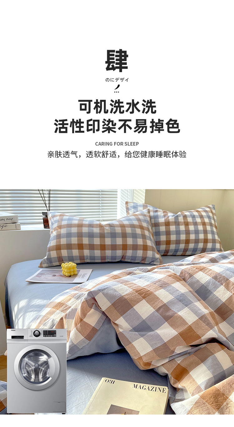 면 원사 염색 워싱면 3종세트 대학기숙사 침실 이층침대 세트 침대 시트와 매트리스 커버 4종세트스토어 가기
