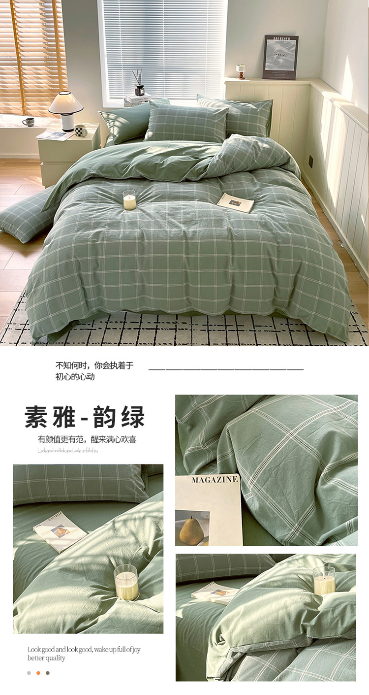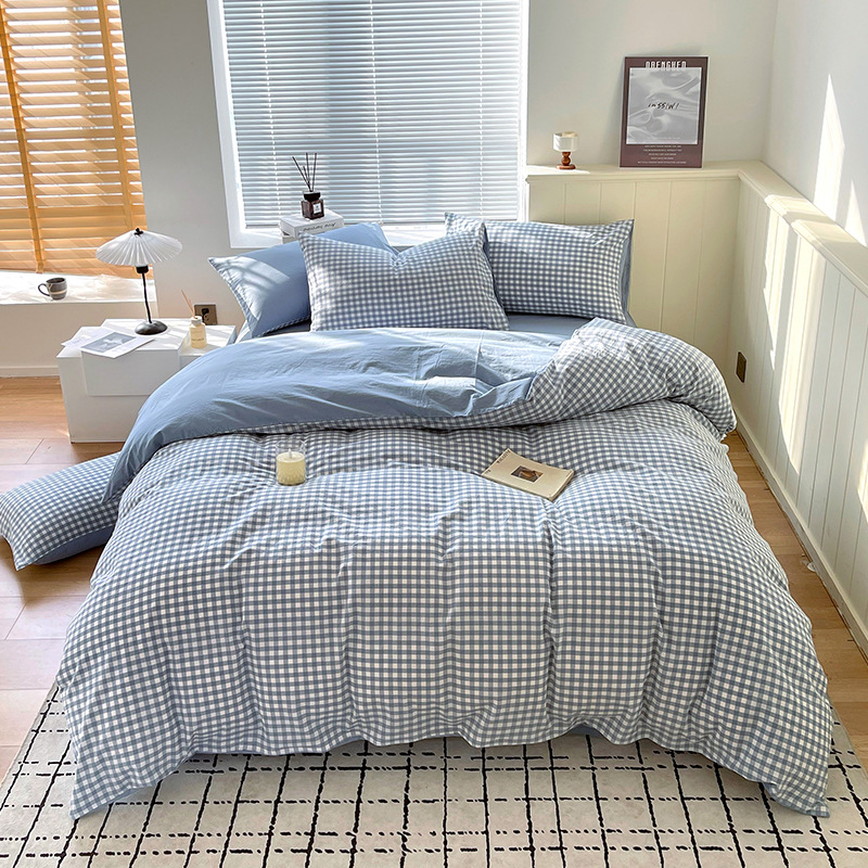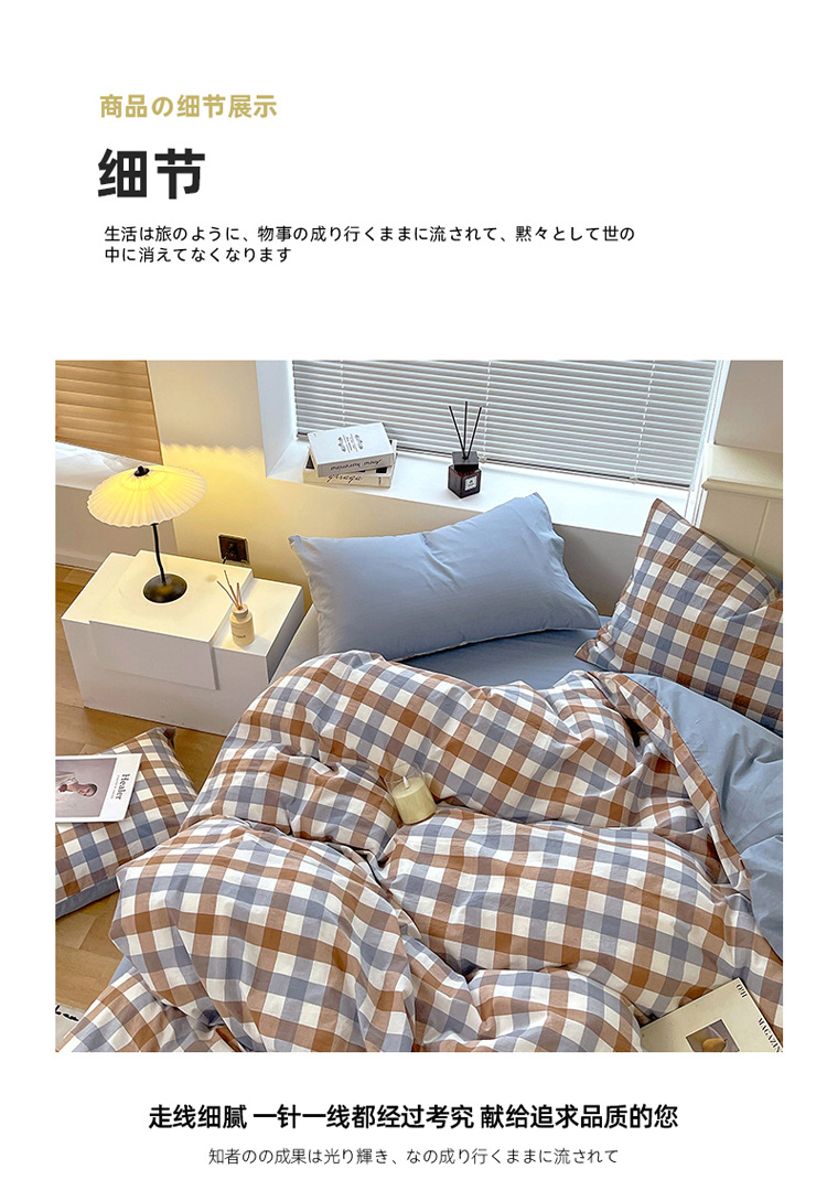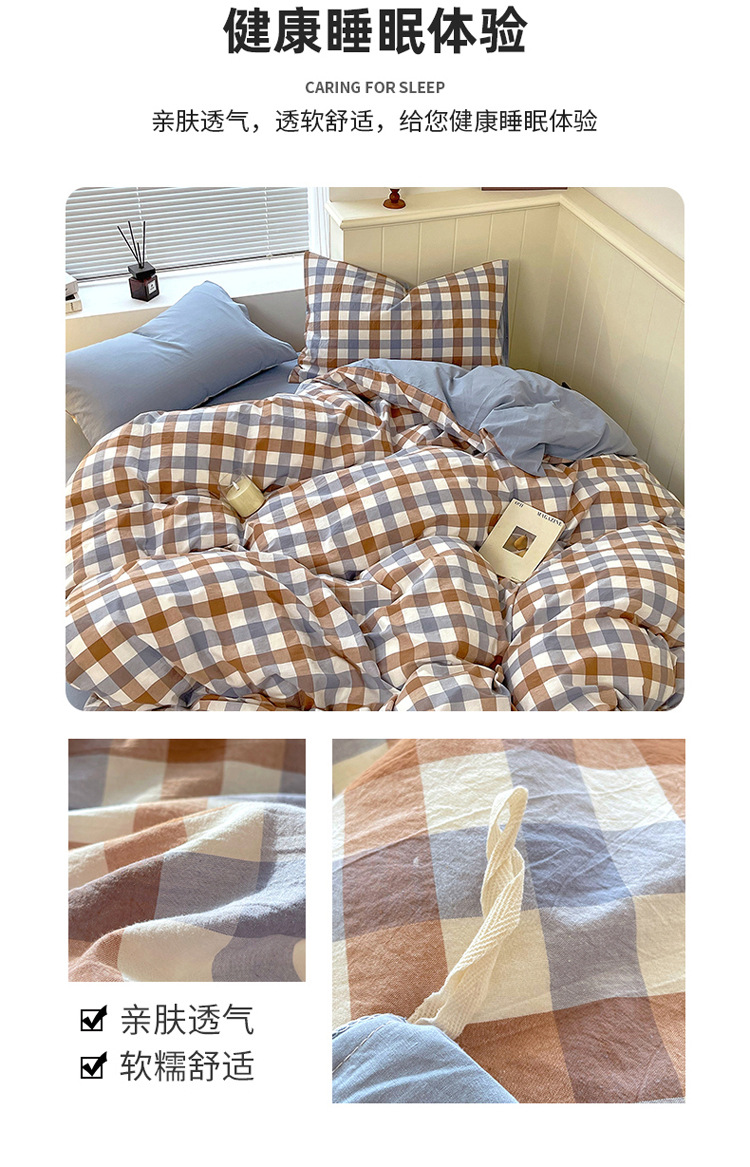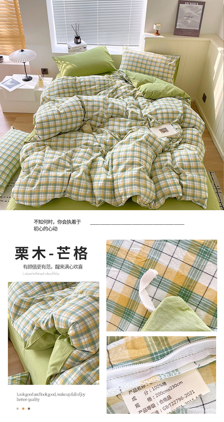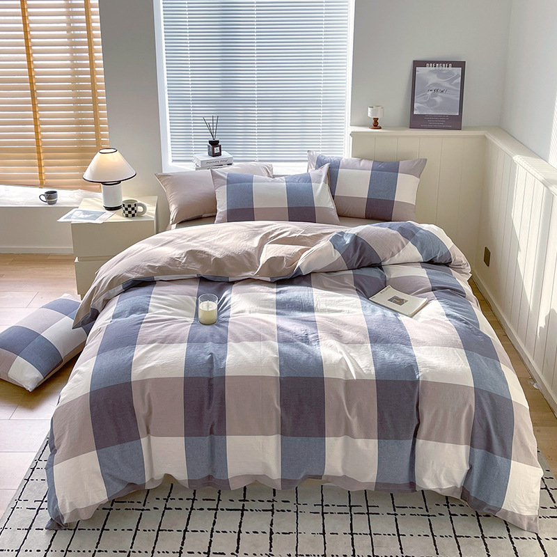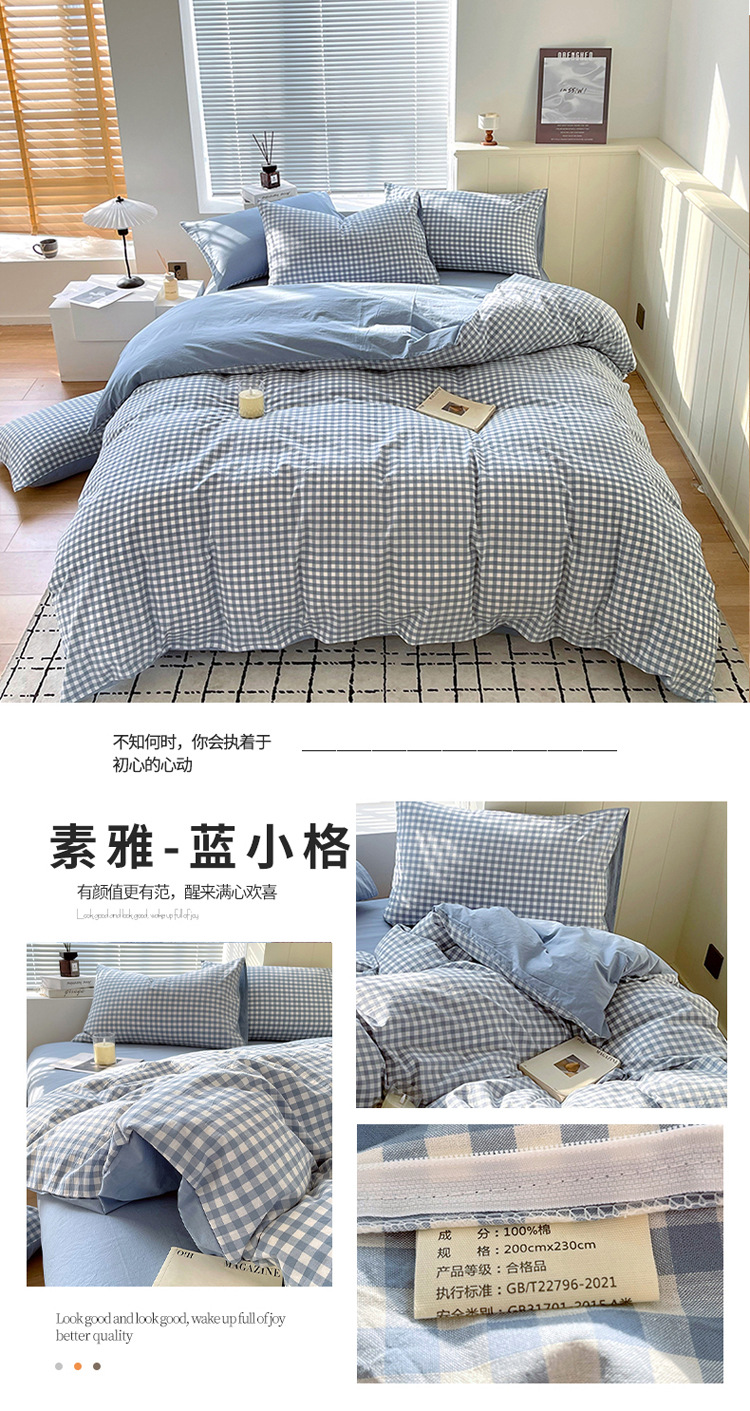 면 원사 염색 워싱면 3종세트 대학기숙사 침실 이층침대 세트 침대 시트와 매트리스 커버 4종세트스토어 가기
