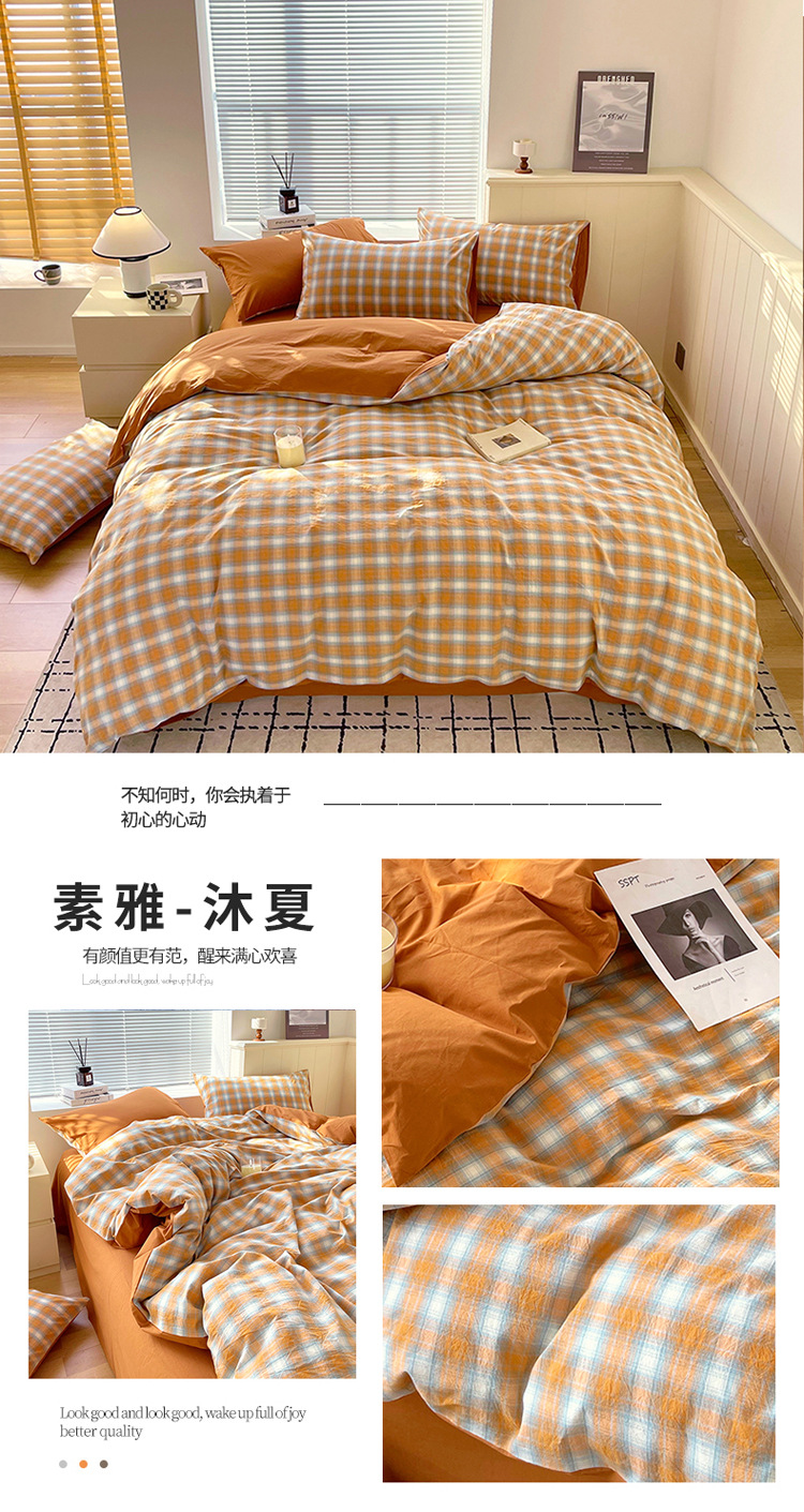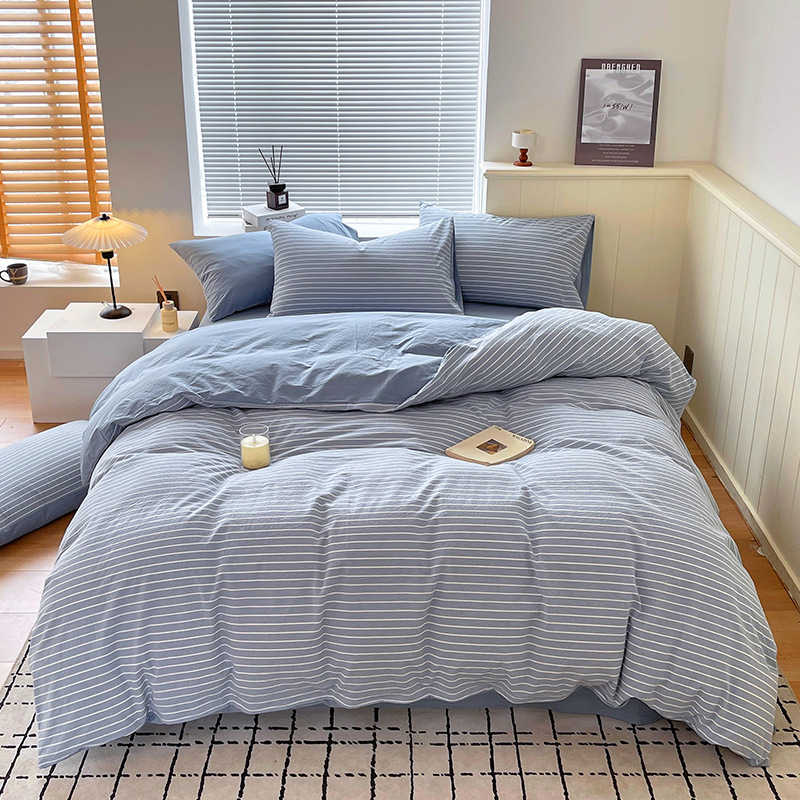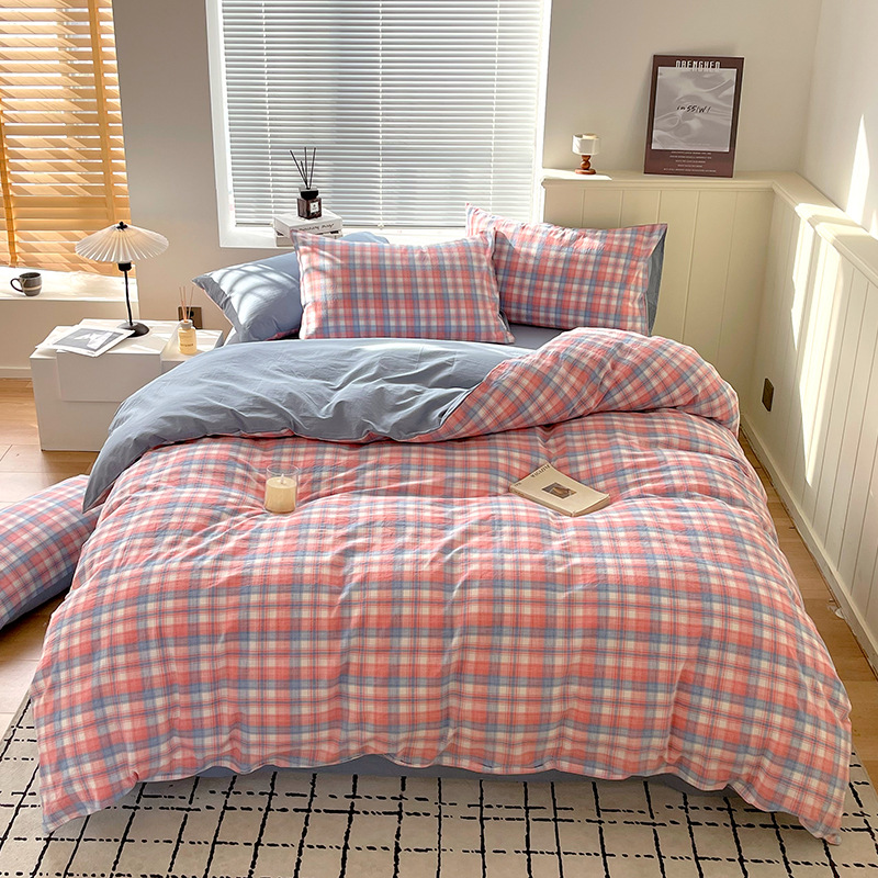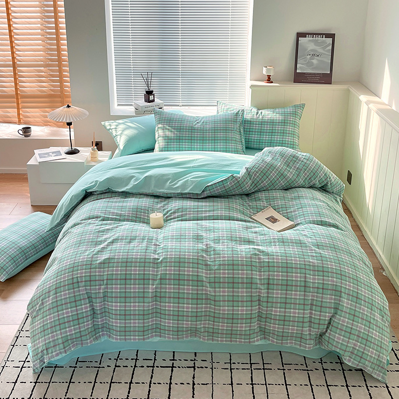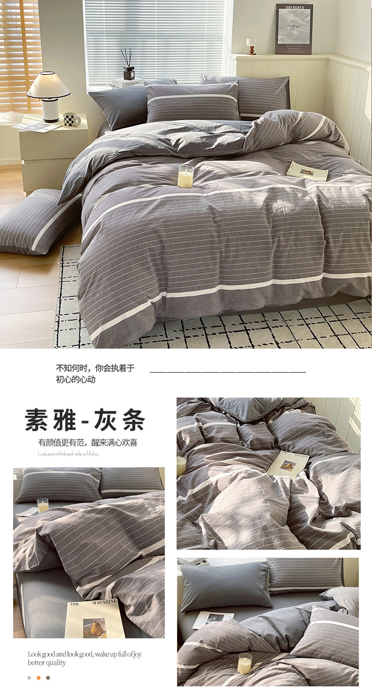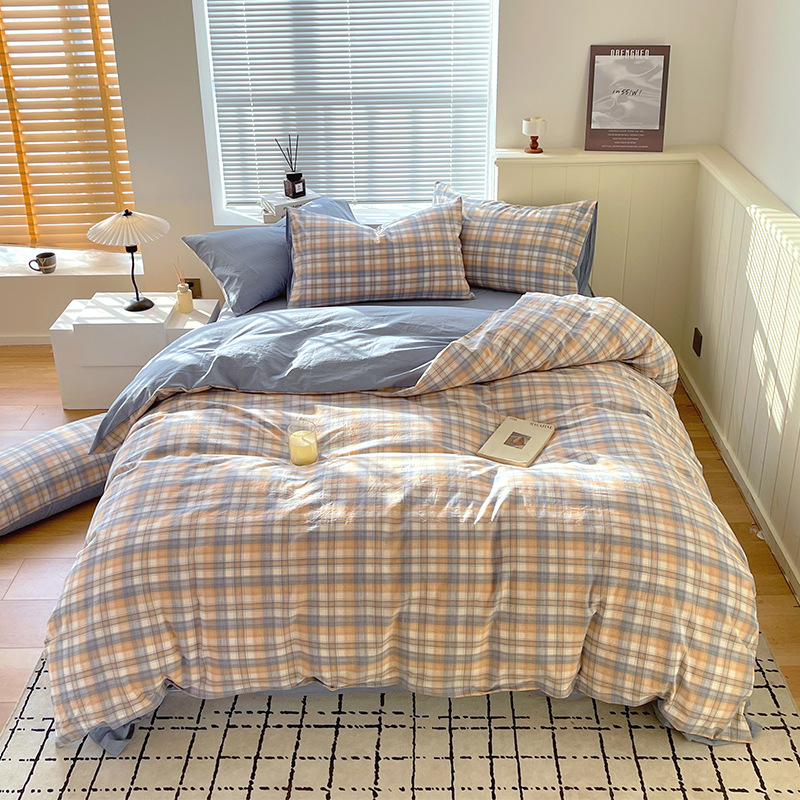 면 원사 염색 워싱면 3종세트 대학기숙사 침실 이층침대 세트 침대 시트와 매트리스 커버 4종세트스토어 가기