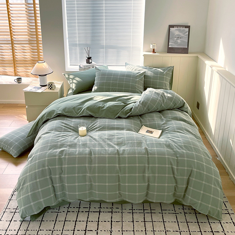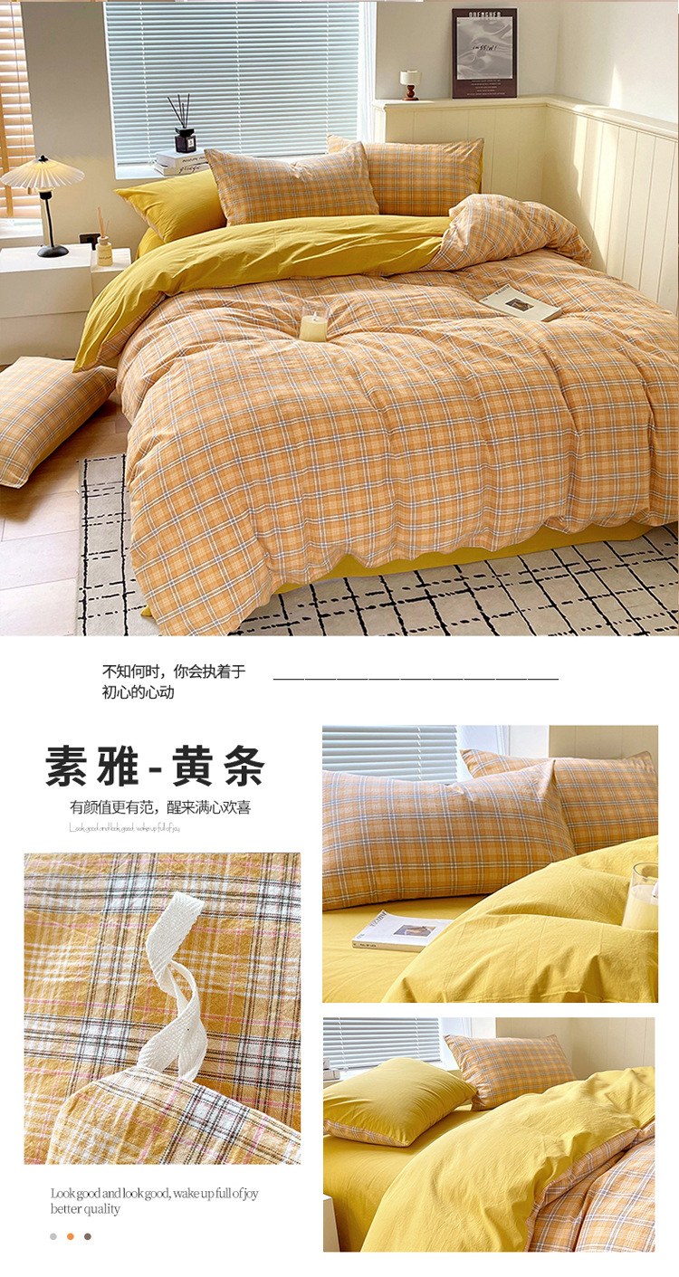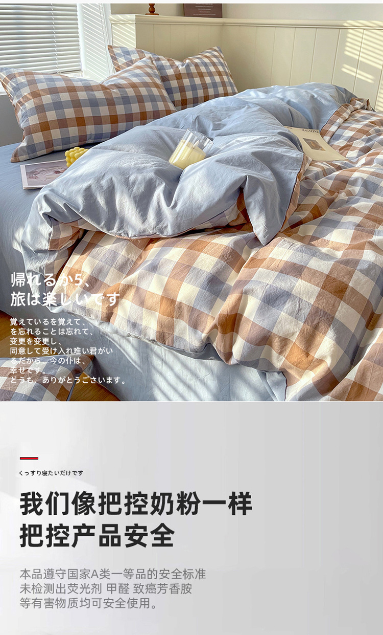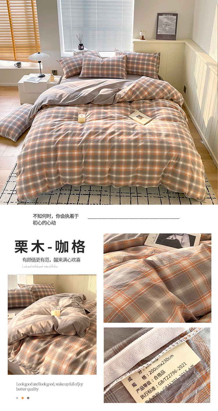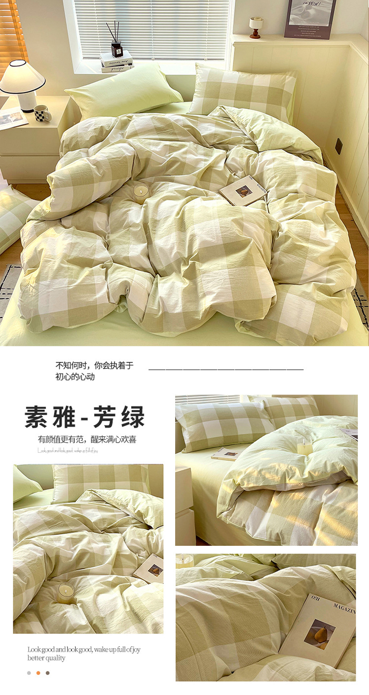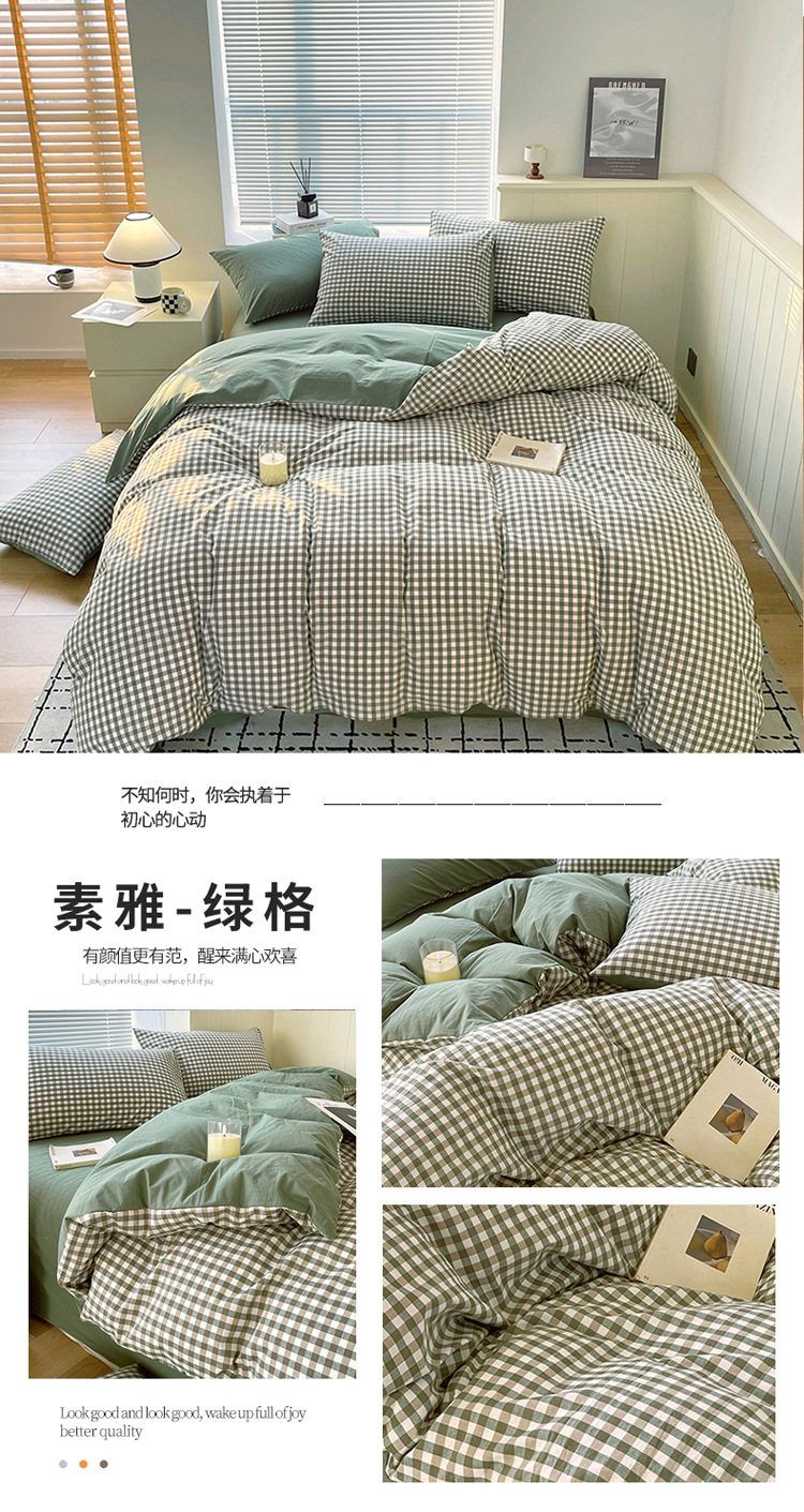 면 원사 염색 워싱면 3종세트 대학기숙사 침실 이층침대 세트 침대 시트와 매트리스 커버 4종세트스토어 가기