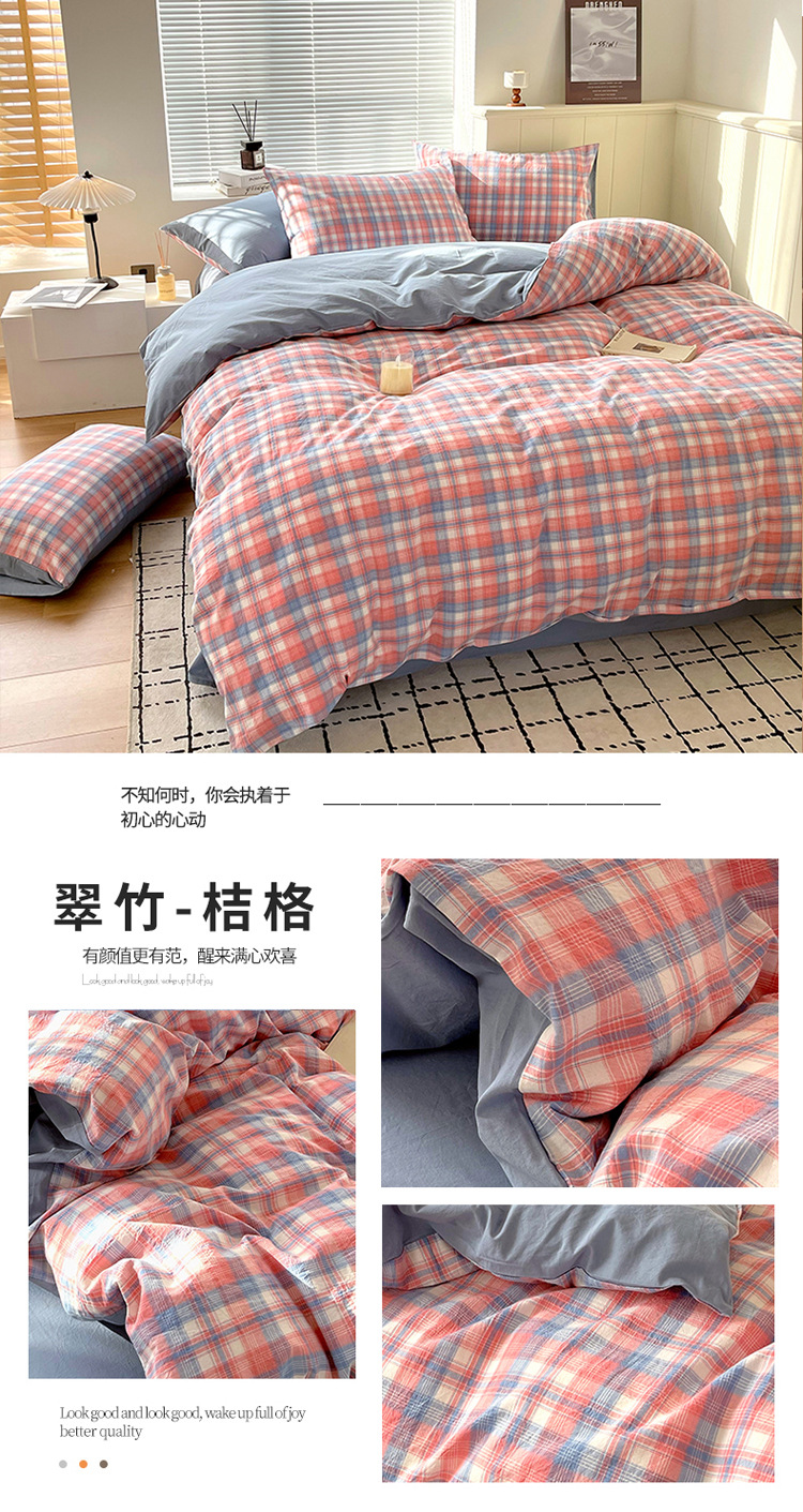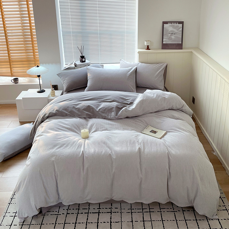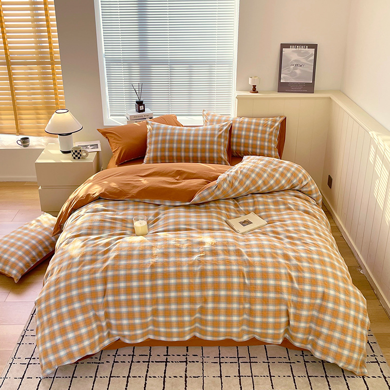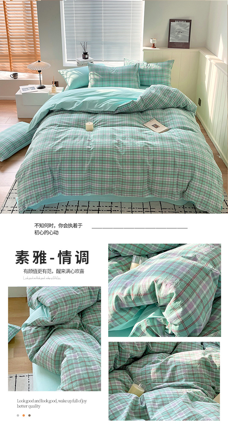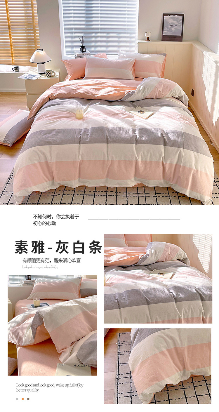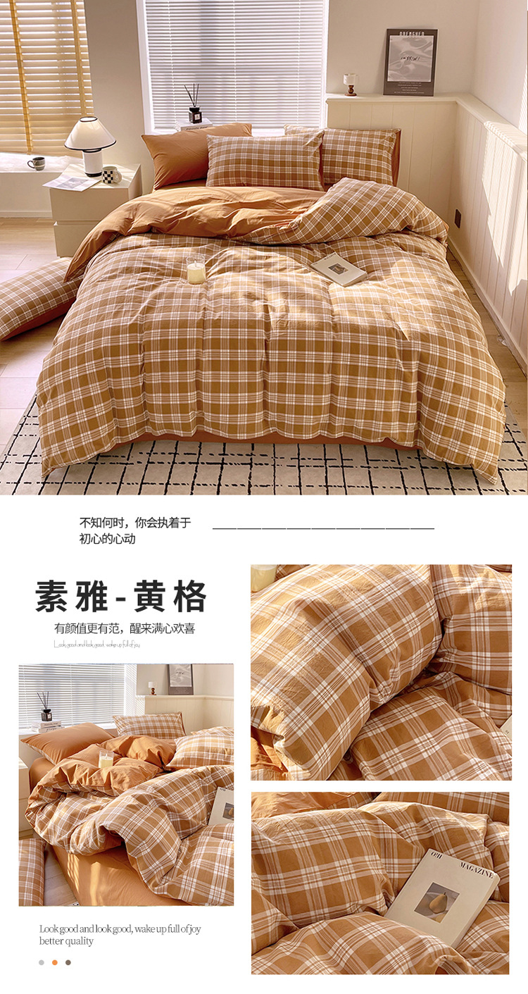 면 원사 염색 워싱면 3종세트 대학기숙사 침실 이층침대 세트 침대 시트와 매트리스 커버 4종세트스토어 가기
