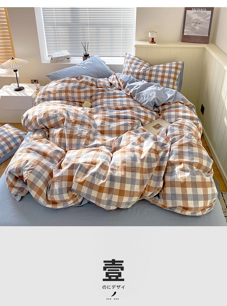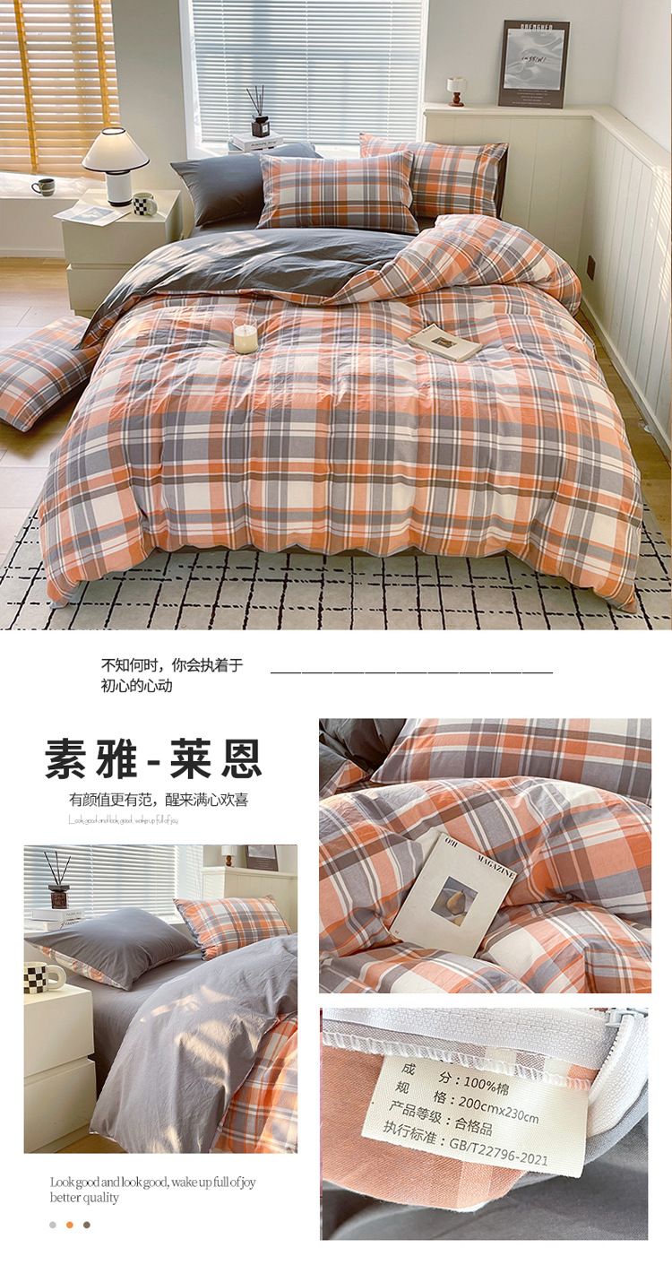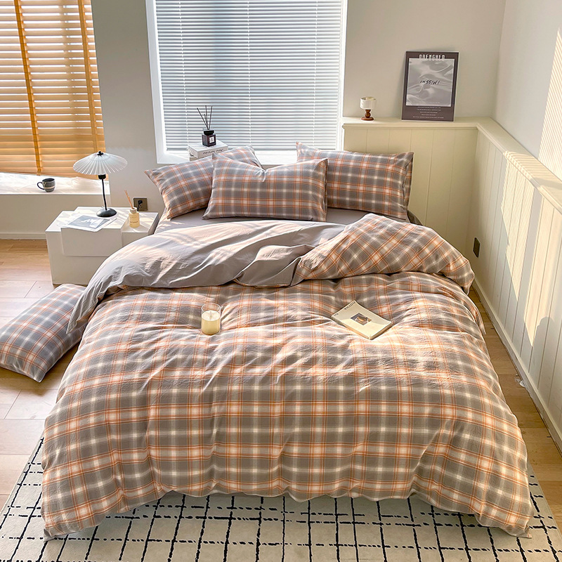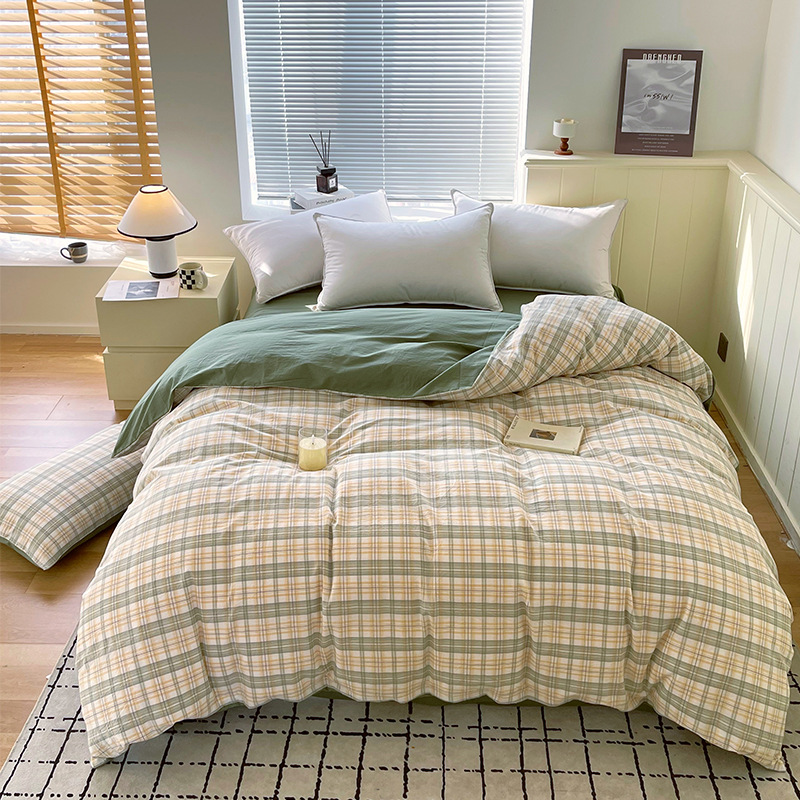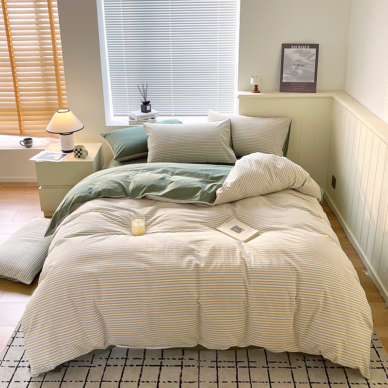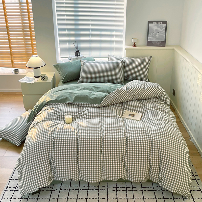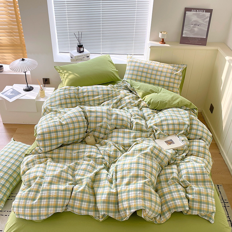 면 원사 염색 워싱면 3종세트 대학기숙사 침실 이층침대 세트 침대 시트와 매트리스 커버 4종세트스토어 가기
