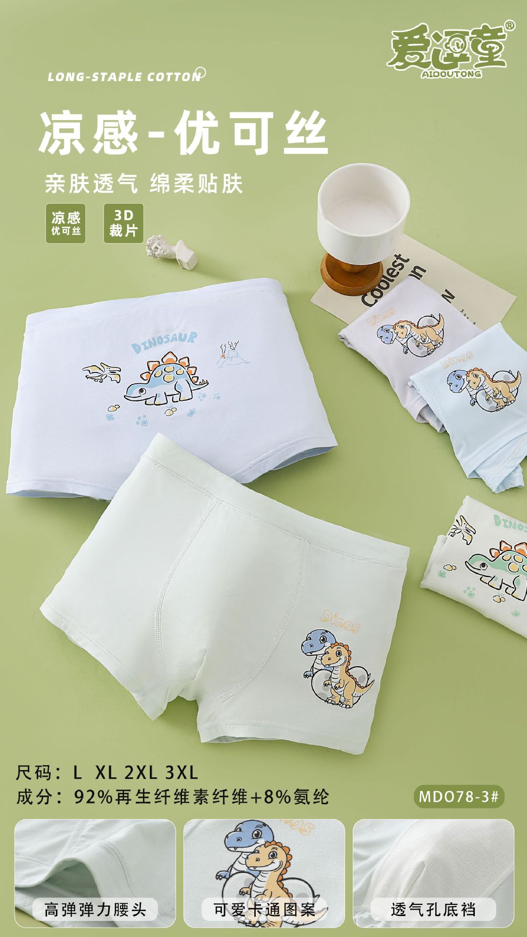 Aidoutong 소년 모달 복서 팬티 항균 얇은 여름 EcoCos 통기성 특수 어린이 만화 공룡스토어 가기
