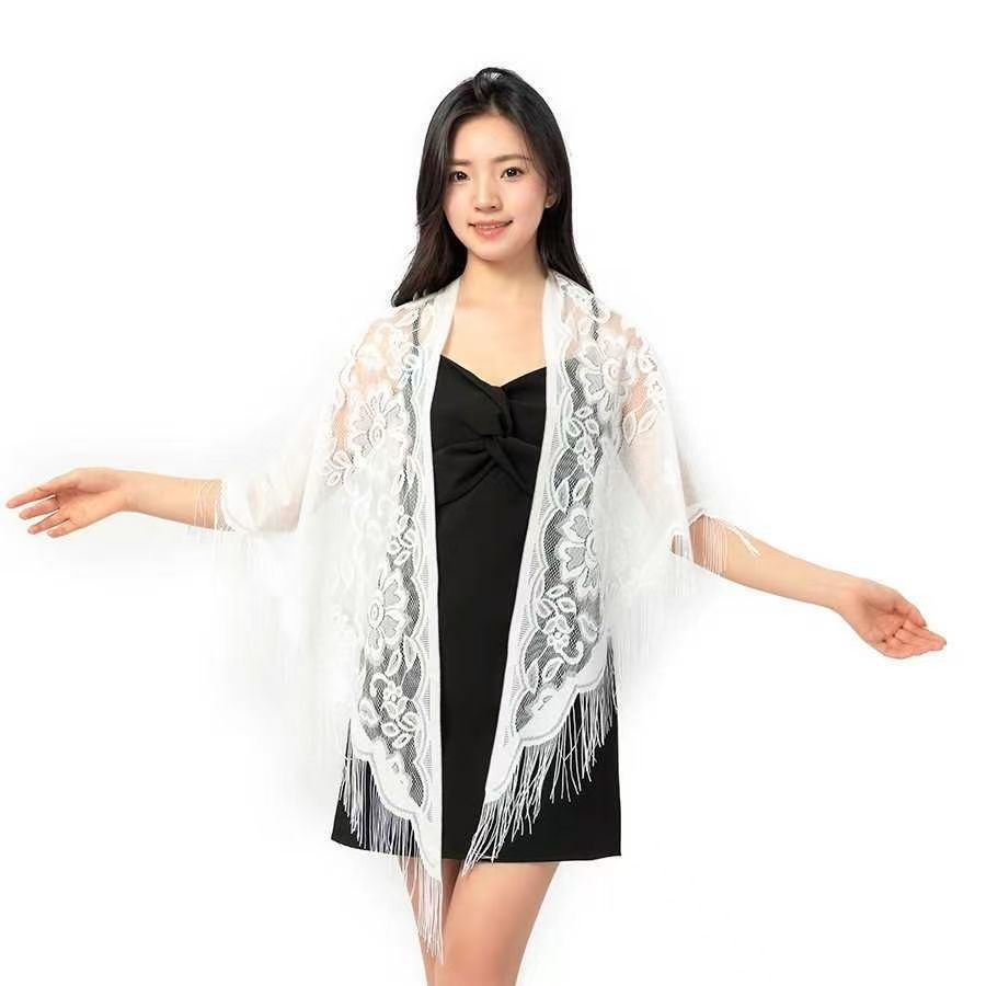 2025 새로운 여름 레이스 목도리 중공 삼각형 스카프 유럽과 미국의 복고풍 술 스카프 여성 드레스 사진 목도리