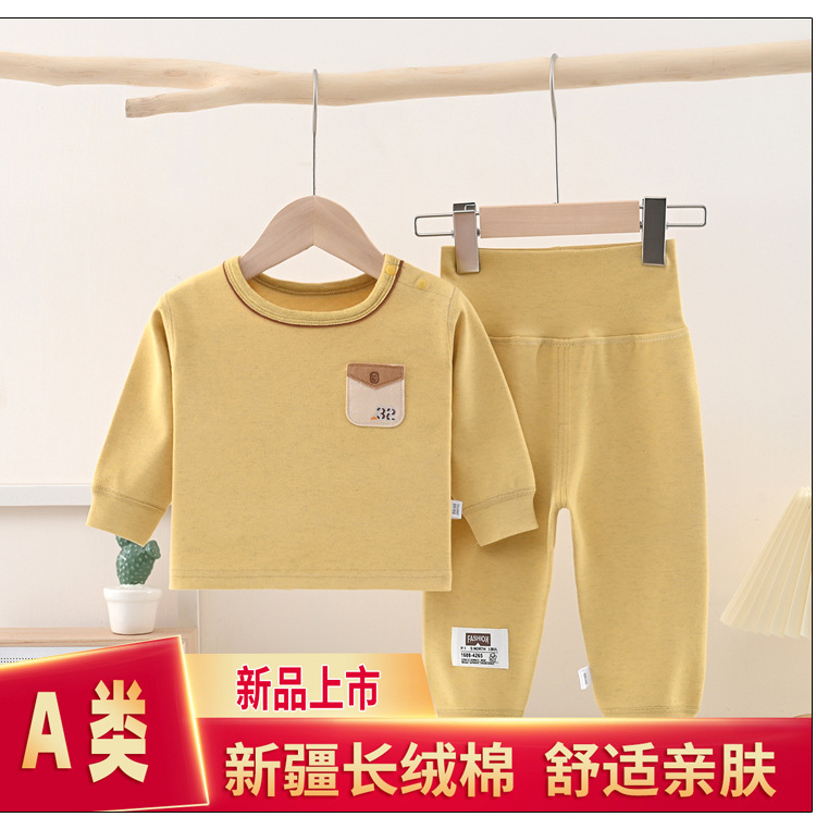 어깨 버클 세트, 수분 흡수, 땀 흡수 및 따뜻한 가을 옷과 바지, 긴 스테이플 코튼, 가을 겨울 사계절 하이 웨이스트, 봄과 가을 피부 친화적인 하이 웨이스트 및 배 보호스토어 가기