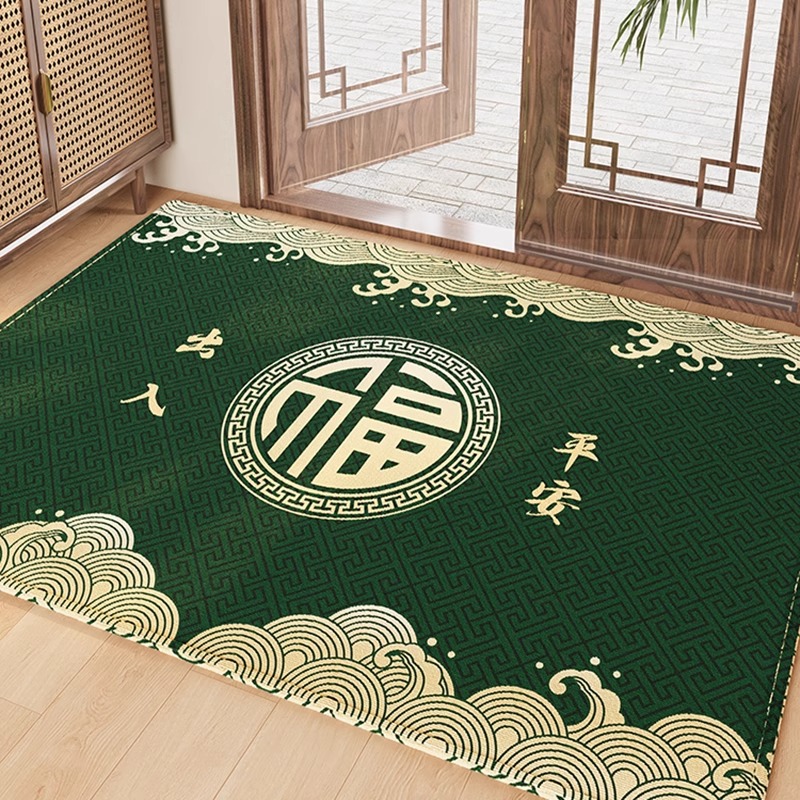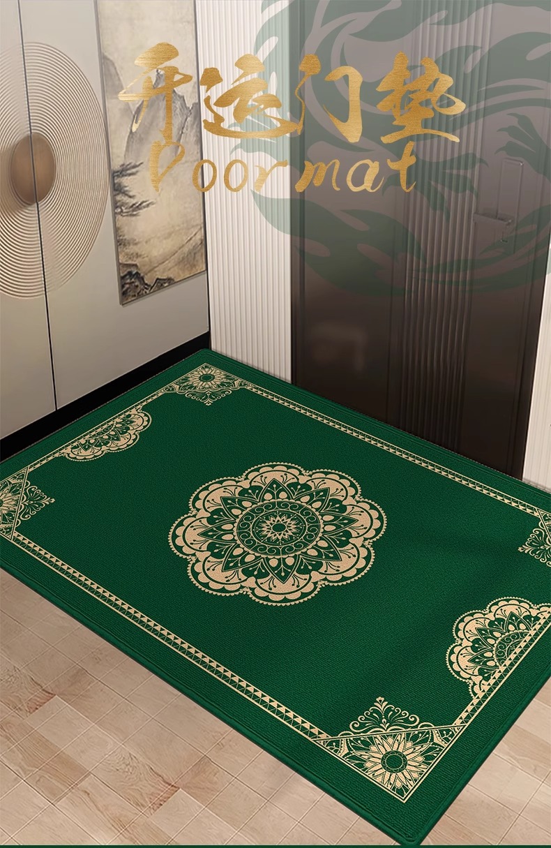 입구문, 연잎녹색 행운의 풍수 바닥매트, 발매트, 출입문매트, 미끄럼방지, 얼룩방지 현관카펫