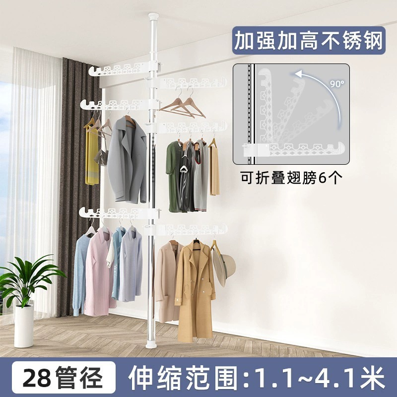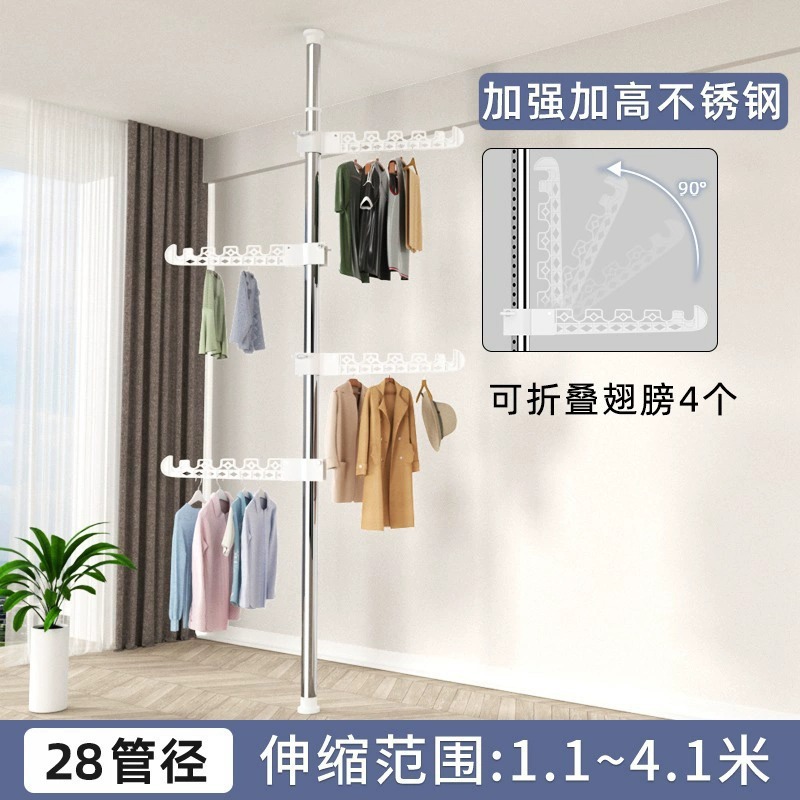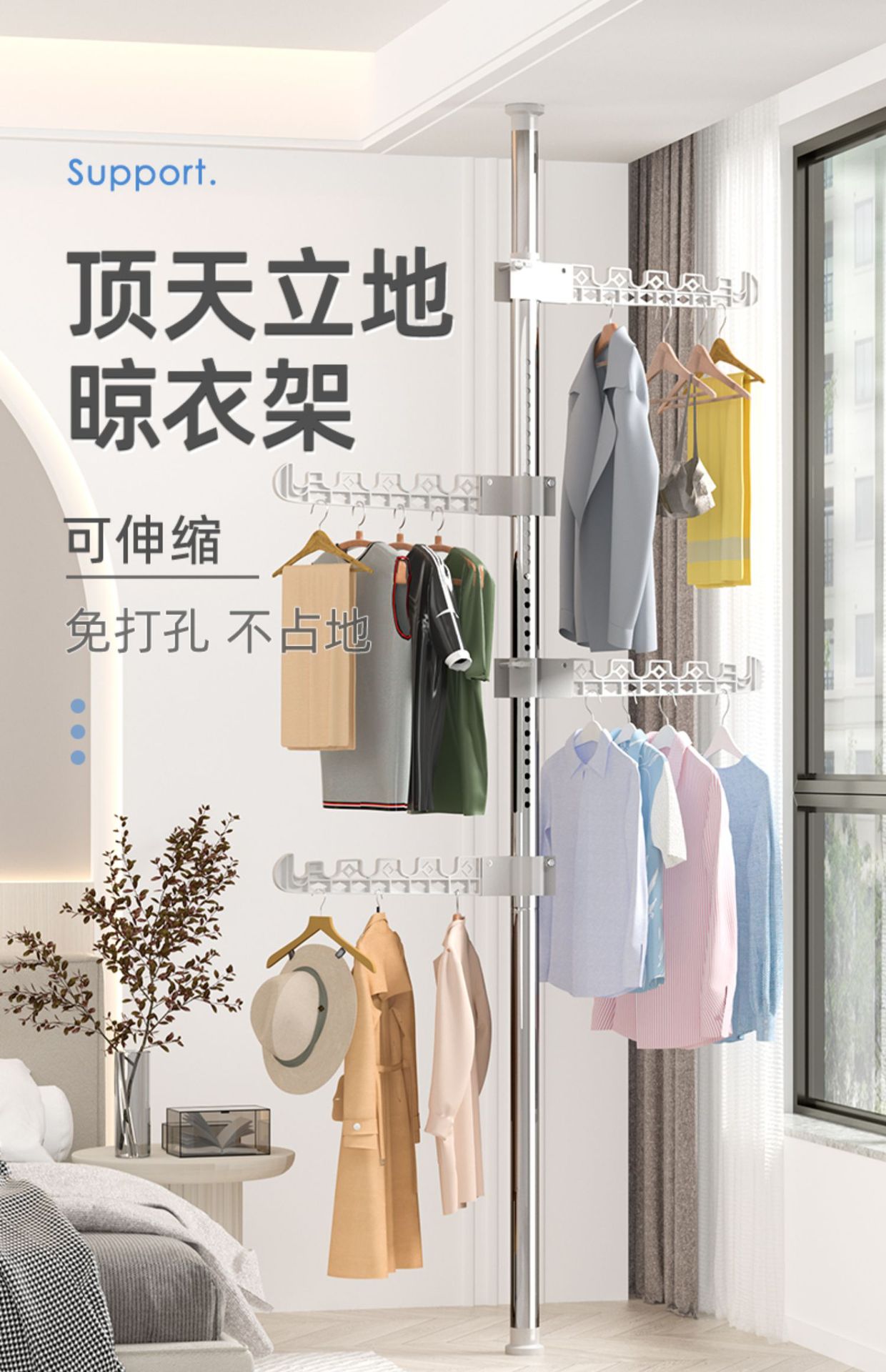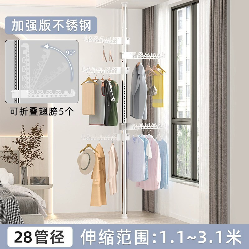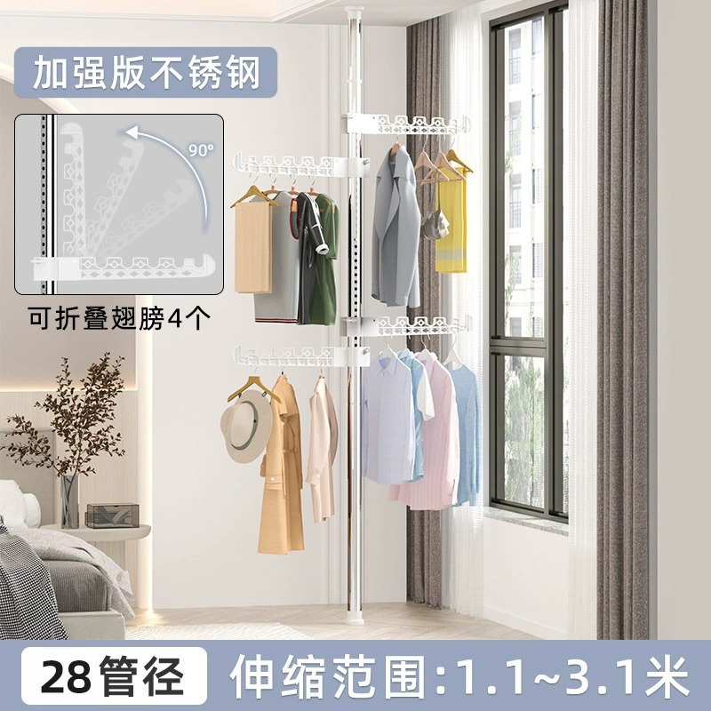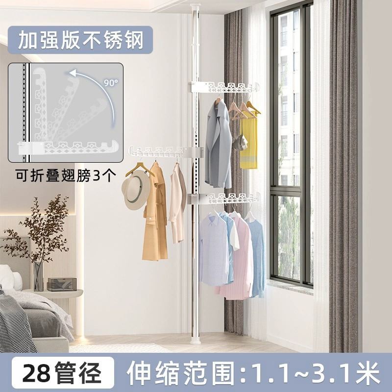 실내 바닥에서 천장까지 옷걸이, 펀치 없는 텔레스코픽 막대, 침실 발코니, 가정용 스테인레스 스틸 옷걸이