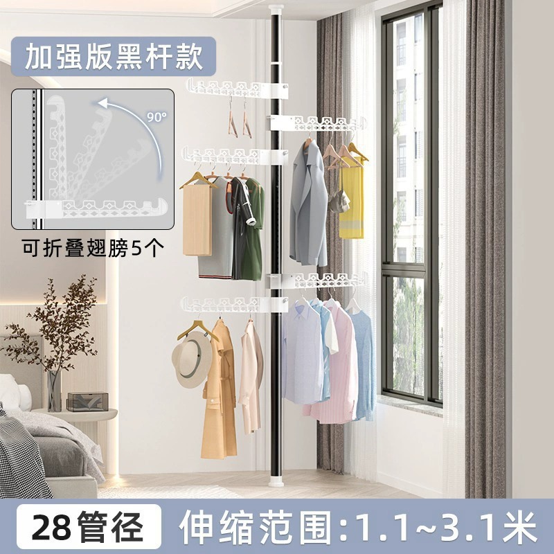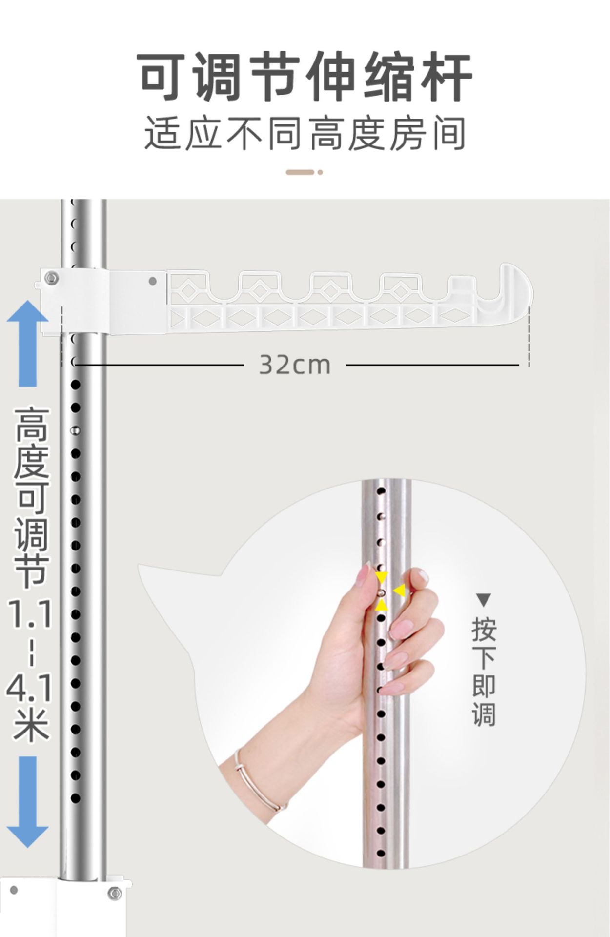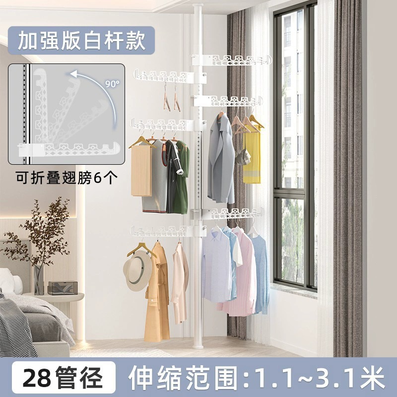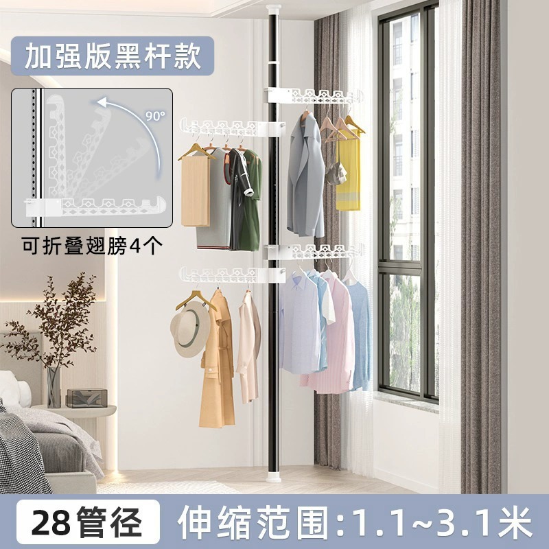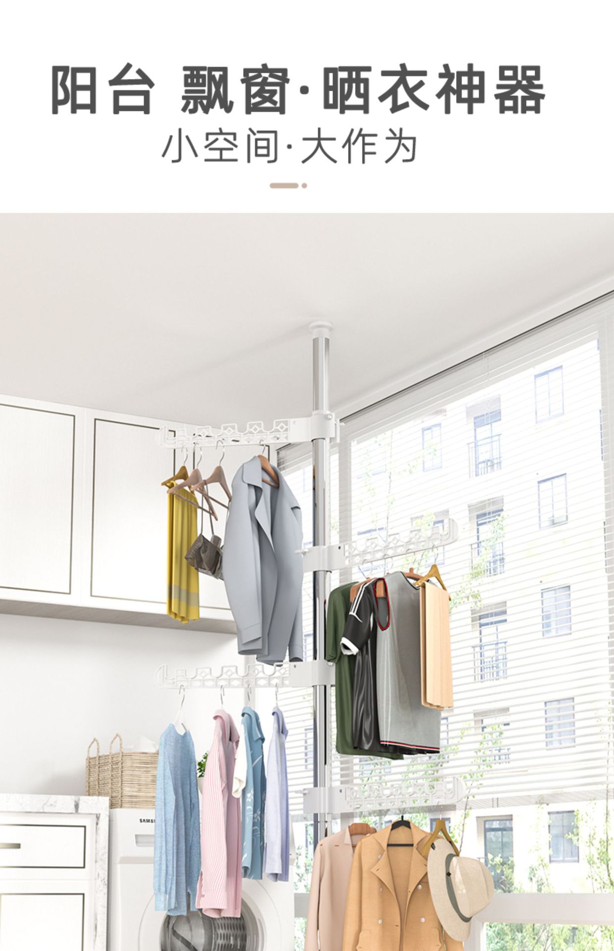 실내 바닥에서 천장까지 옷걸이, 펀치 없는 텔레스코픽 막대, 침실 발코니, 가정용 스테인레스 스틸 옷걸이