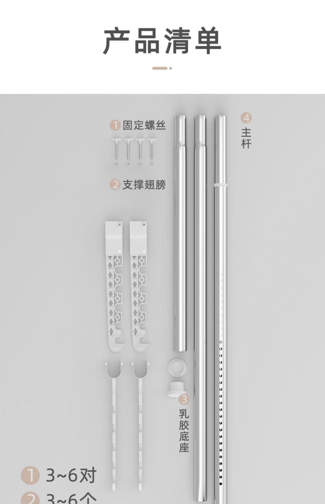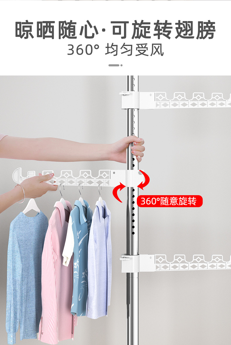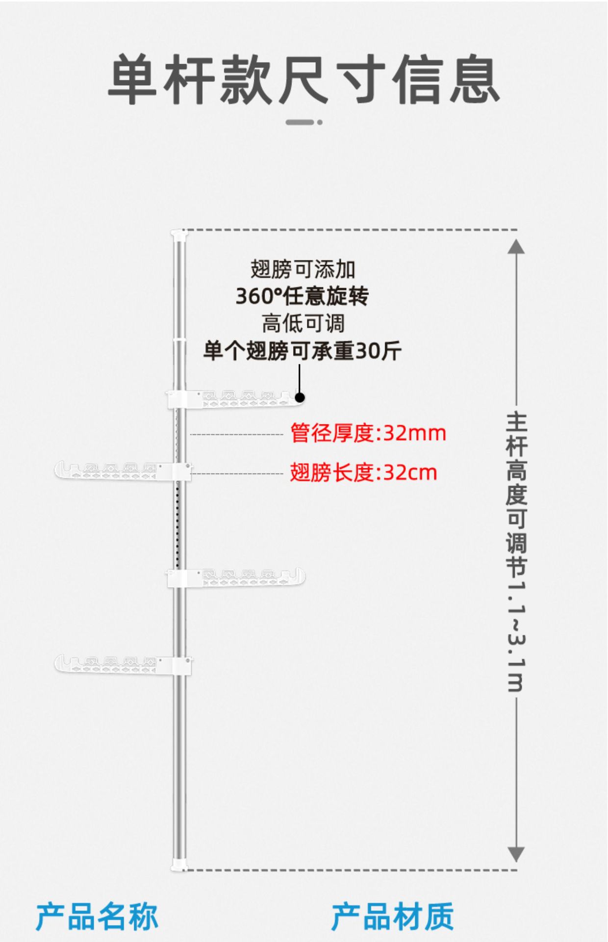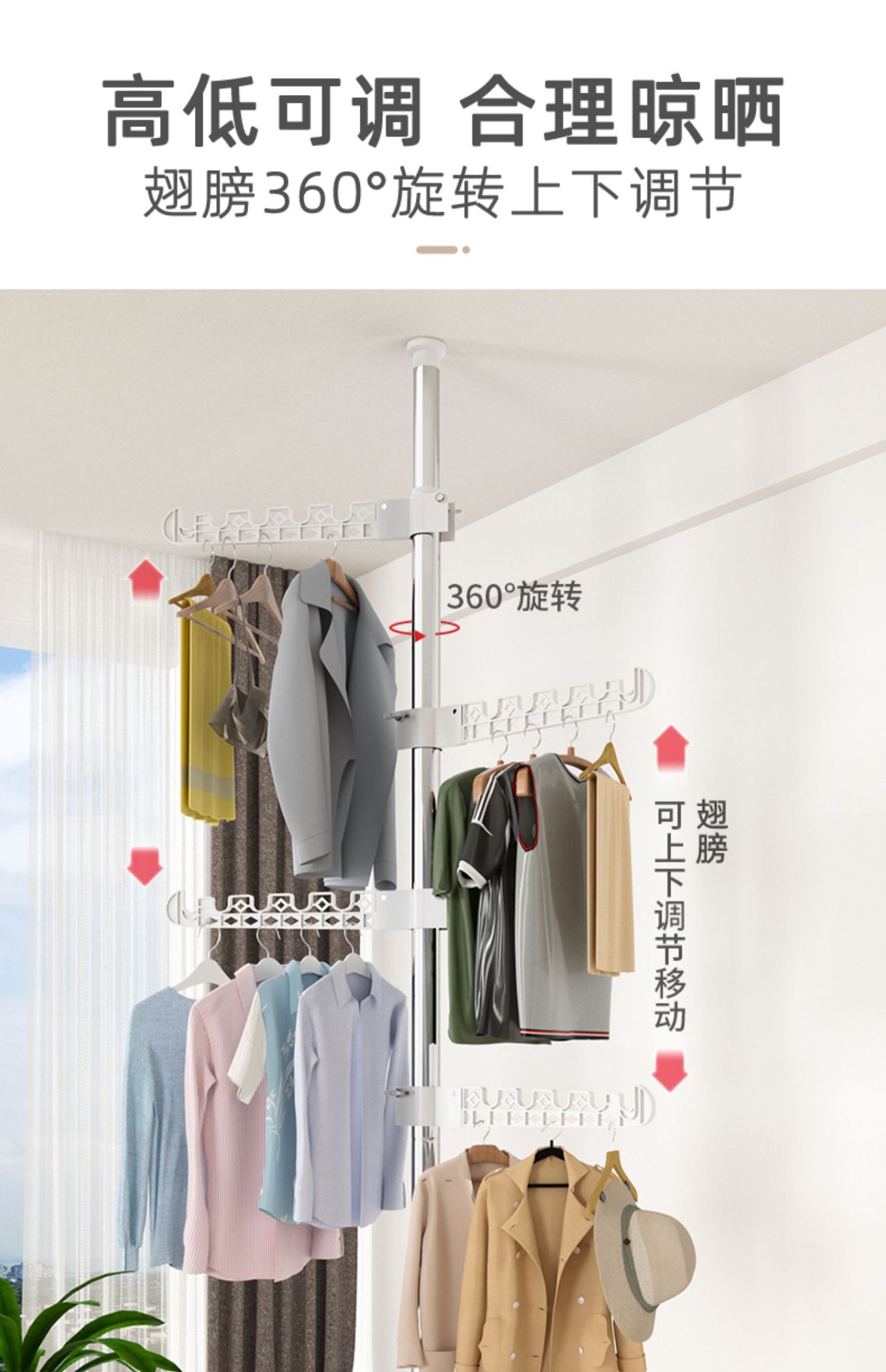 실내 바닥에서 천장까지 옷걸이, 펀치 없는 텔레스코픽 막대, 침실 발코니, 가정용 스테인레스 스틸 옷걸이