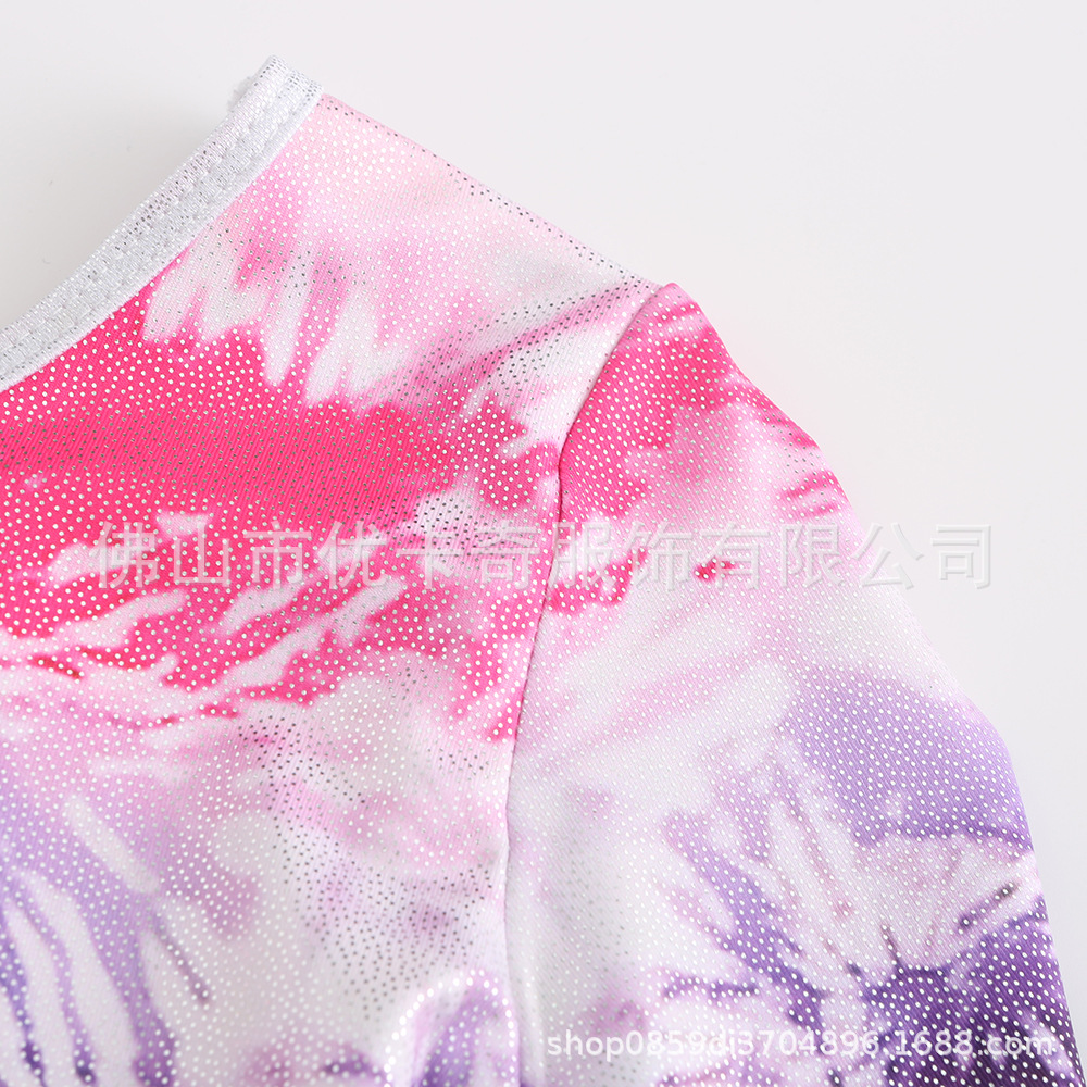 불꽃놀이 어린이 체조복, 등이없는 여아 발레 연습복, 거즈 스커트, 꽃무늬 레오타드, 시험복, 댄스복