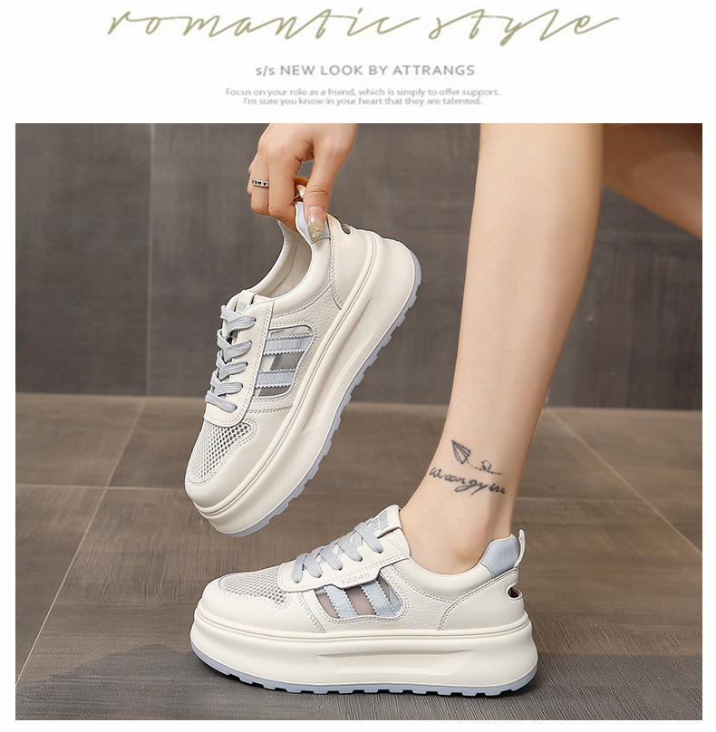 두꺼운 밑창 운동화, 메쉬 통기성 흰색 신발, 여성 신발, 2025 여름 새로운 부드러운 밑창 캐주얼 스포츠 운동화, 여성스토어 가기