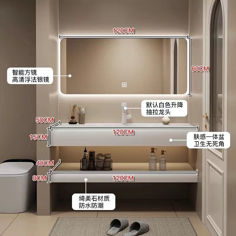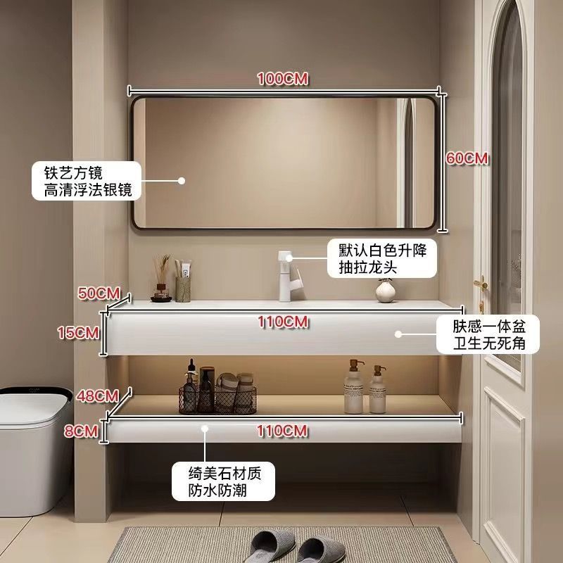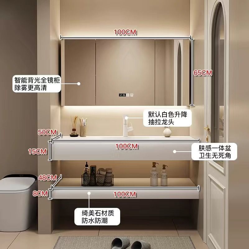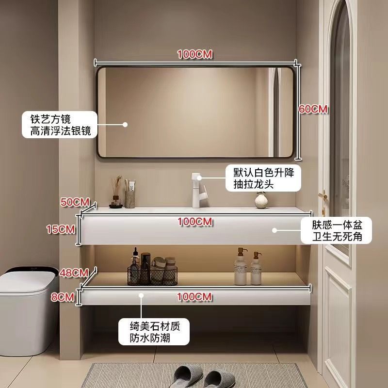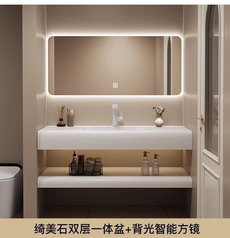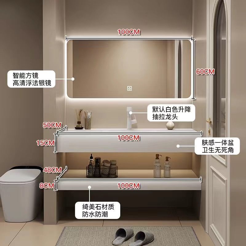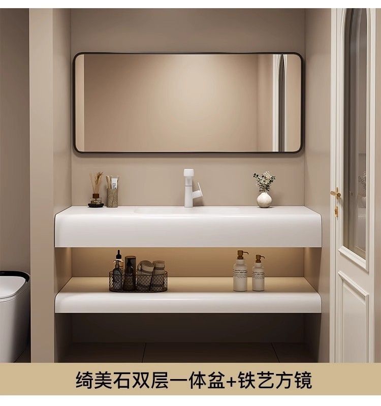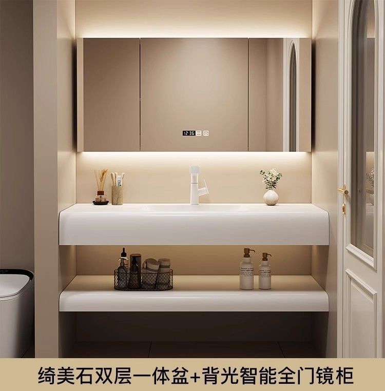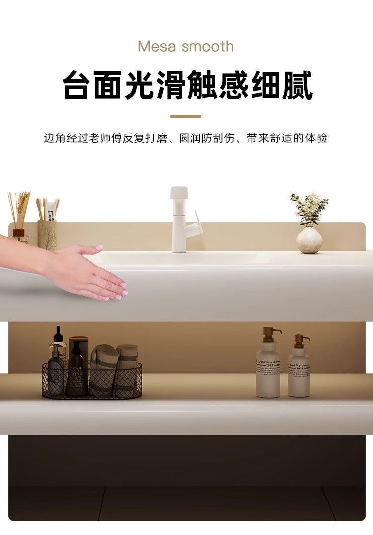 새로운 크림 스타일의 Corian 피부 느낌의 일체형 욕실 캐비닛 세면대 세면대 조합 욕실 세면대스토어 가기