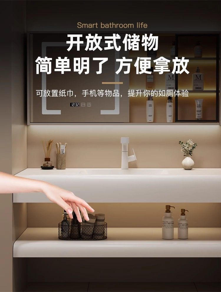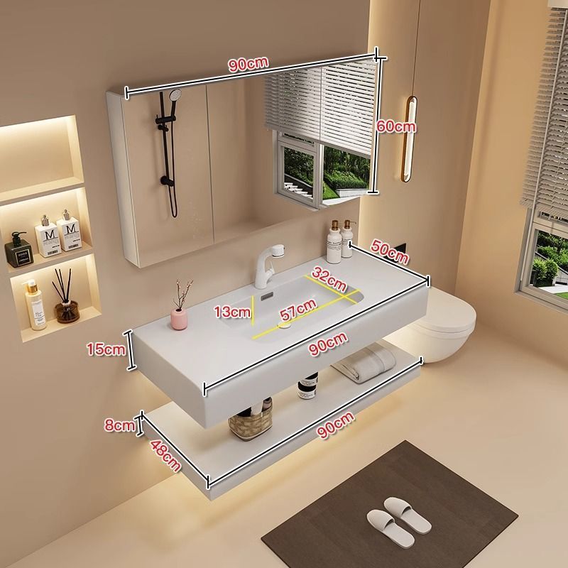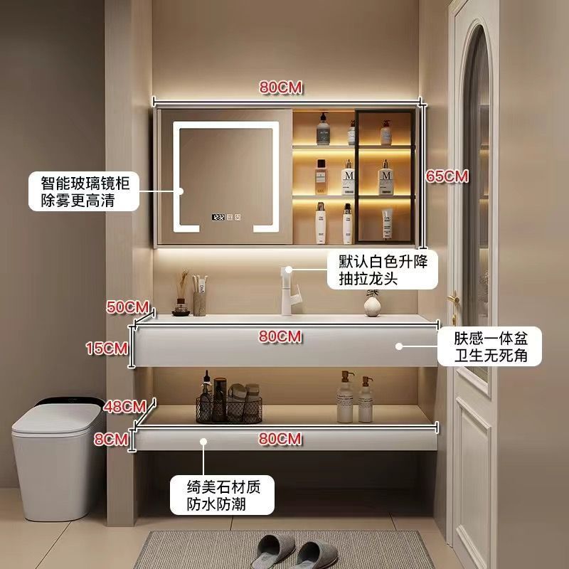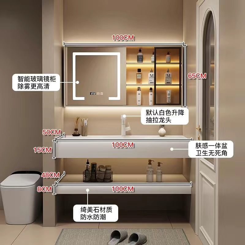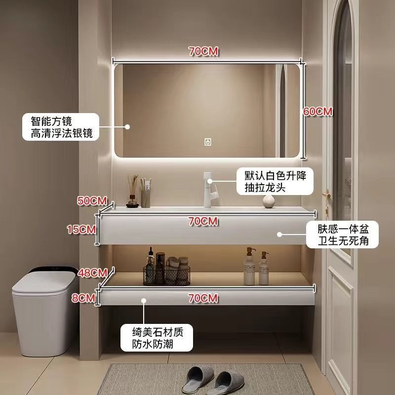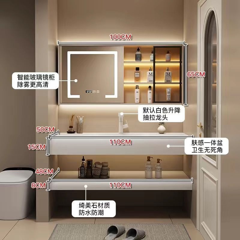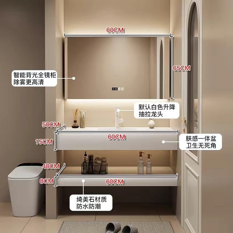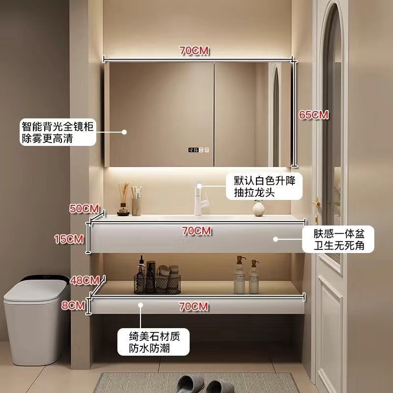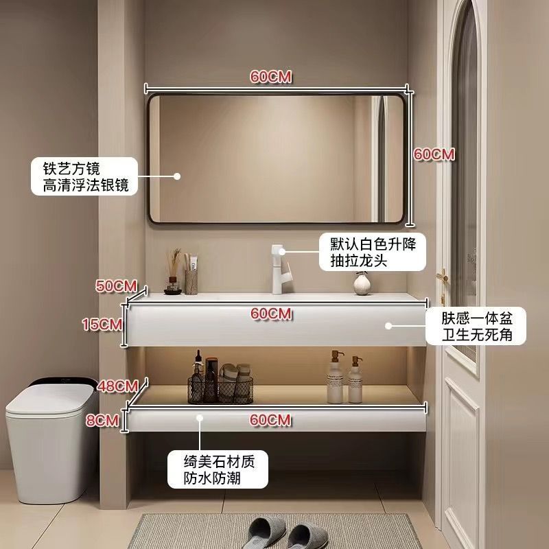 새로운 크림 스타일의 Corian 피부 느낌의 일체형 욕실 캐비닛 세면대 세면대 조합 욕실 세면대스토어 가기