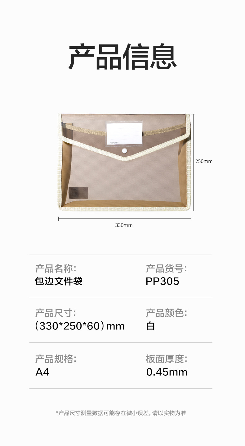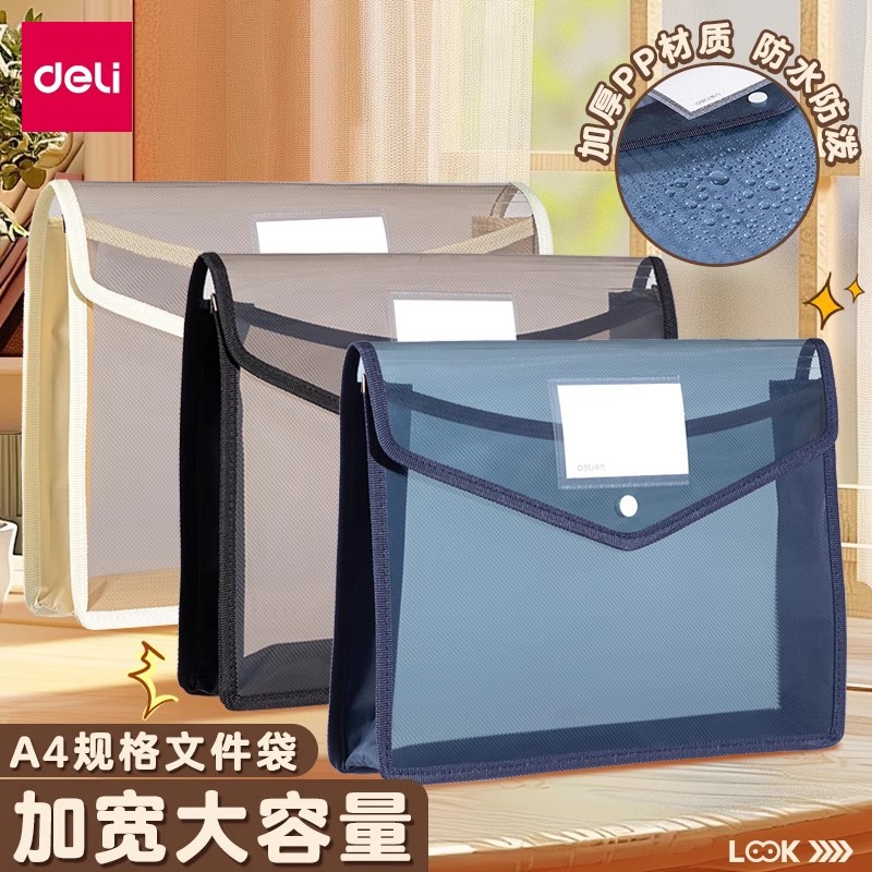 델리 PP305 스냅온 엣지 파일백 A4 투명 정보 가방 두껍고 넓어진 대용량 파일 보관