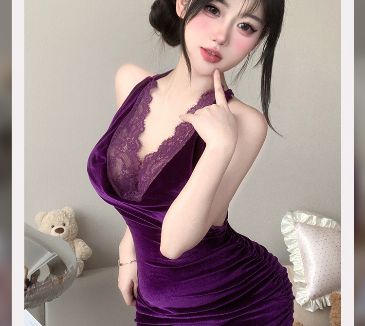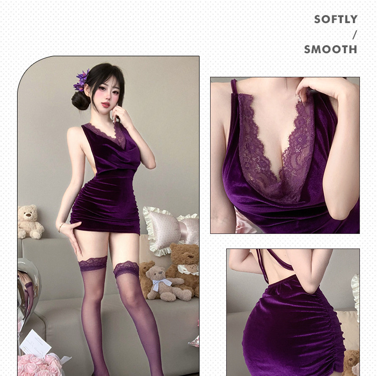 섹시한 란제리 레이스 힙 스커트 보라색 유니폼 순수한 욕망 유혹 잠옷 qqny 세트 8365스토어 가기