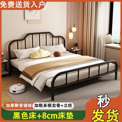 침실 철제 침대 북유럽 스타일 두꺼운 두꺼운 1.8m 더블 침대 간단한 현대 철제 프레임 침대 홈 임대스토어 가기