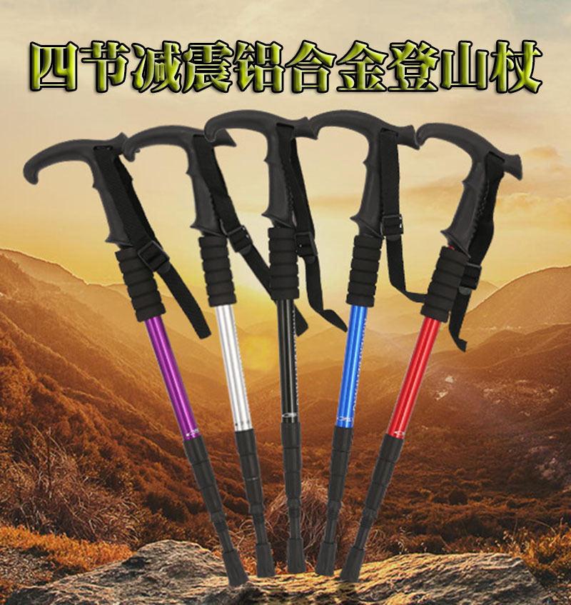 -노인을 위한 접이식 4섹션 및 3섹션 알루미늄 합금 지팡이, 충격 흡수 스트레이트 핸들, 곡선 핸들, 하이킹 스틱, 하이킹 핸들
