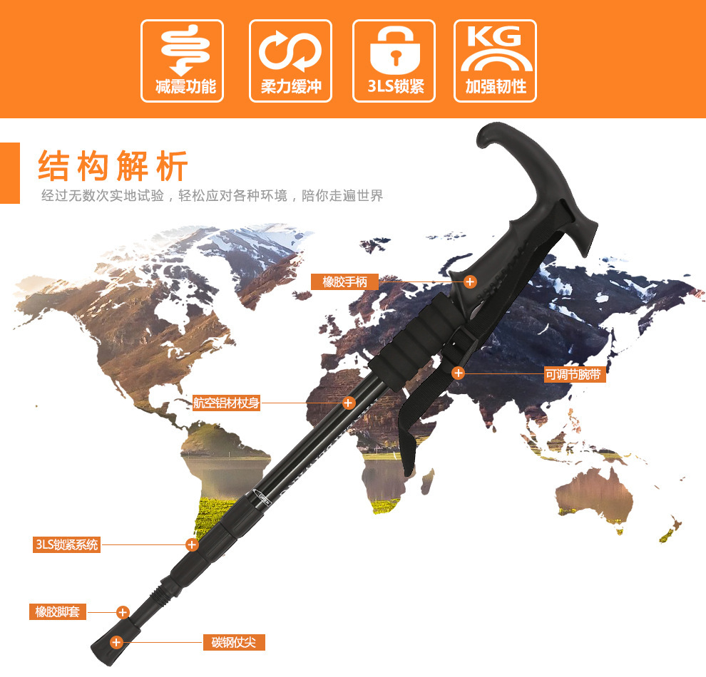-노인을 위한 접이식 4섹션 및 3섹션 알루미늄 합금 지팡이, 충격 흡수 스트레이트 핸들, 곡선 핸들, 하이킹 스틱, 하이킹 핸들스토어 가기