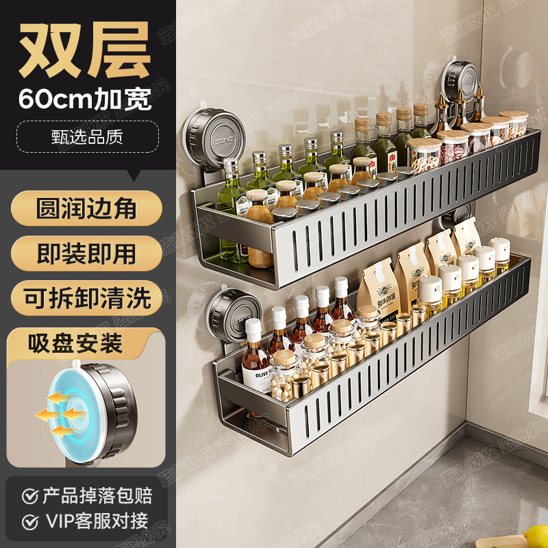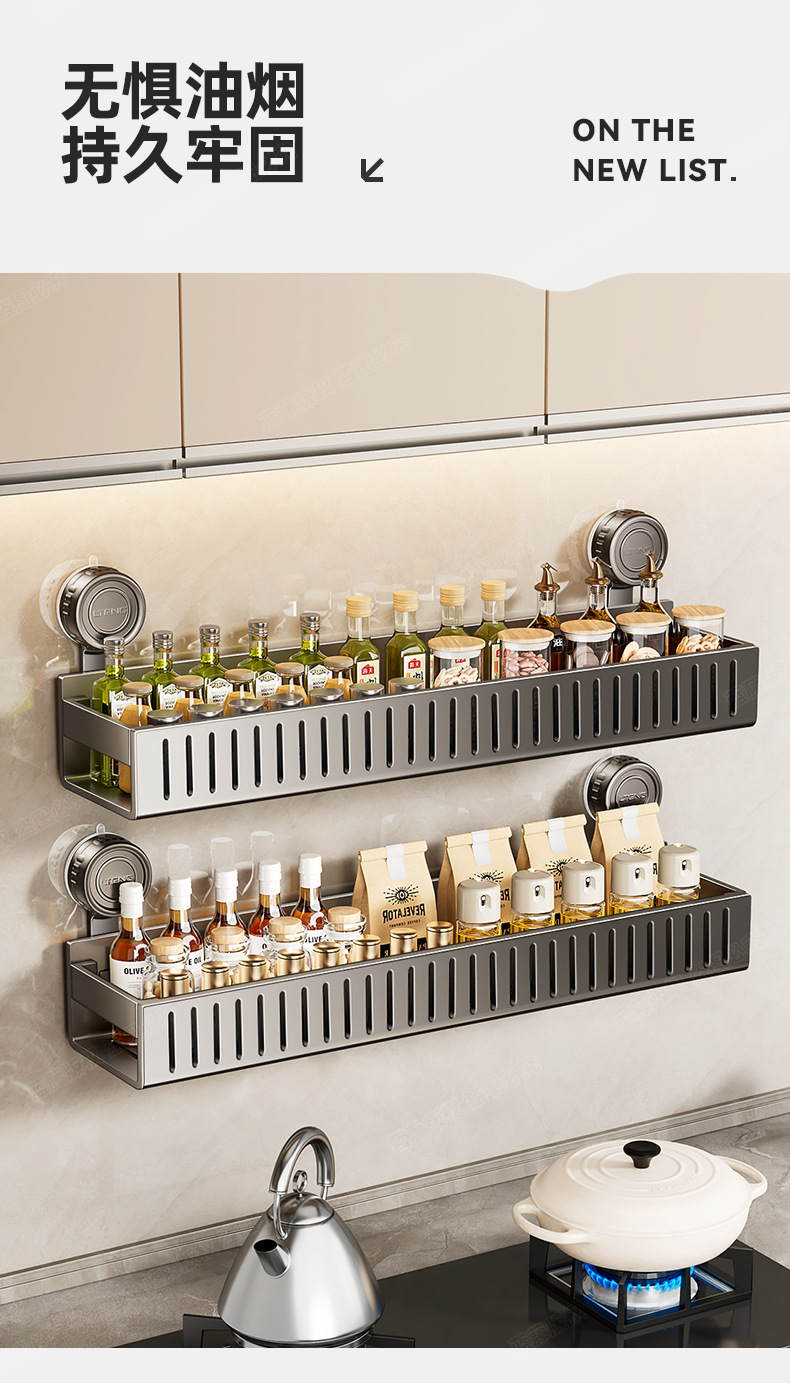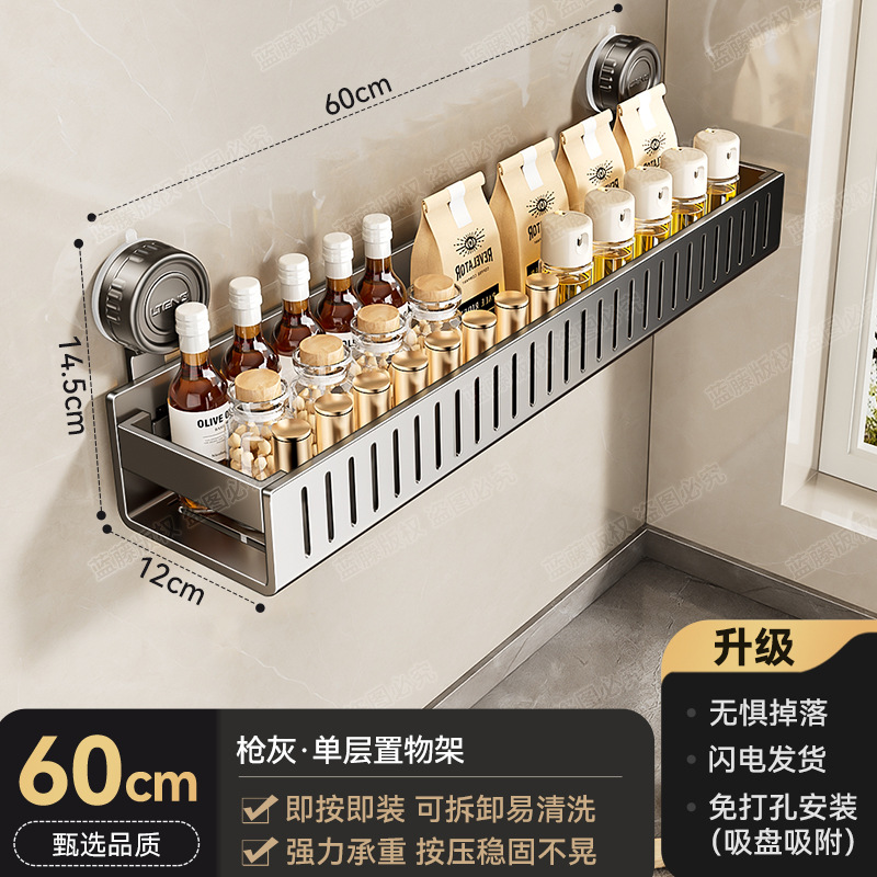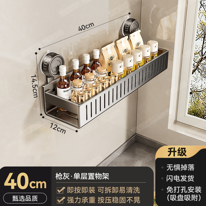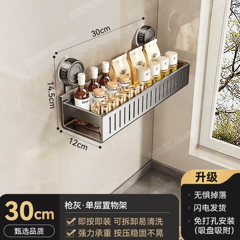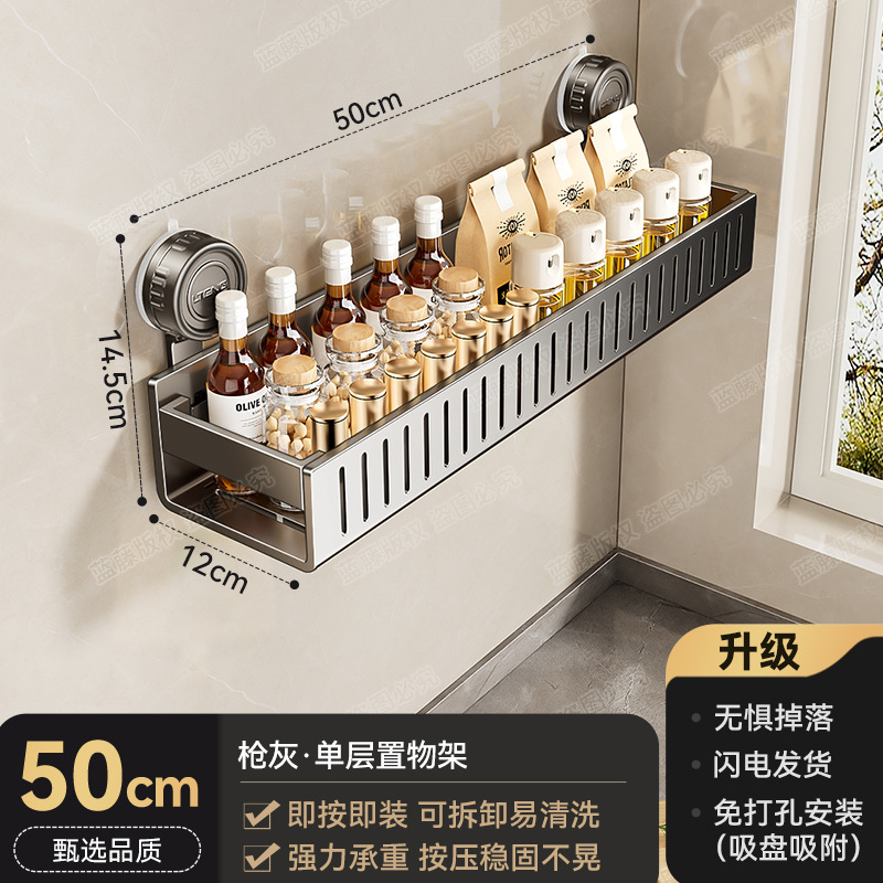 건 그레이 주방 선반 흡입 컵 가정용 펀치없는 벽걸이 형 오일 소금 소스 식초 조미료 병 보관함스토어 가기