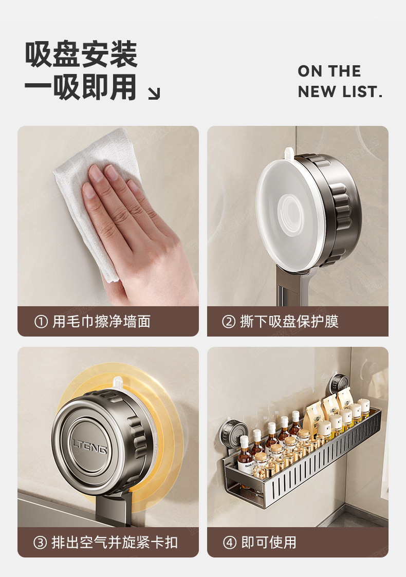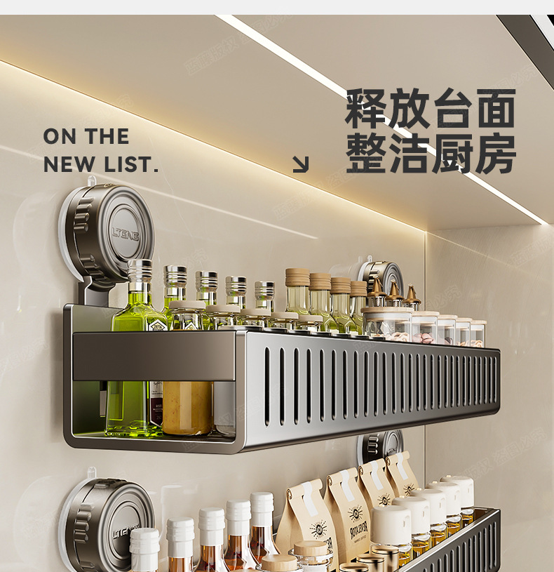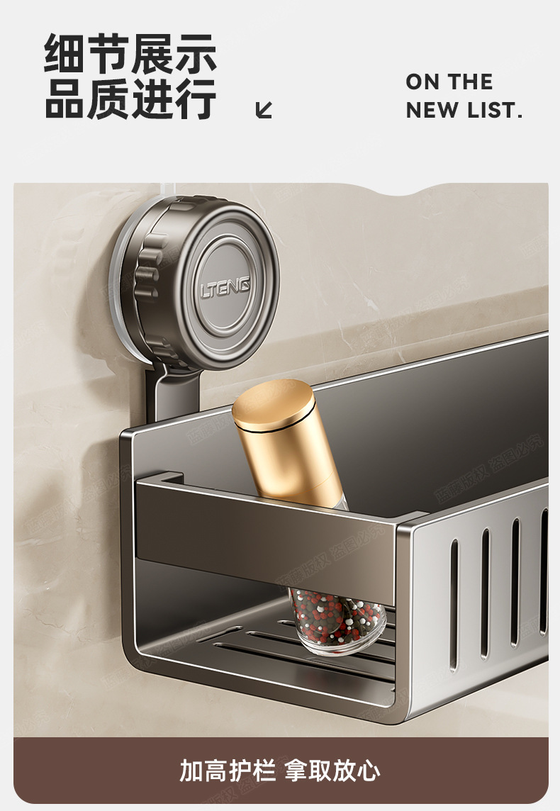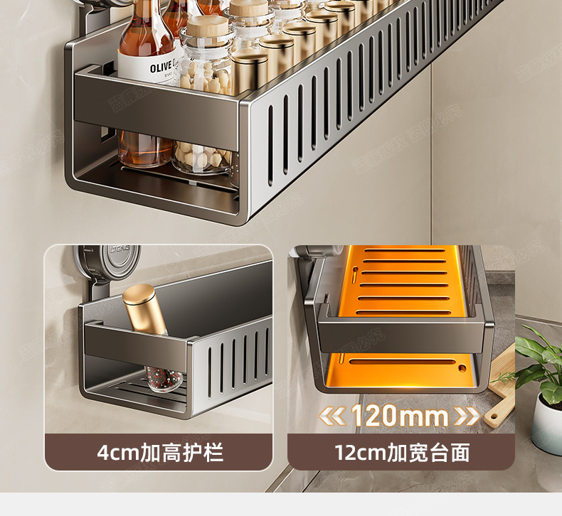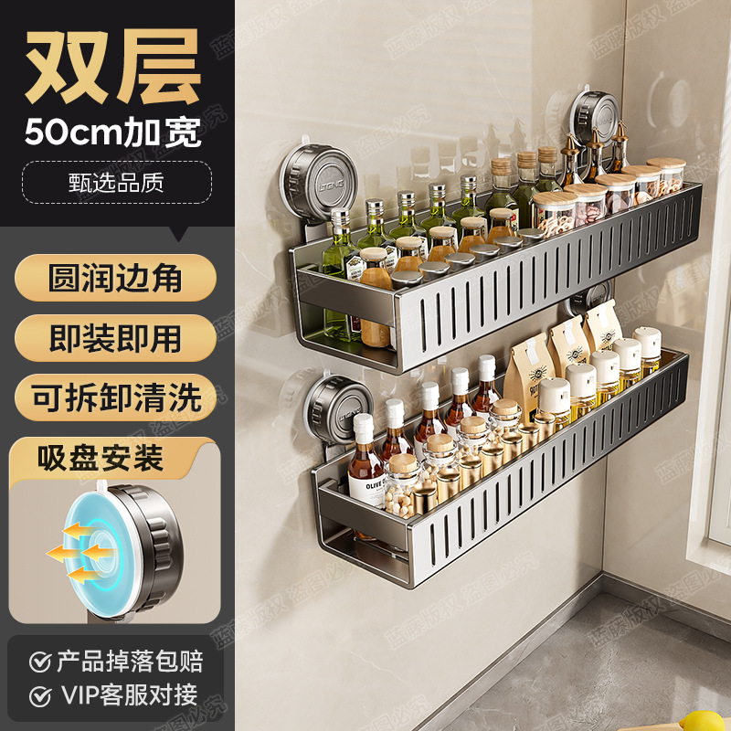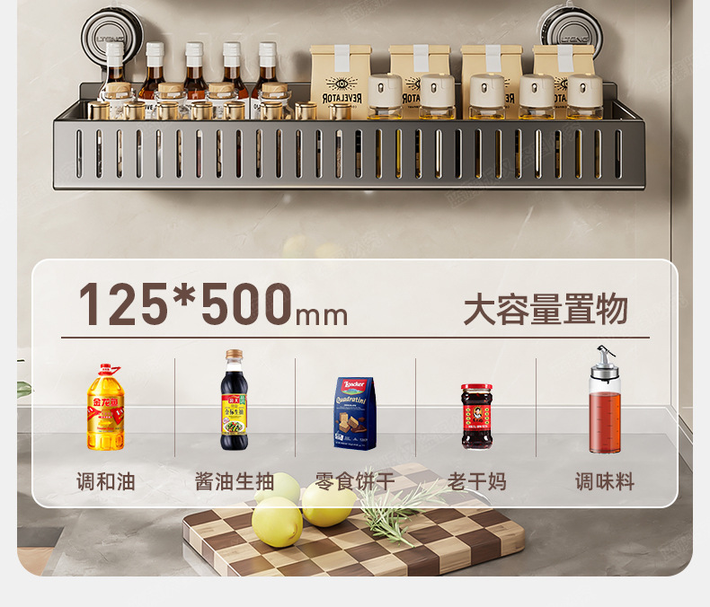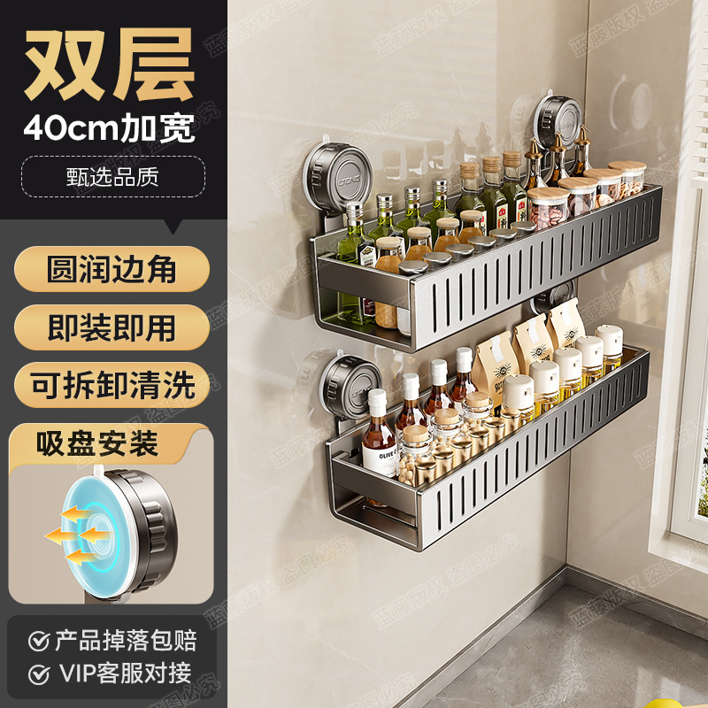 건 그레이 주방 선반 흡입 컵 가정용 펀치없는 벽걸이 형 오일 소금 소스 식초 조미료 병 보관함스토어 가기