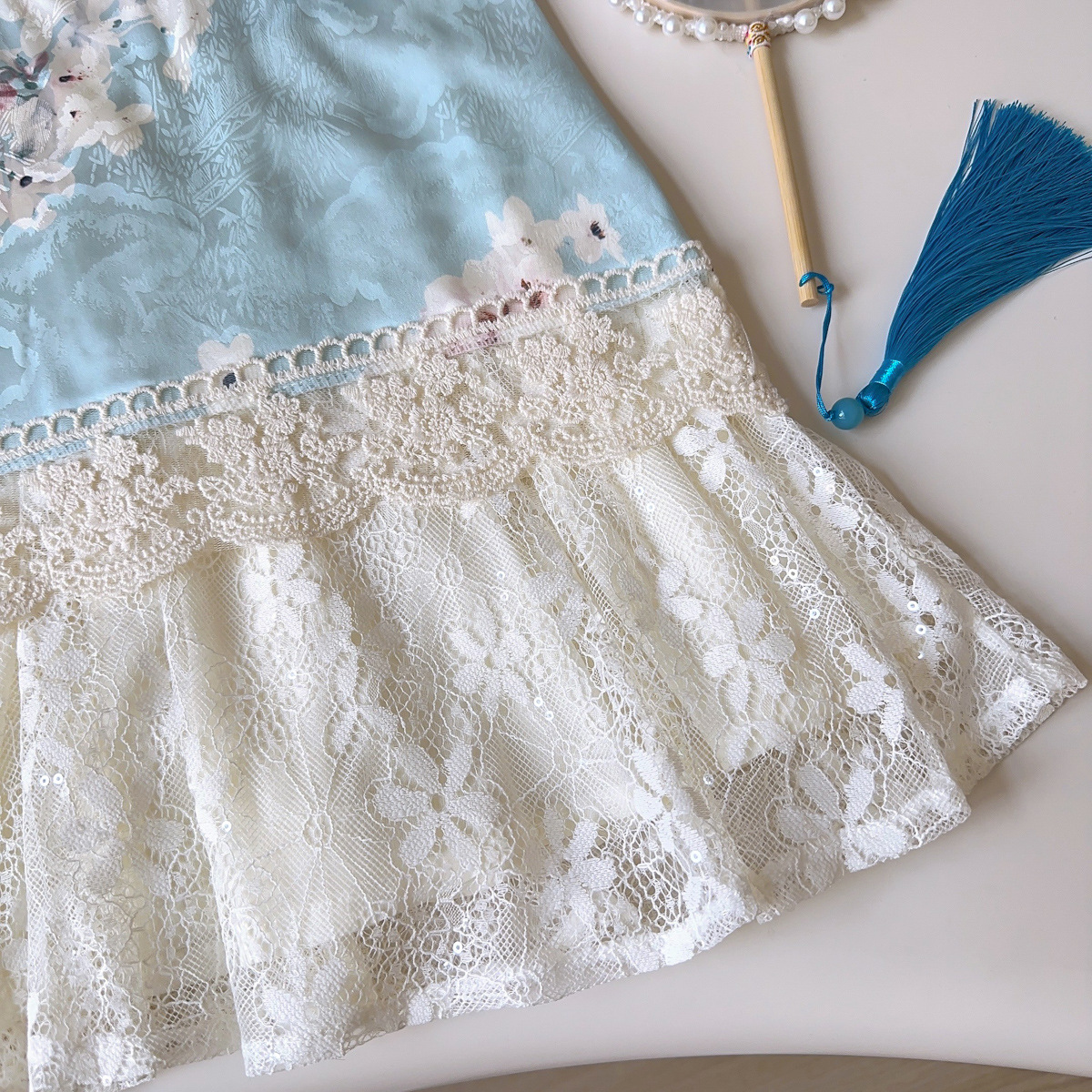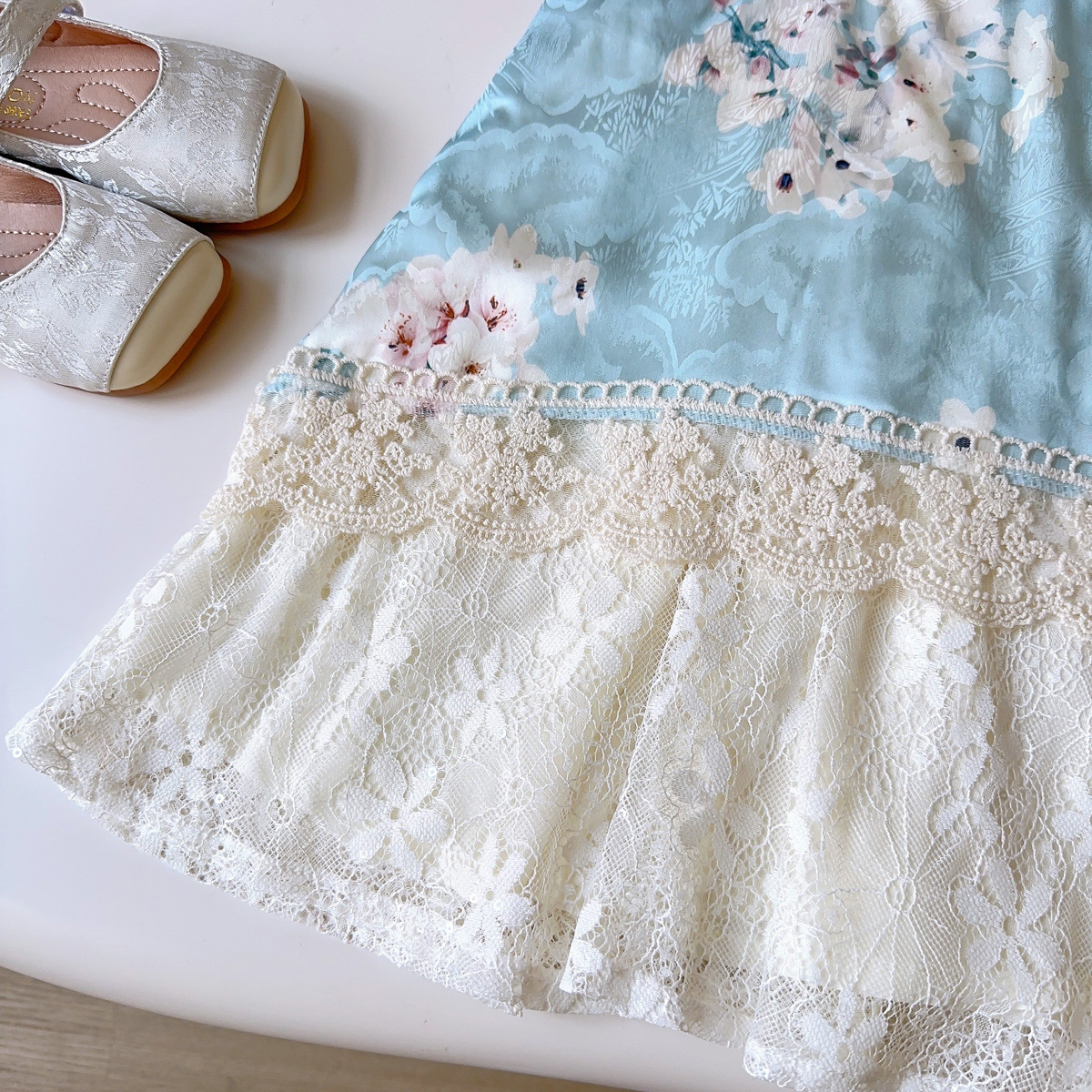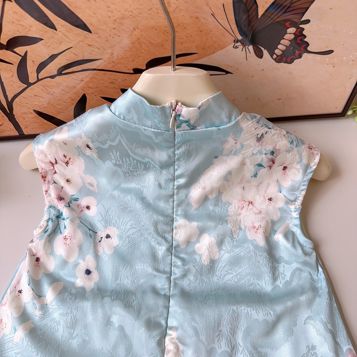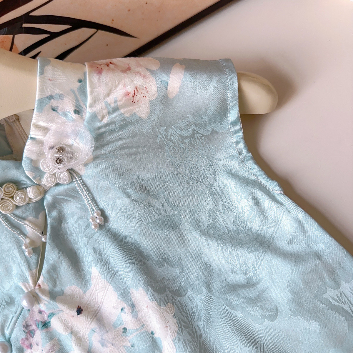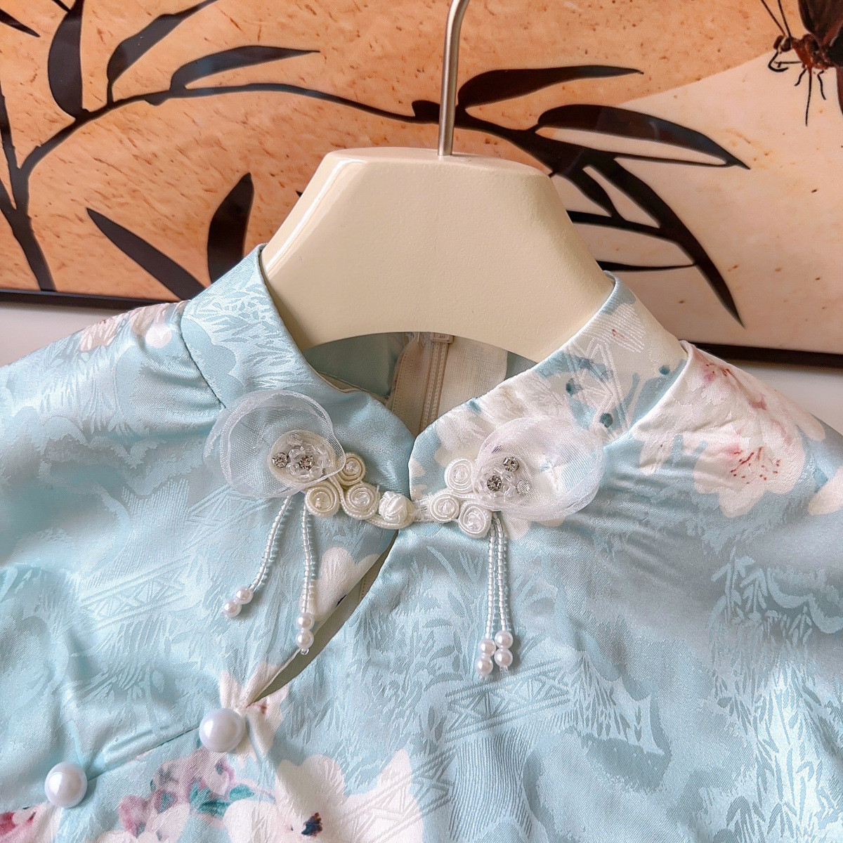 2025 새로운 여름 소녀의 새로운 중국 스타일 민소매 드레스, 서양식 어린 소녀의 고대 스타일 치파오 Hanfu 어린이 드레스