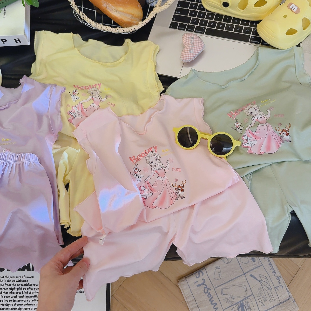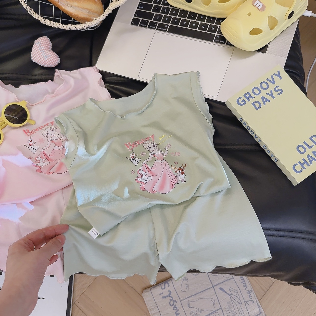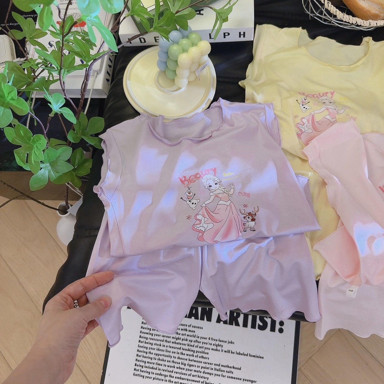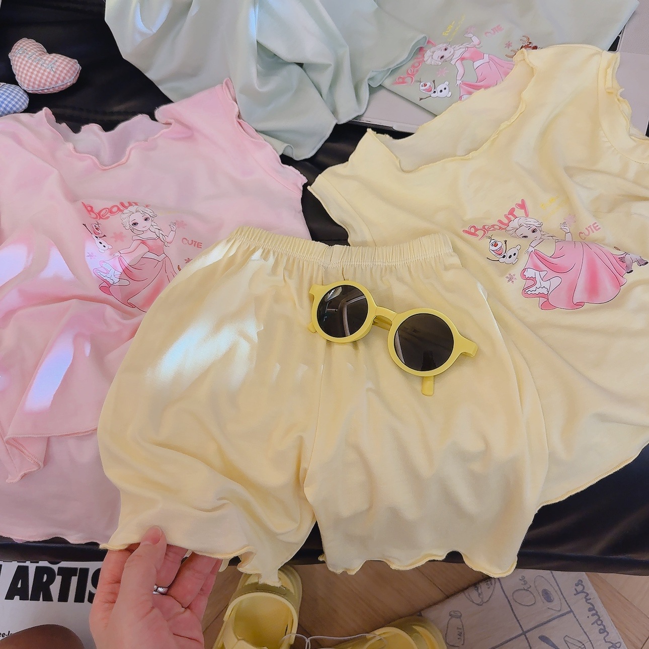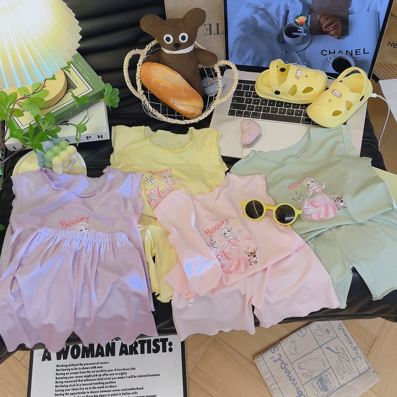 여아 아동 잠옷 모달 반팔 양복 여름 얇은 에어컨 투피스 세트 홈웨어