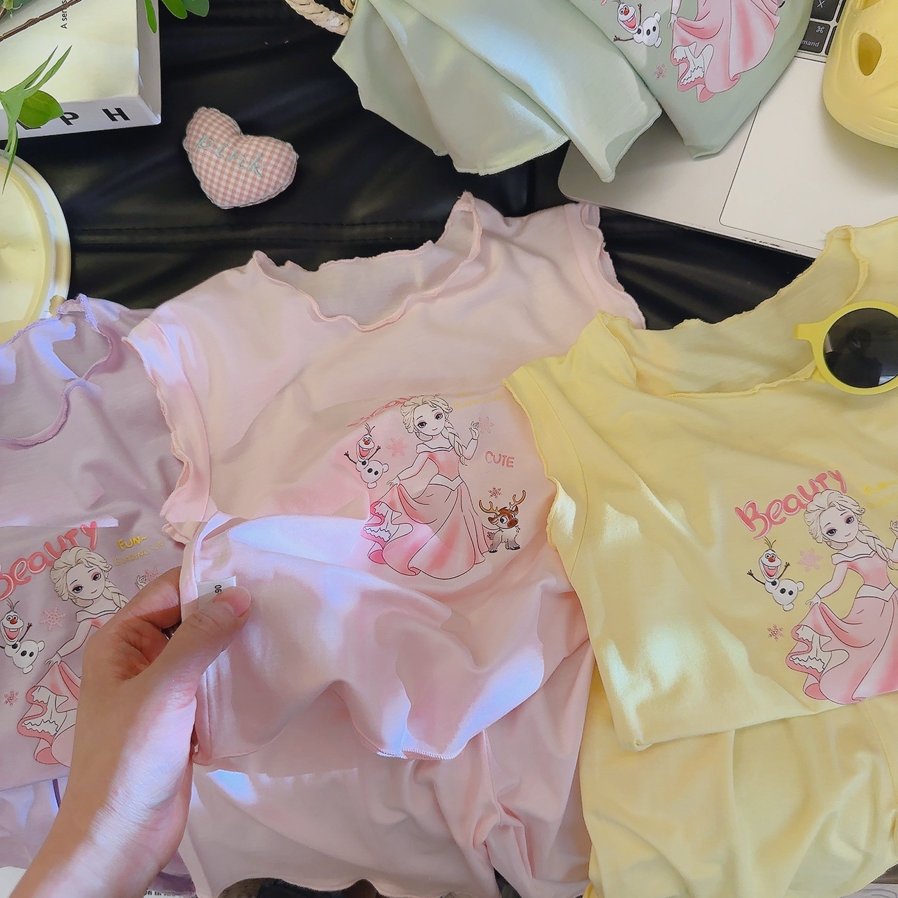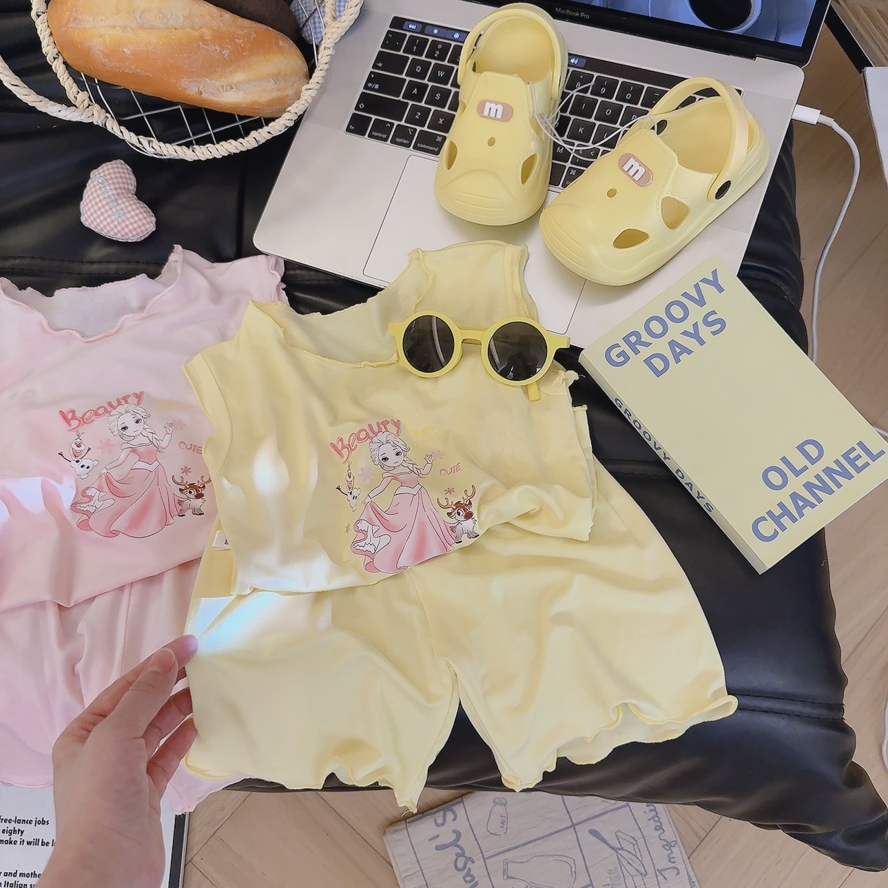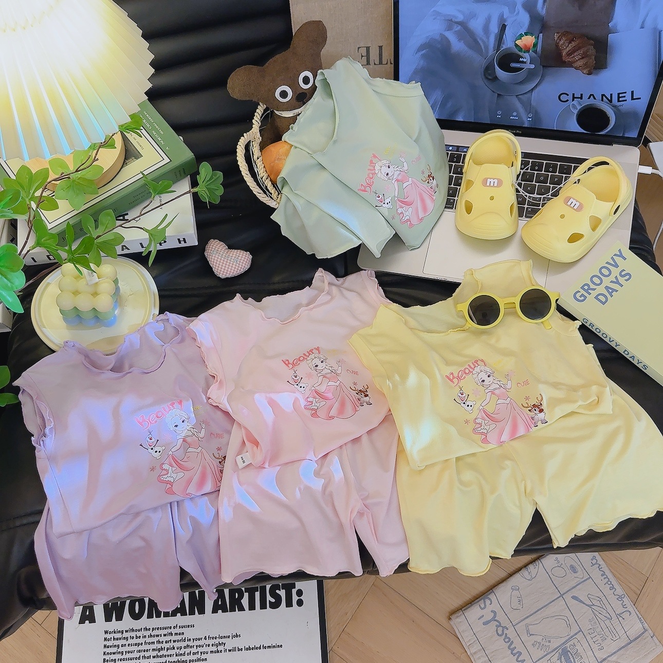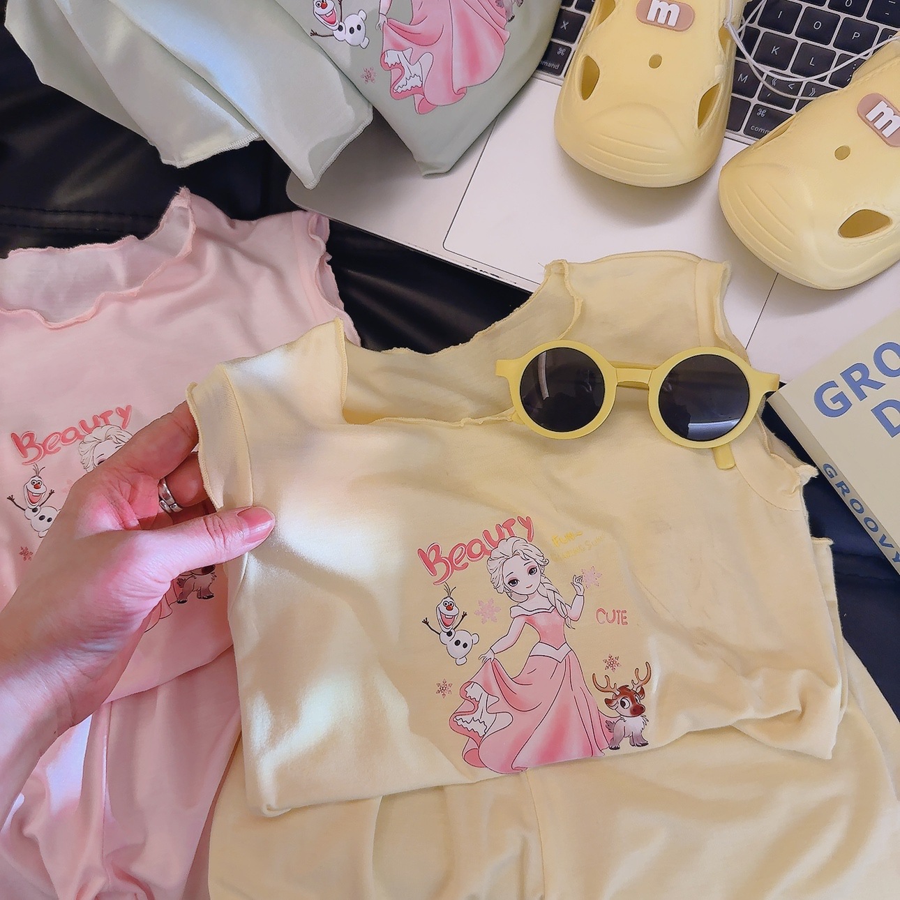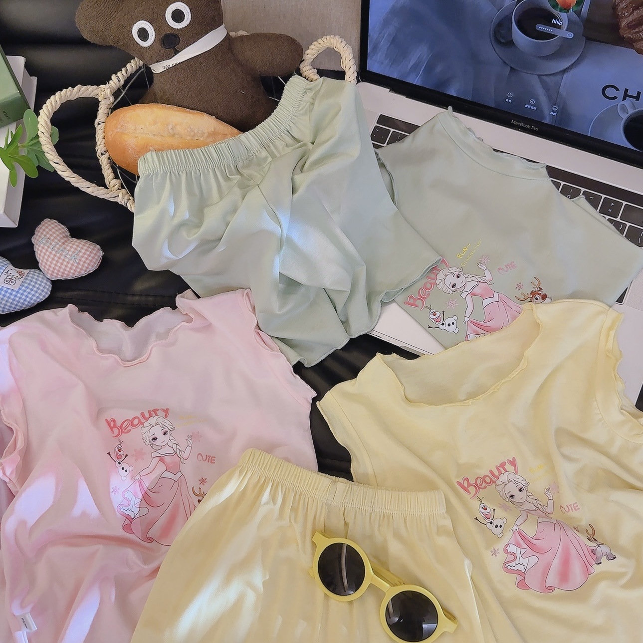 여아 아동 잠옷 모달 반팔 양복 여름 얇은 에어컨 투피스 세트 홈웨어