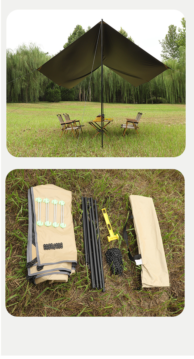 야외용 블랙글로스 캠핑 텐트, 자외선 차단, 사각형, 육각형, 팔각형, 비가림막, 나비형 차양막