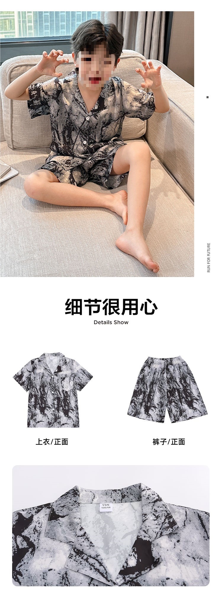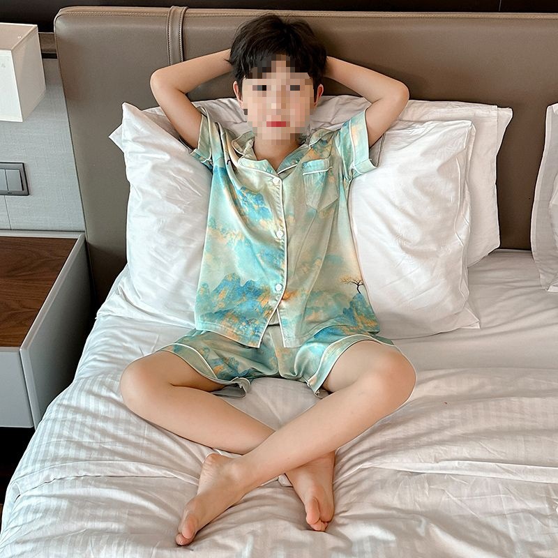 아동용 잠옷, 여름 얇은 소년 반팔 에어컨 의류, 중대형 아동복, 여름 소년 아이스 실크 가정복스토어 가기